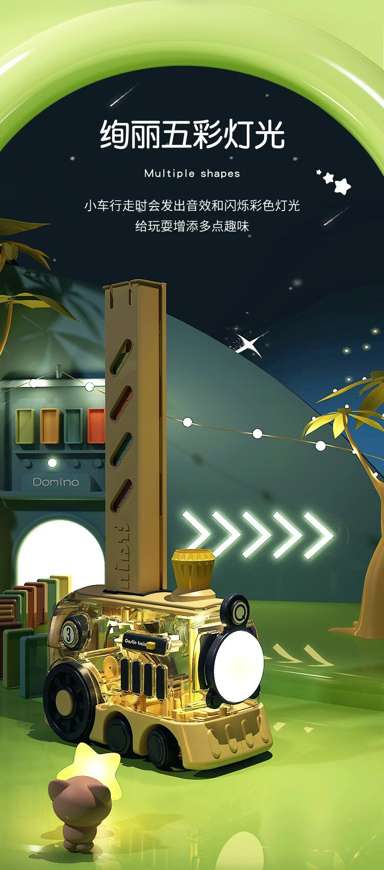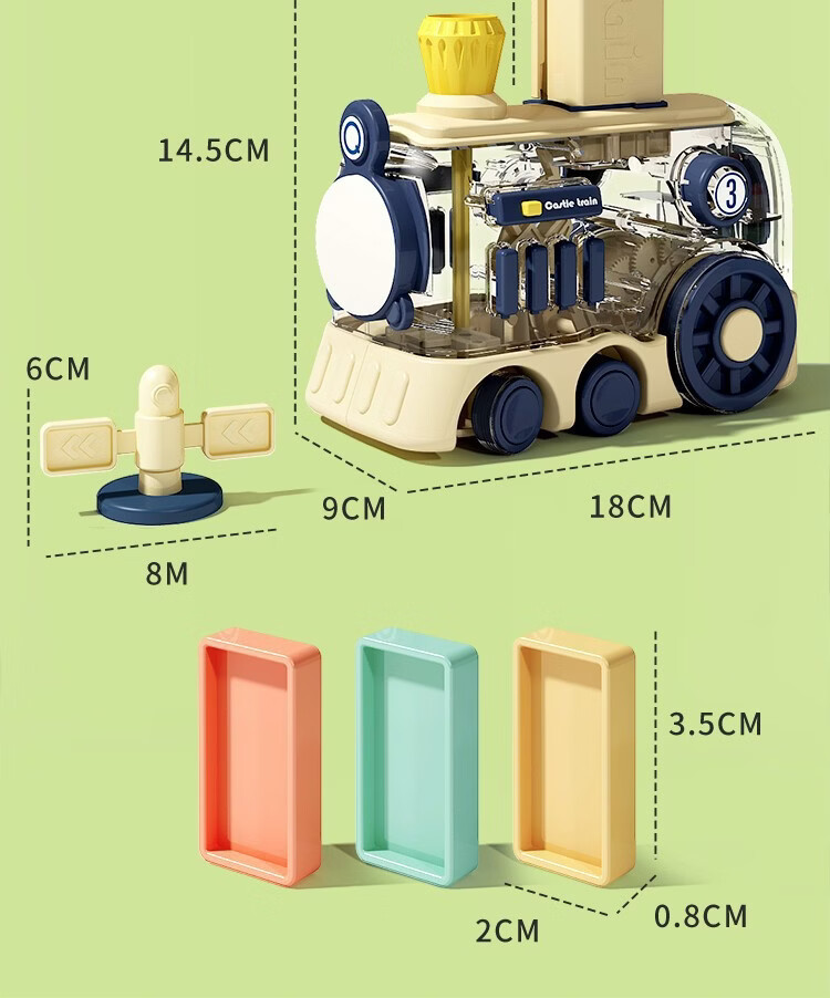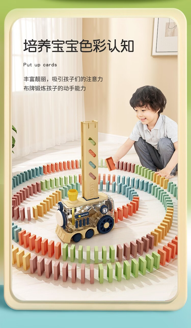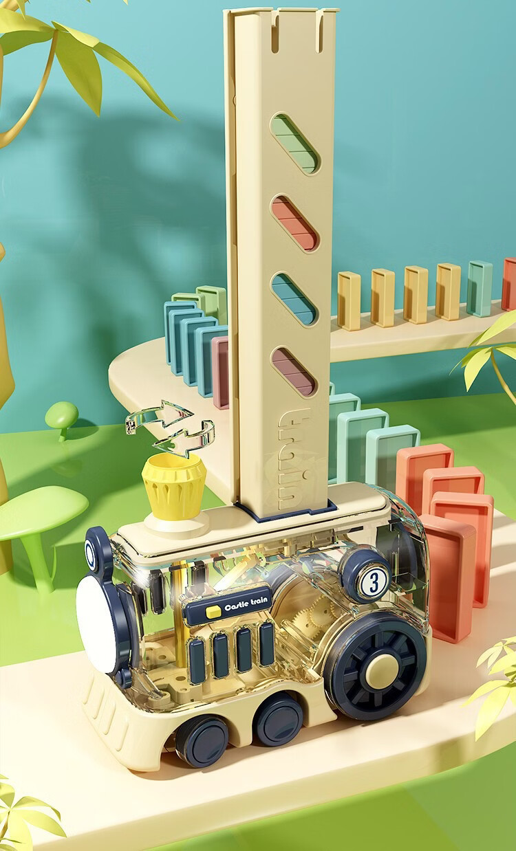 凯恩斯乐多米诺骨牌小火车儿童自动电动投放车积木玩具男女童礼物 黄色-礼盒装【80骨牌+弹夹+路障】送电池