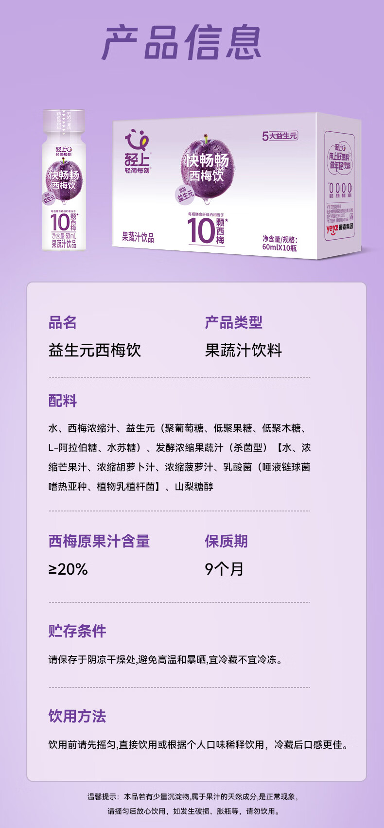 轻上(LIGHT UPPER)西梅膳食纤维果蔬汁饮品饮料 西梅饮60ml*15瓶