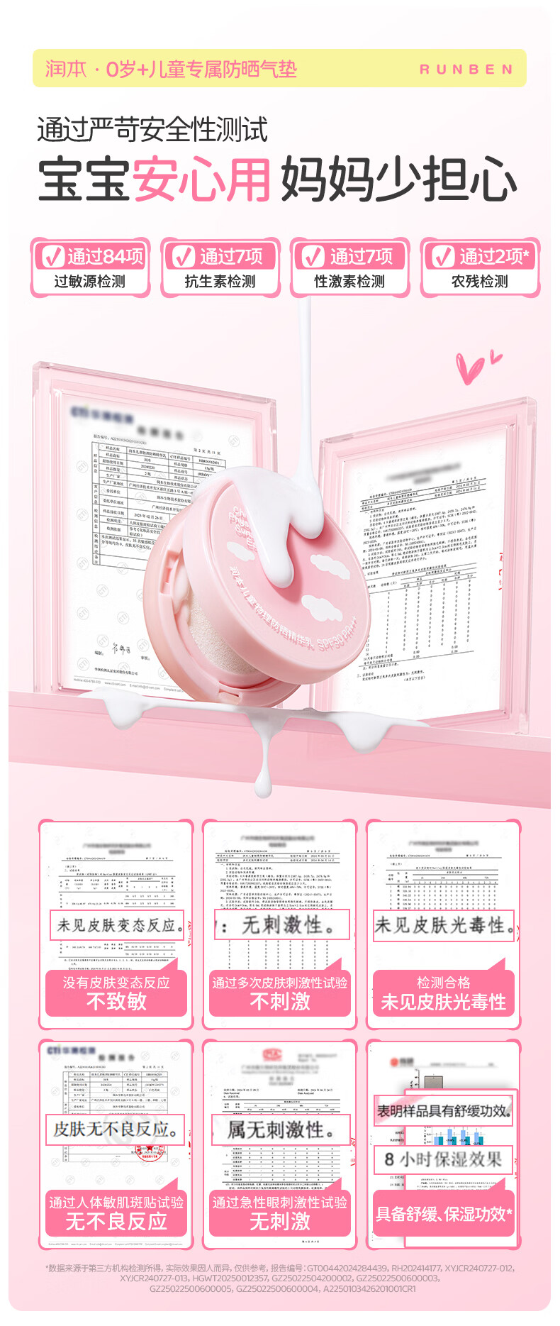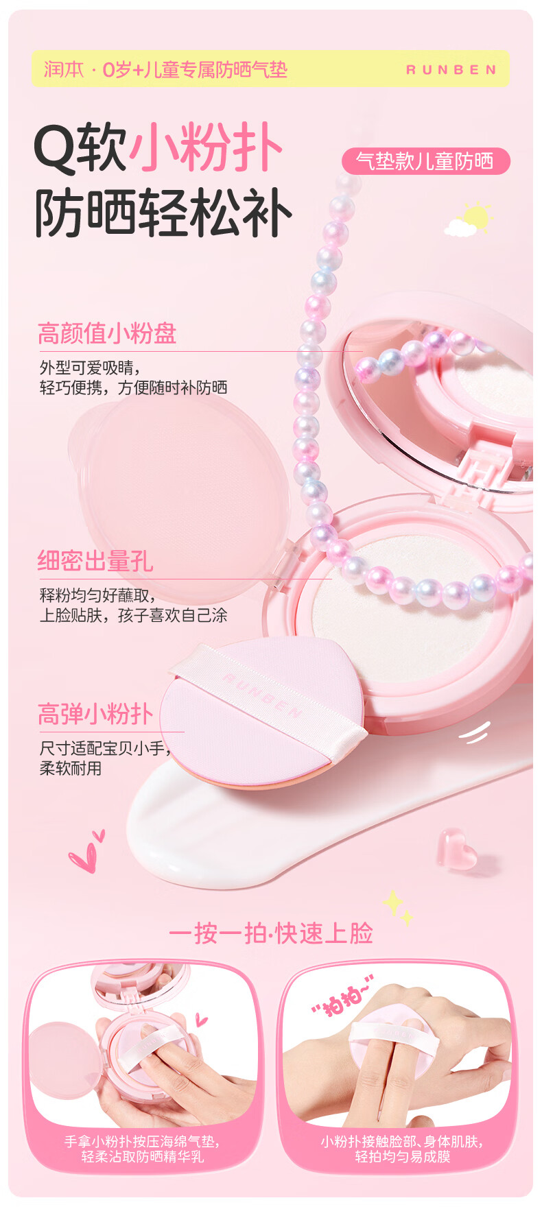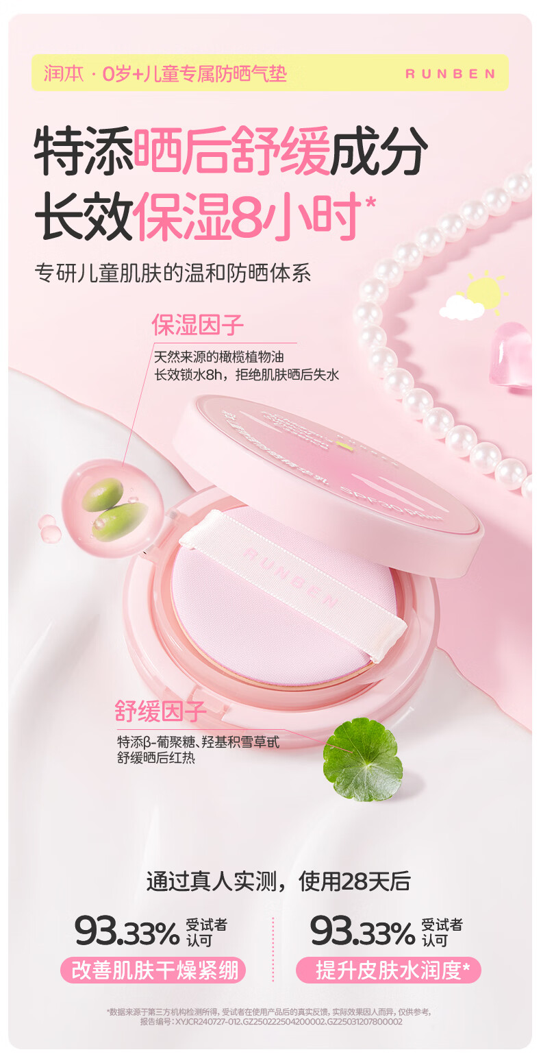 润本儿童物理防晒精华乳防晒气垫轻巧出行防晒SPF30 PA+++ 13g 1瓶 【不假白 快成膜】防晒气垫正装