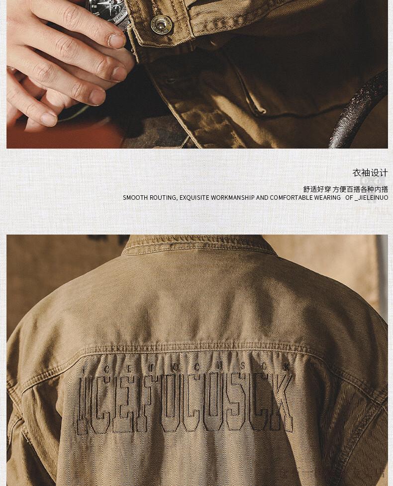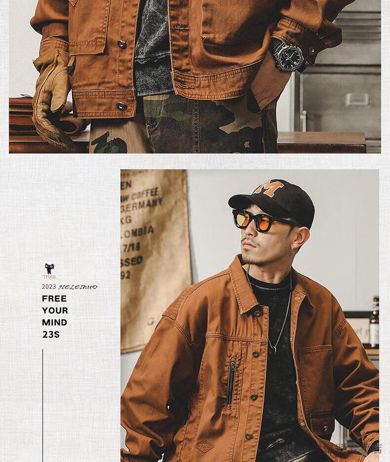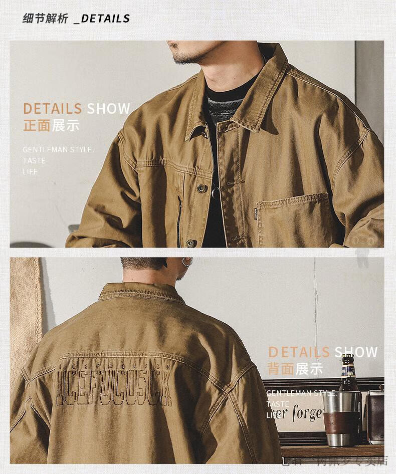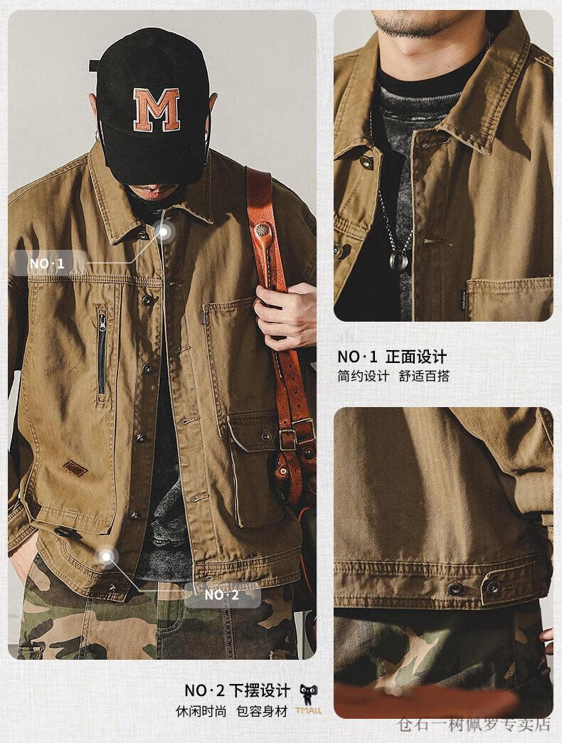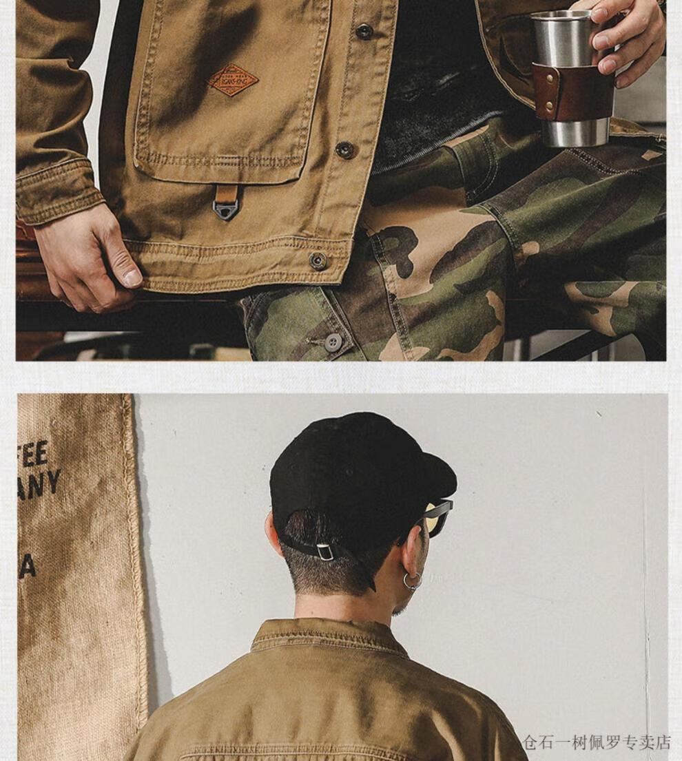 仓石一树美式工装复古重磅鱼骨纹夹克男春秋款阿美咔叽硬汉猎装外套 焦糖色 XL 适合145-160斤