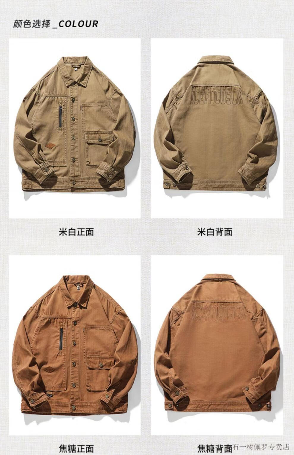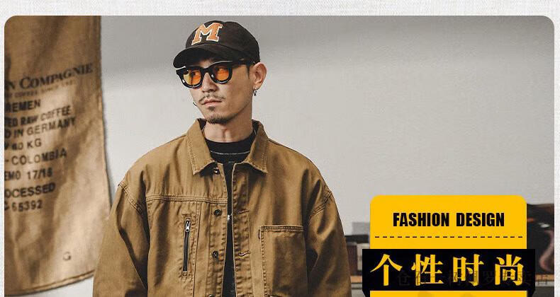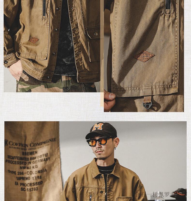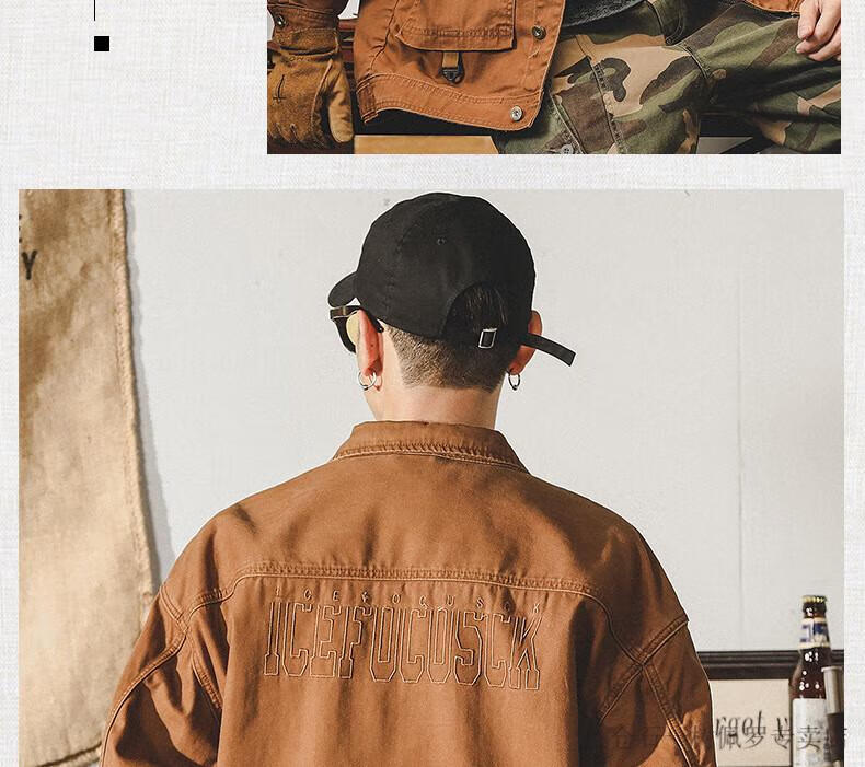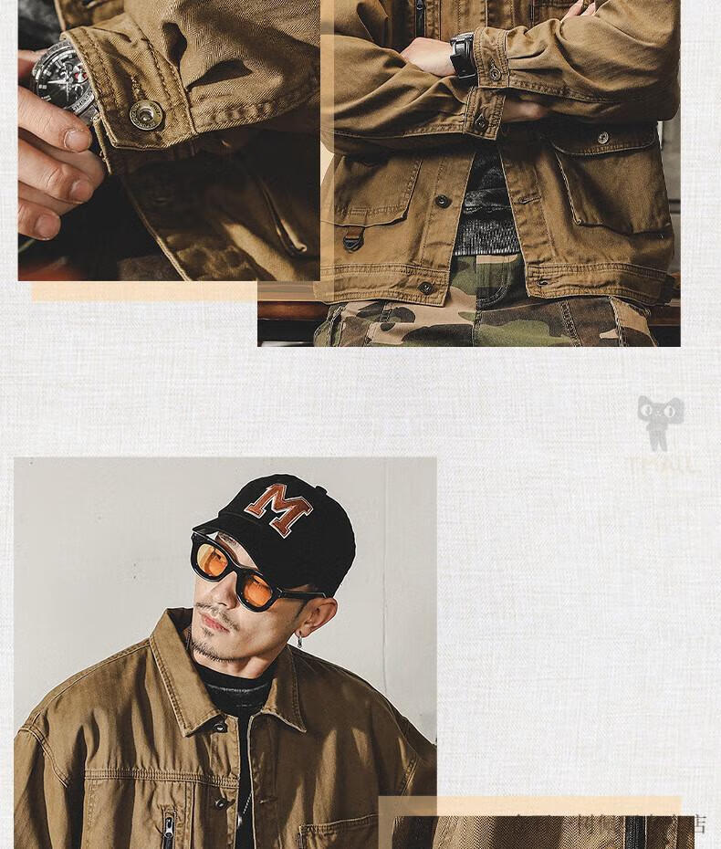 仓石一树美式工装复古重磅鱼骨纹夹克男春秋款阿美咔叽硬汉猎装外套 焦糖色 XL 适合145-160斤