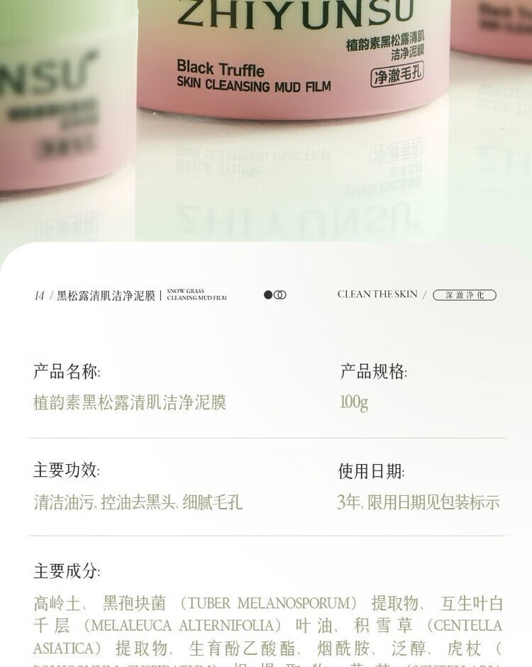 植韵黑松露清肌洁净泥膜深层清洁去粉刺超清洁净 3瓶
