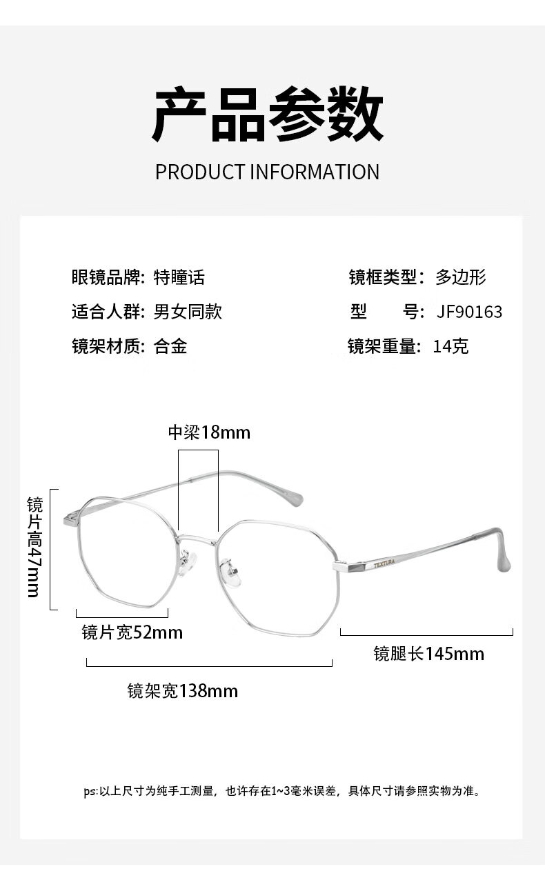 特瞳话超轻近视眼镜框男款定制可配度数散光细框防蓝光辐射眼睛架配镜女 JF90163-银色 单镜框
