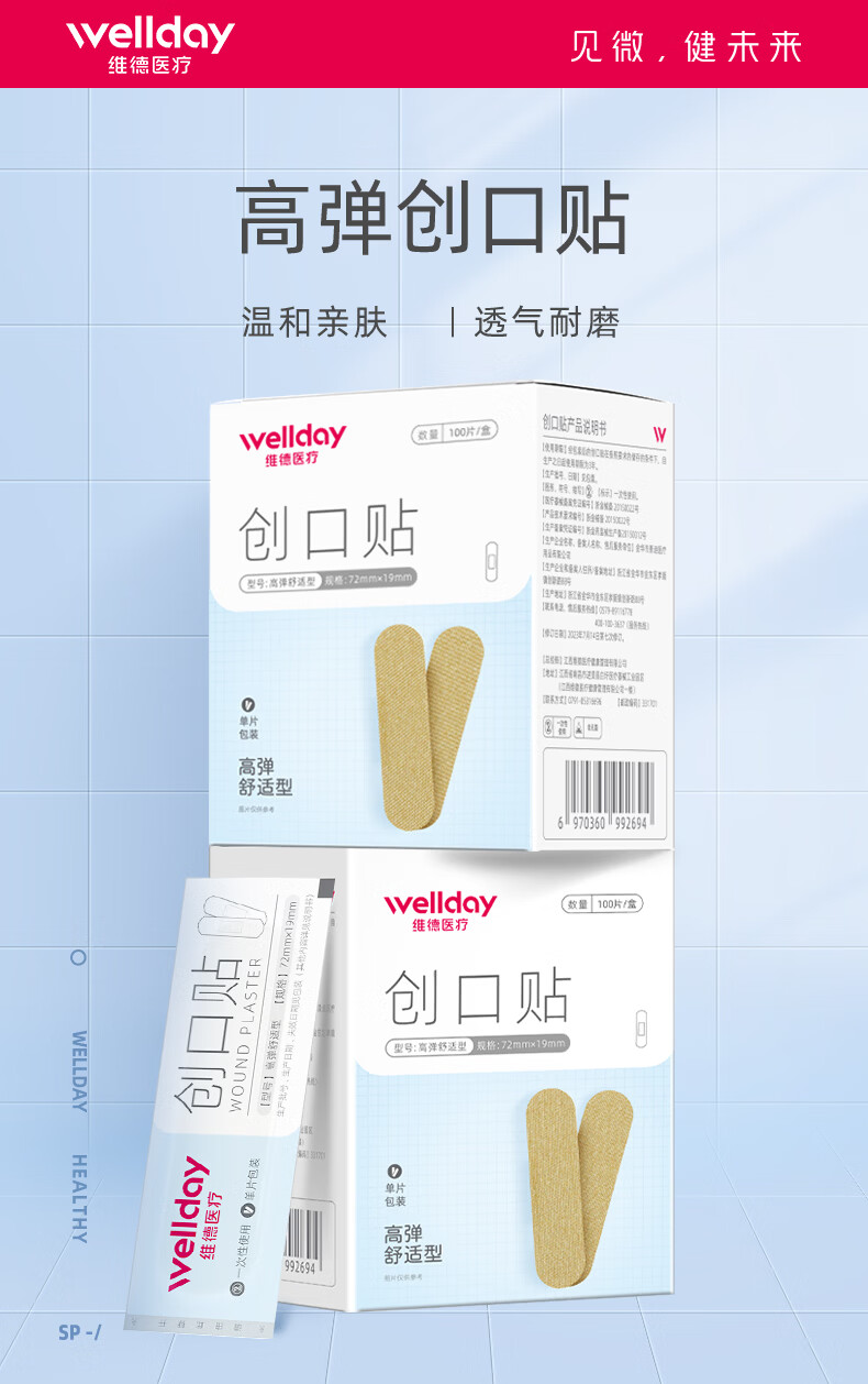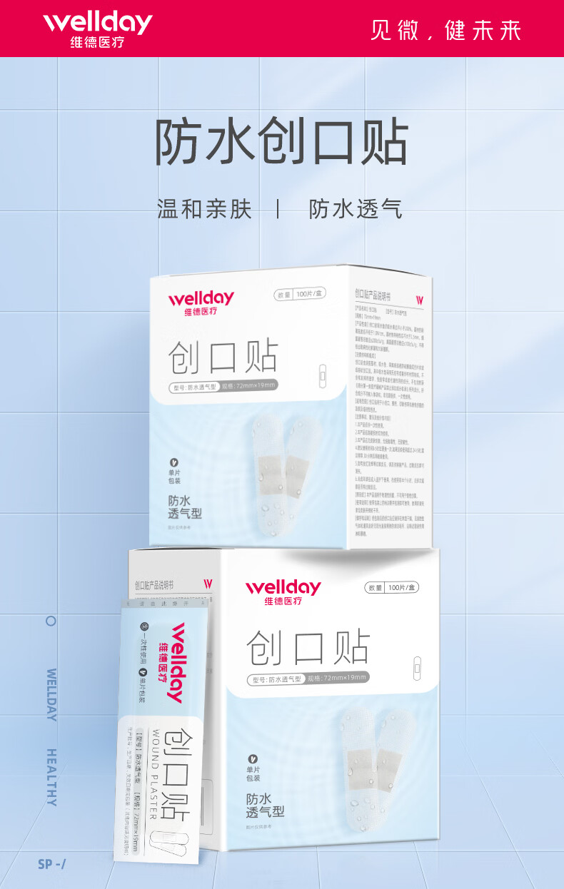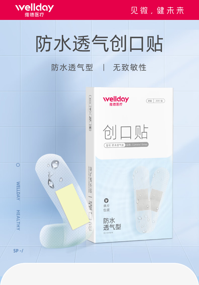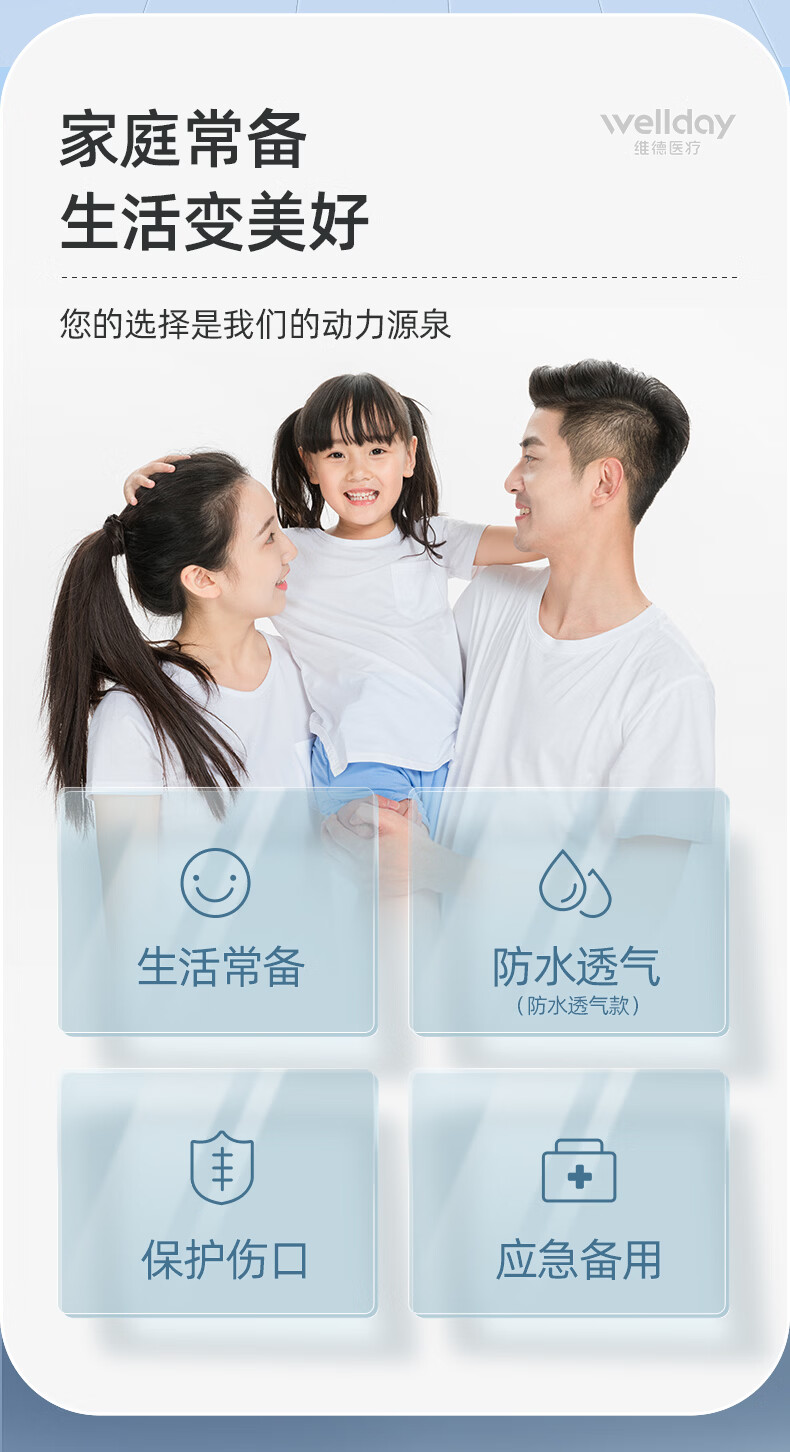 维德(WELLDAY)医用创口贴高弹防水创伤可贴皮外伤防磨脚伤口止血贴 防水透气型【1盒】20片/盒