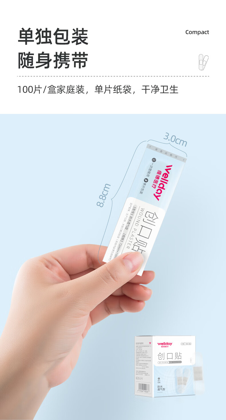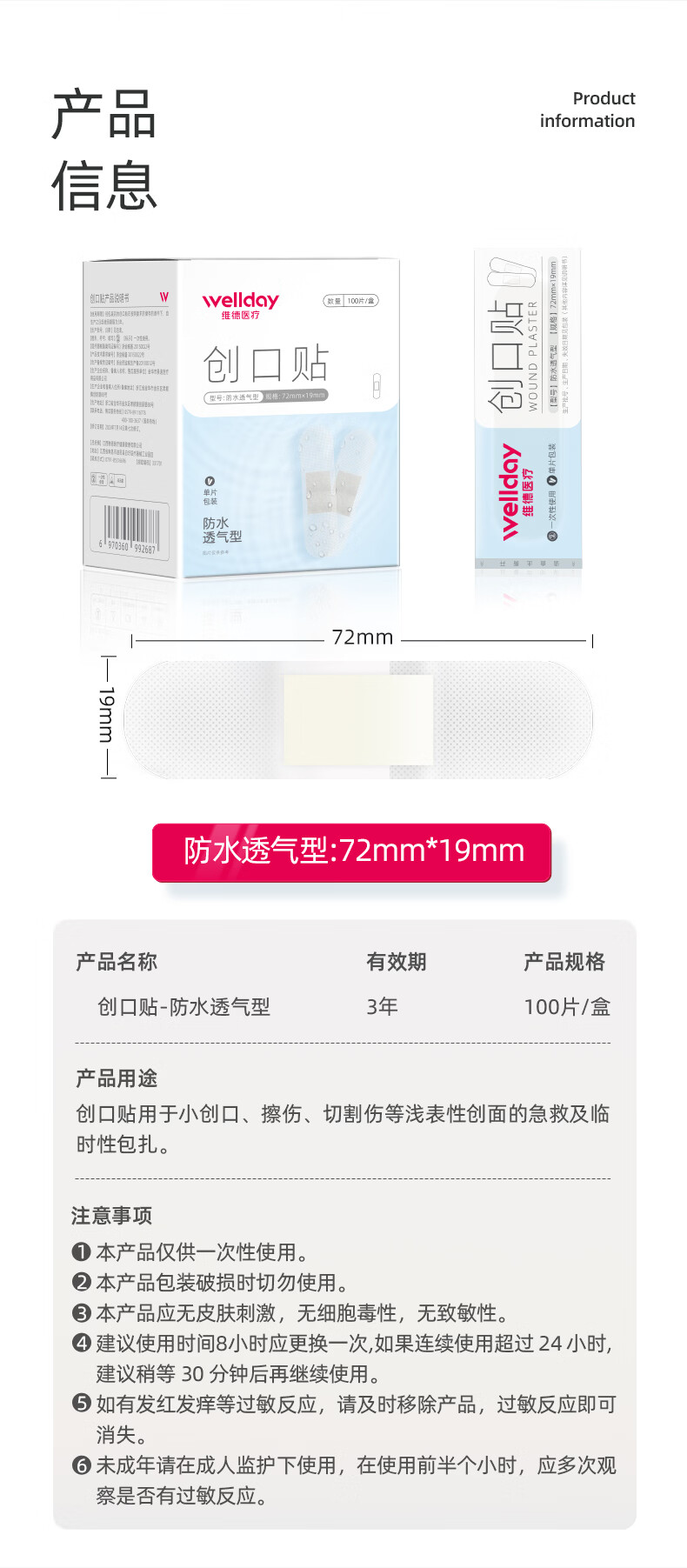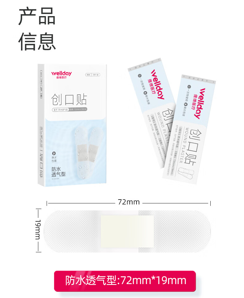 维德(WELLDAY)医用创口贴高弹防水创伤可贴皮外伤防磨脚伤口止血贴 防水透气型【1盒】20片/盒