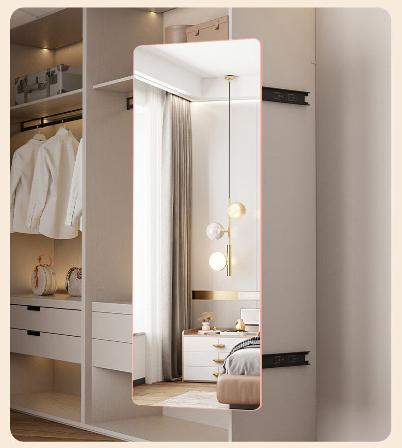 诗元推拉全身穿衣镜家用内装高清隐形折叠伸缩滑轨暗藏可关闭衣柜镜子 推拉门专用【90*30幻境黑】防爆全面屏