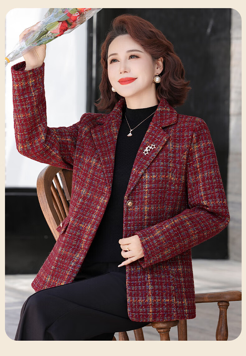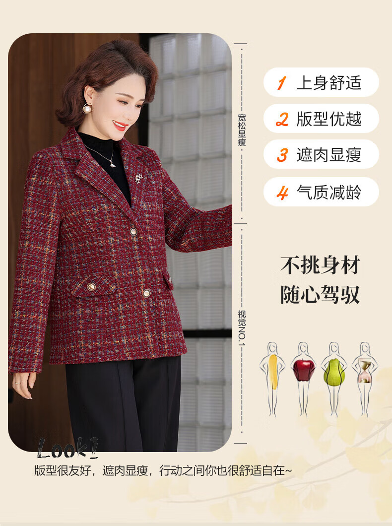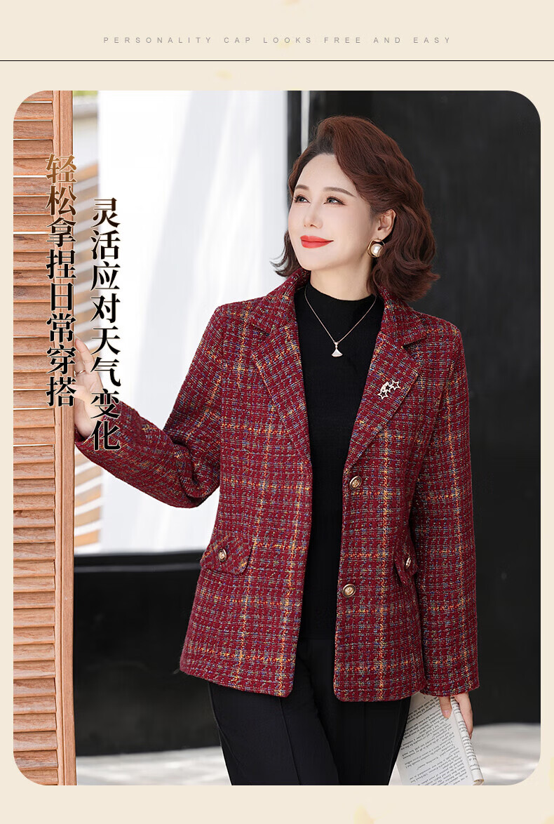 情罗兰(QINGLUOLAN)中老年女装春秋外套女款2026年最新款妈妈春装50-60岁洋气小西装 6023红色 XL (建议80-100斤)
