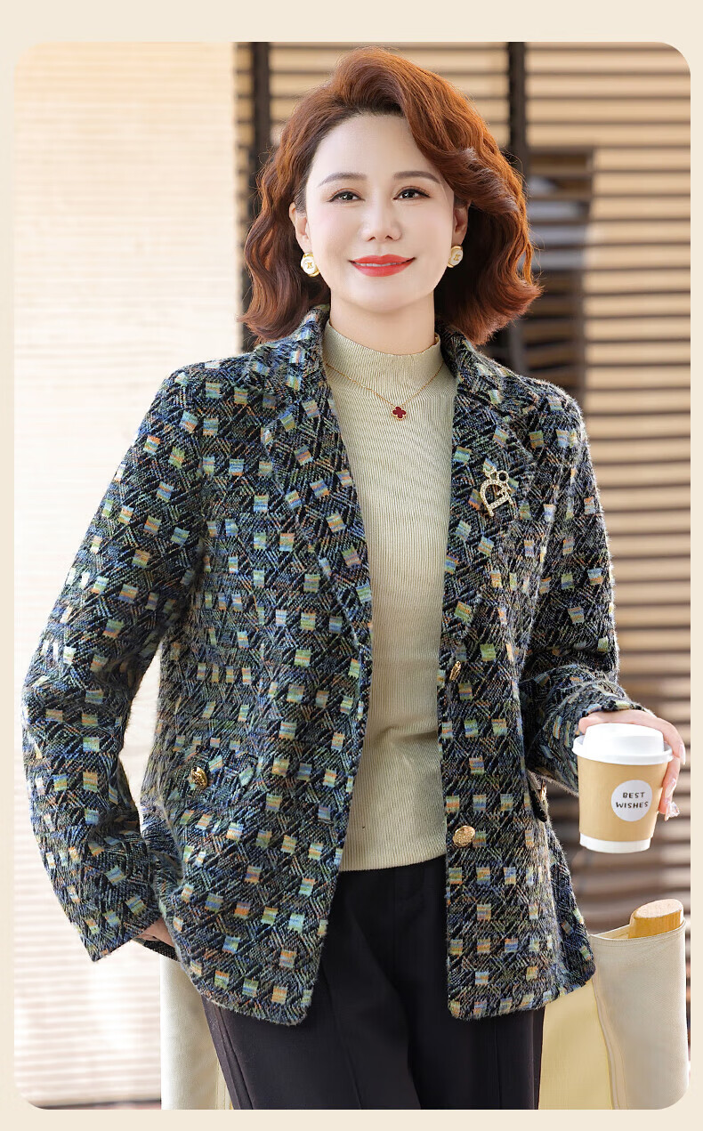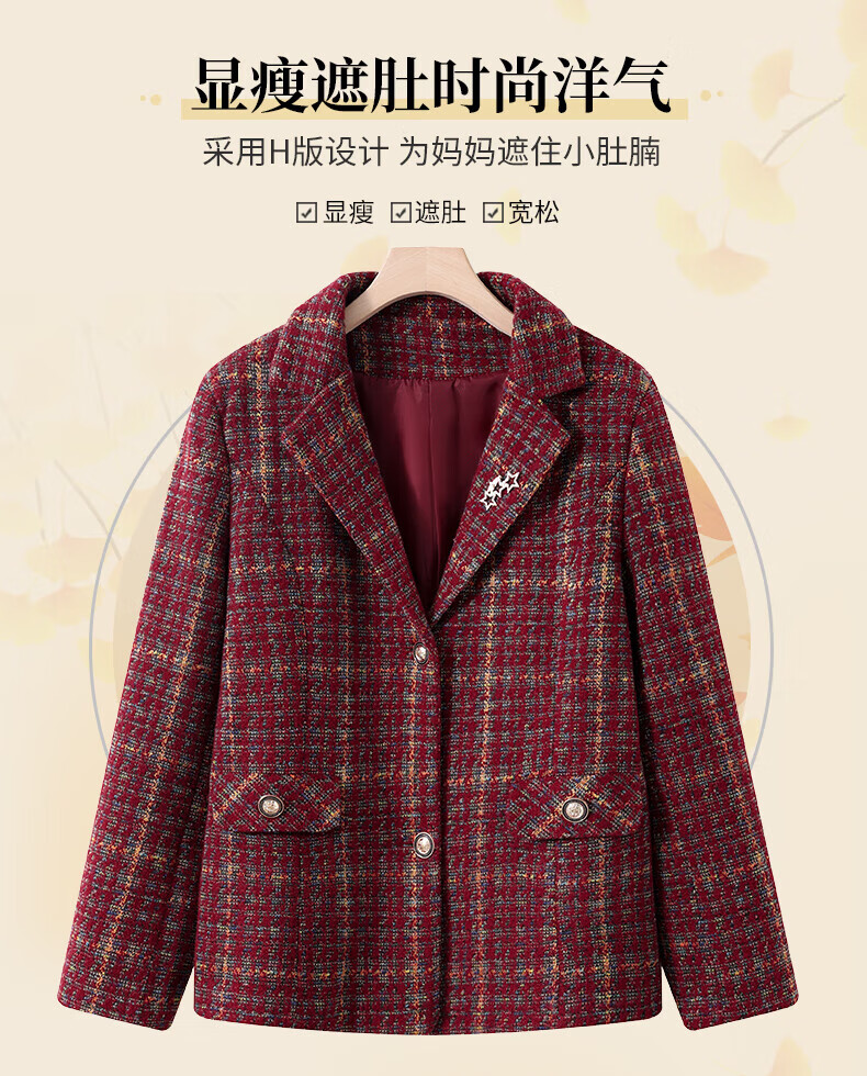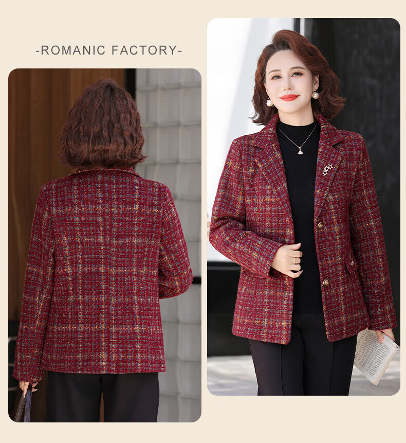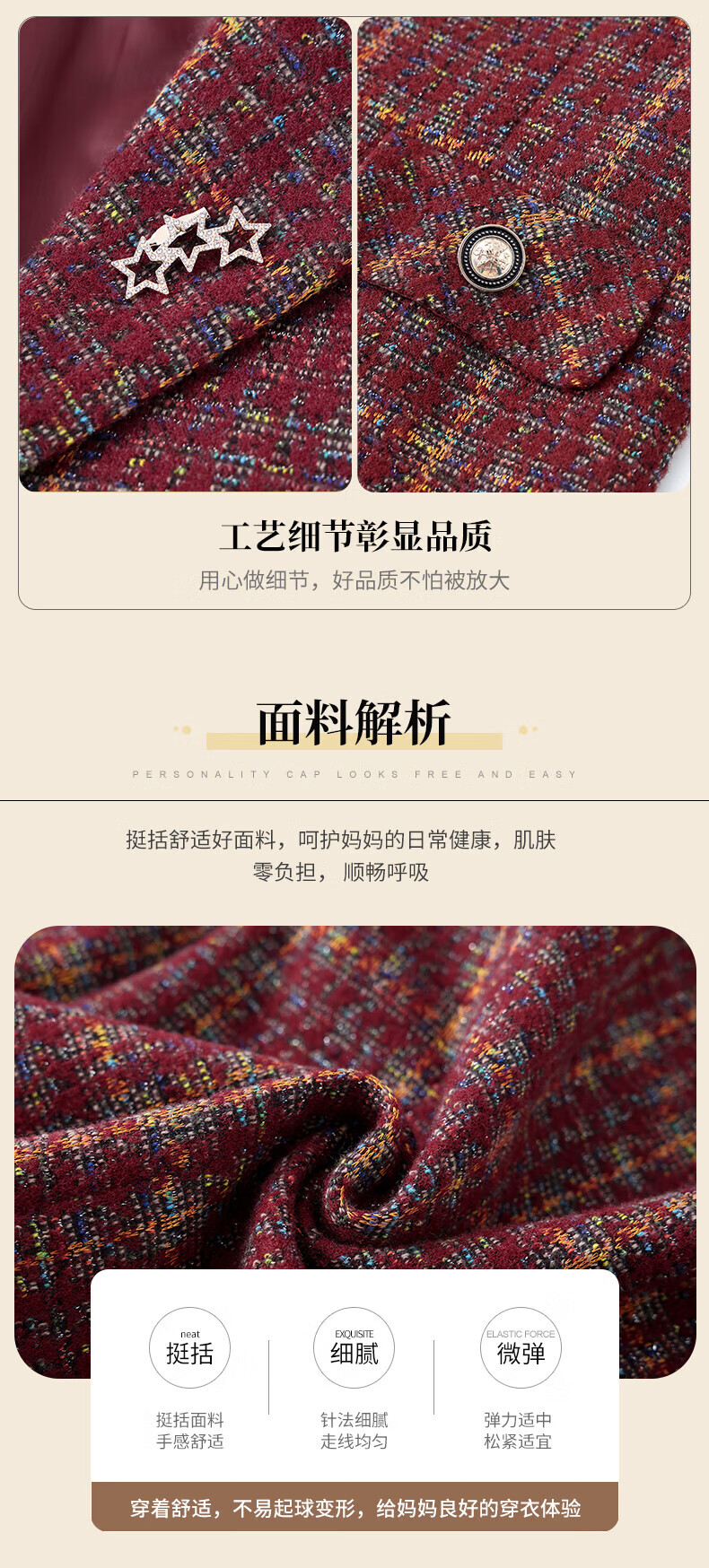 情罗兰(QINGLUOLAN)中老年女装春秋外套女款2026年最新款妈妈春装50-60岁洋气小西装 6023红色 XL (建议80-100斤)