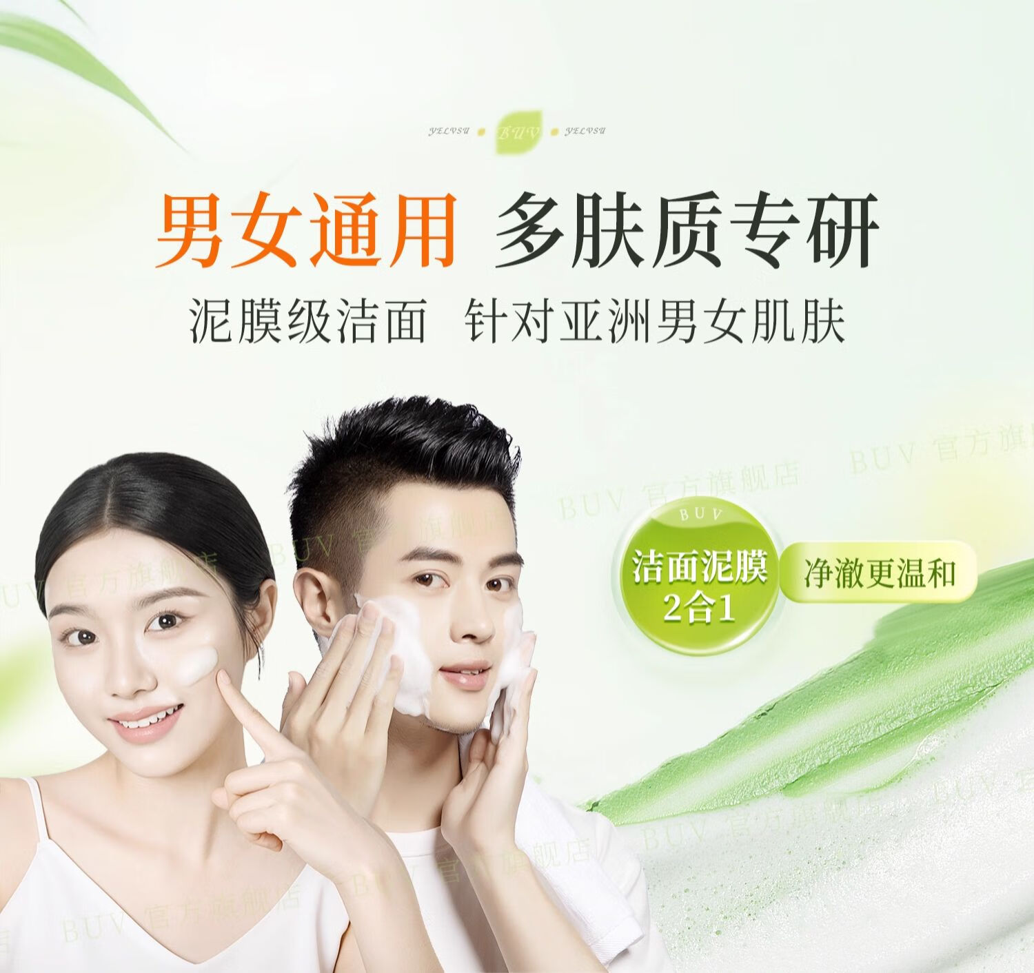 BUV黄子韬小绿泥氨基酸洗面奶300g男女保湿清洁控油收毛孔去黑头洁面