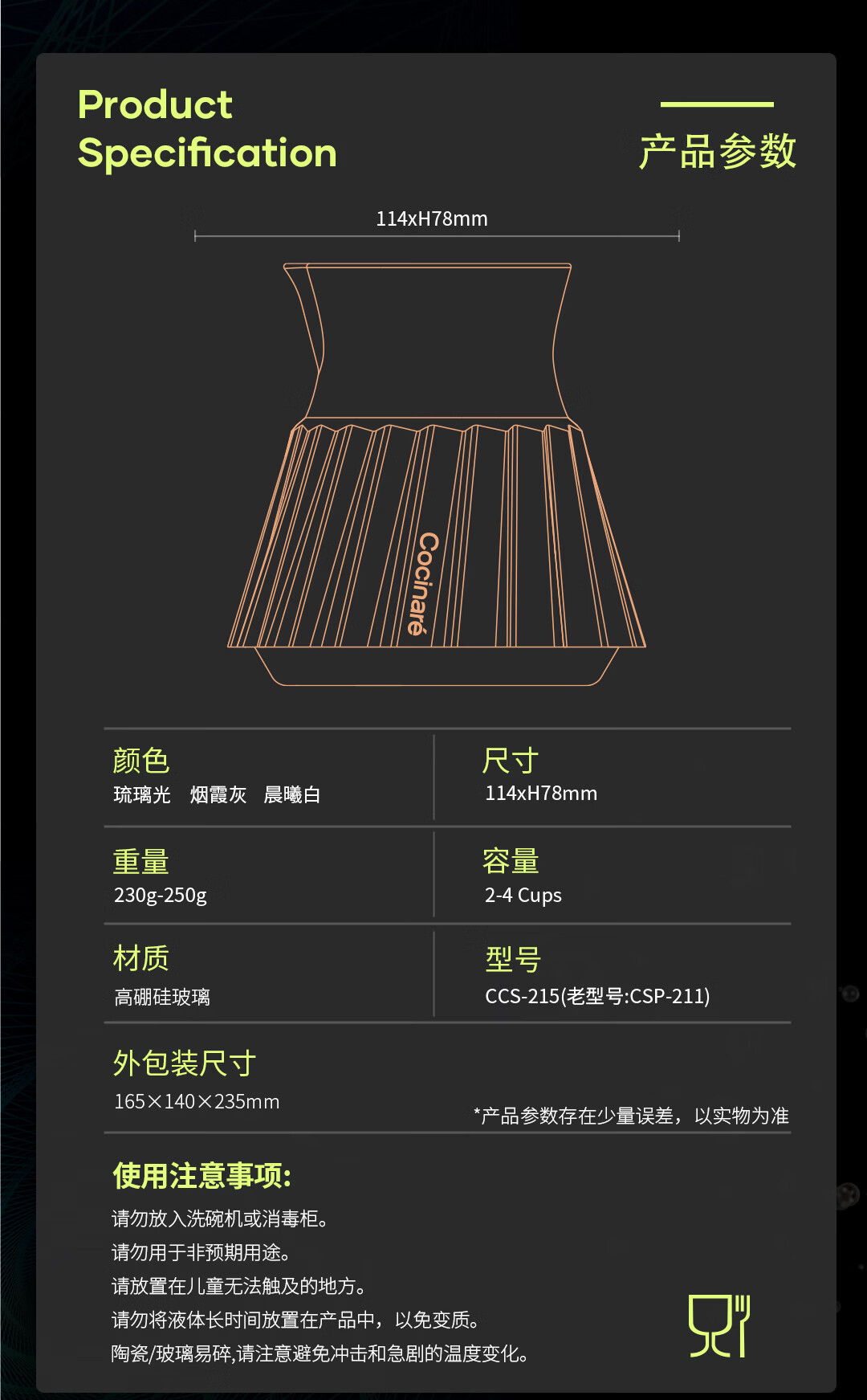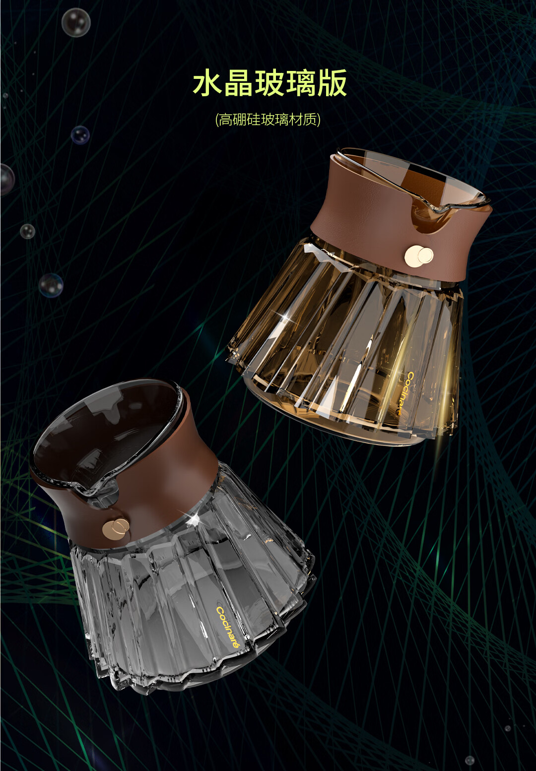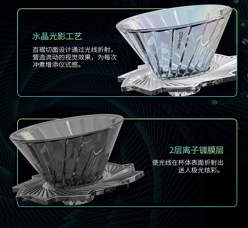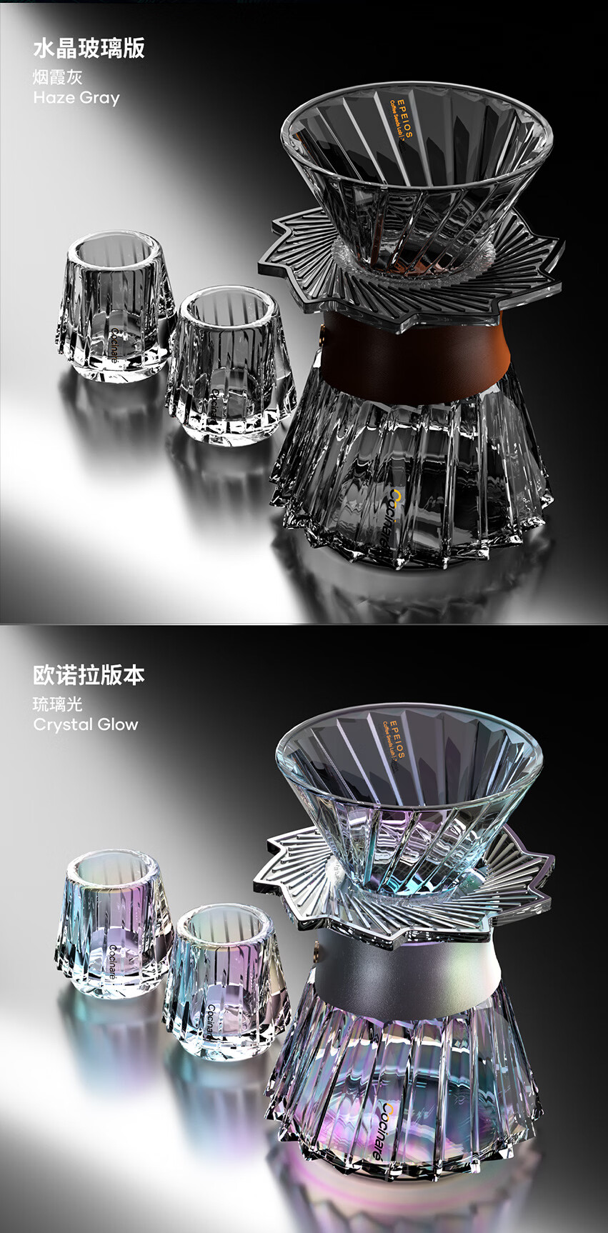 COCINARE手冲咖啡套装 欧若拉水晶玻璃咖啡器具咖啡壶滤杯 咖啡分享壶套装 【烟霞灰】滤杯+分享壶
