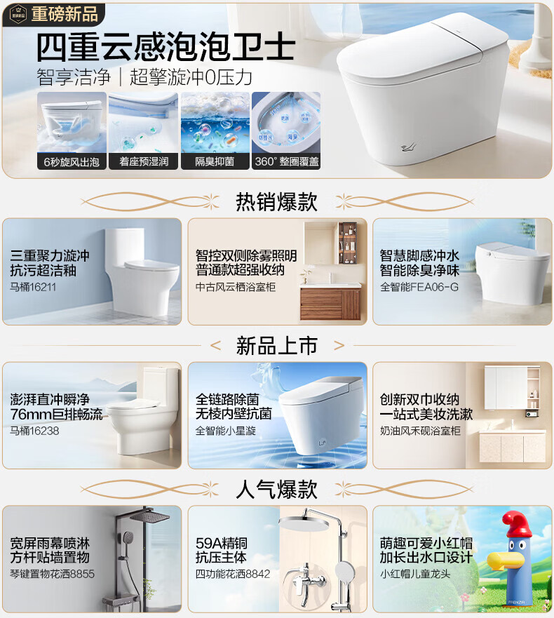 九牧(JOMOO)智能马桶轻享版全家桶无水压轻音冲魔力泡ZS760J-S1-305免费送装