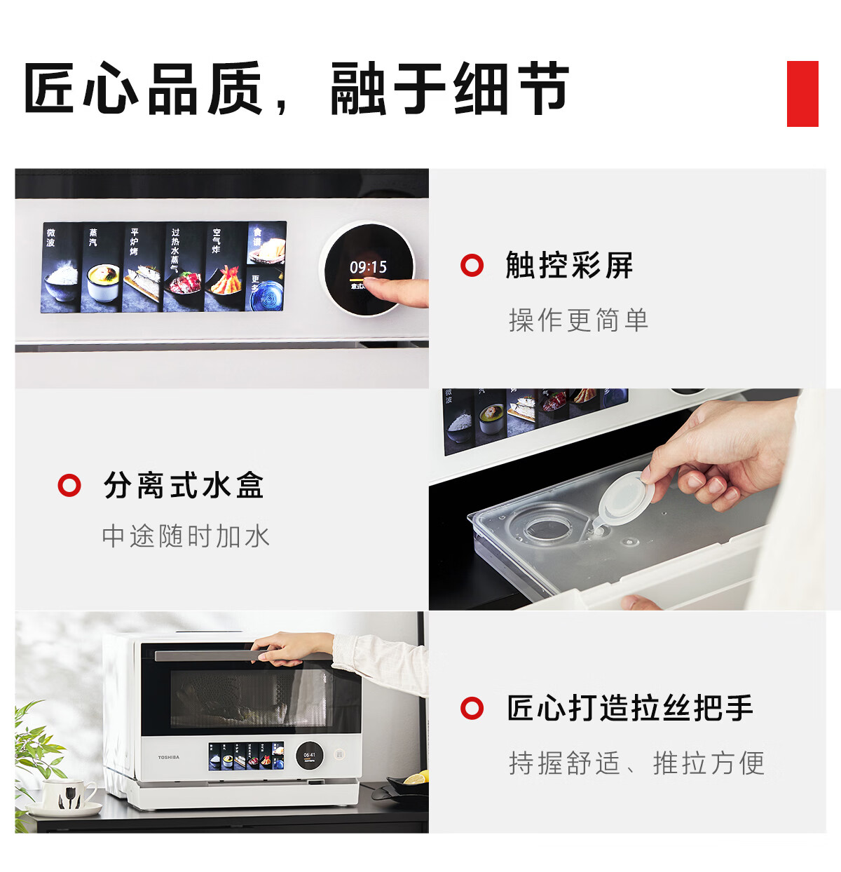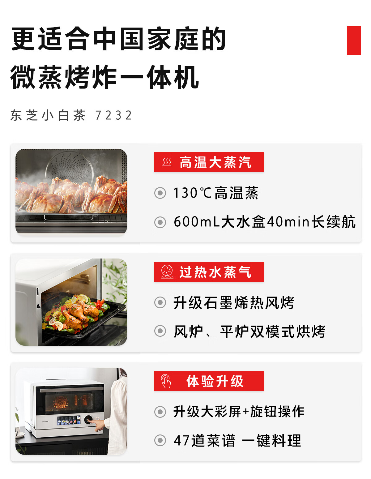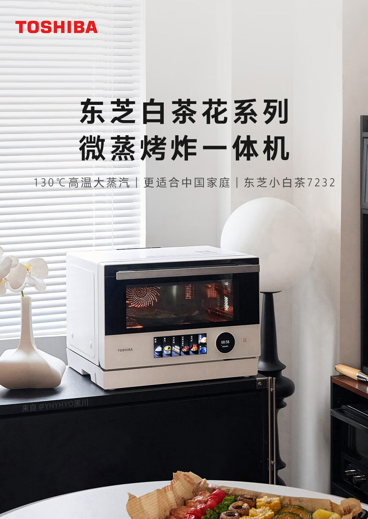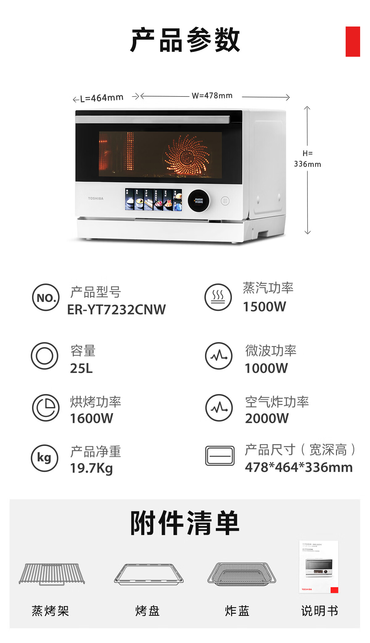 东芝(TOSHIBA)小白茶7232【官方旗舰店】微蒸烤炸一体机水波炉家用变频微波炉蒸烤箱空气炸四合一 旋钮+彩屏 25L ER-YT7232CNW