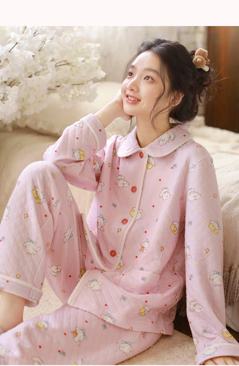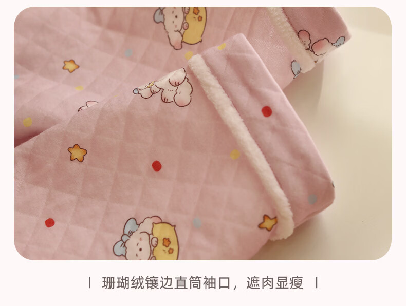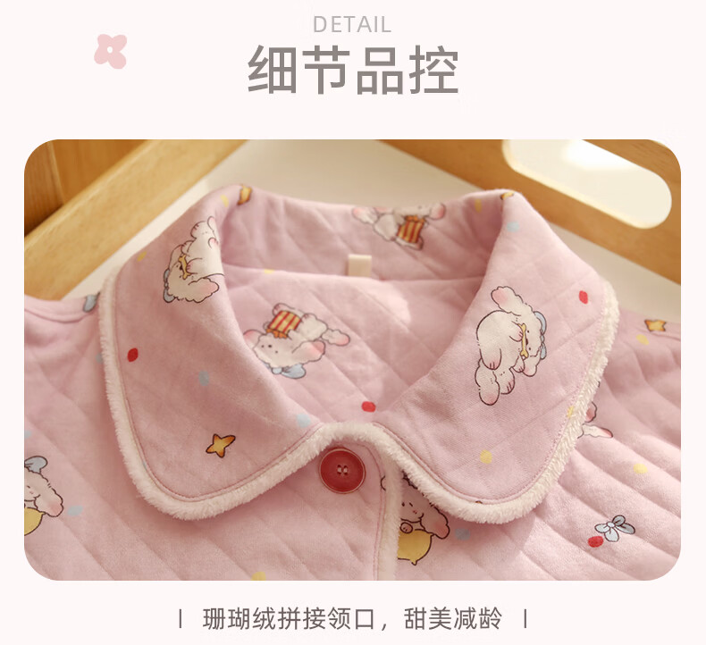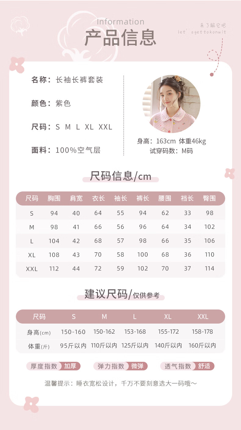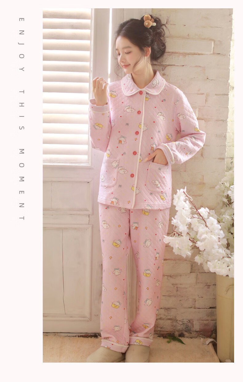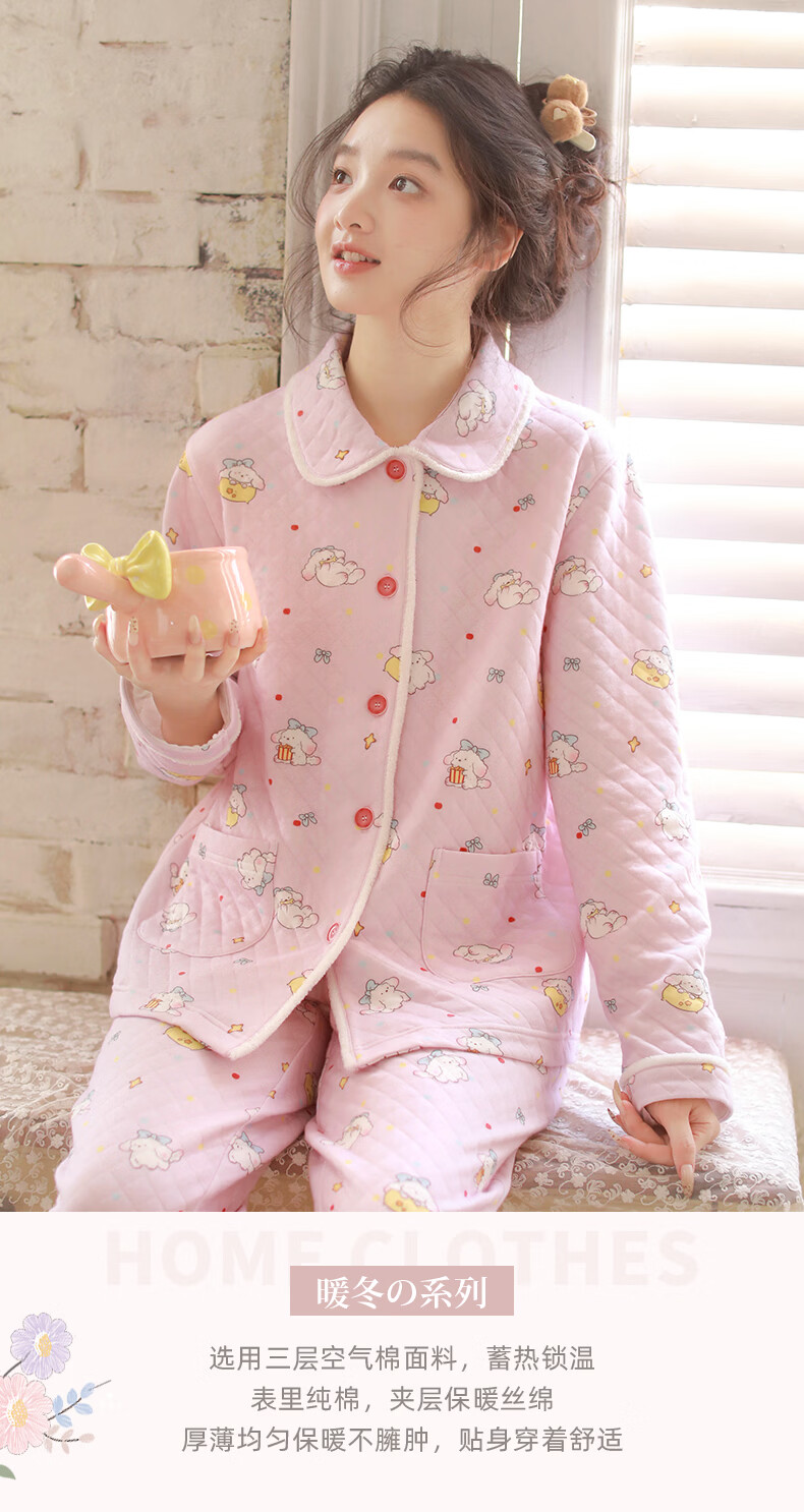 蔓秋 MEJU顽皮兔女士空气层空气棉长袖长裤家居服套装 紫色 S 95斤以内