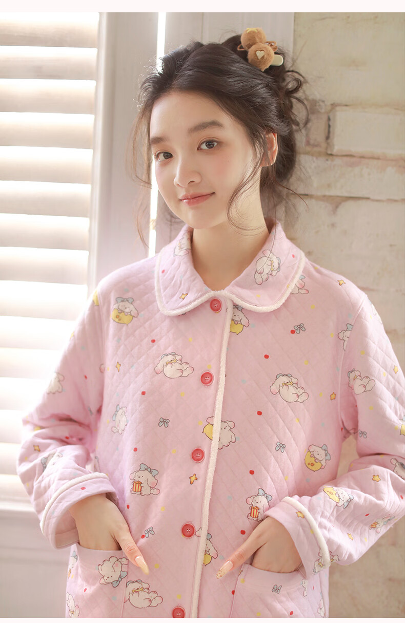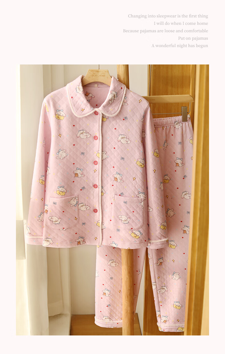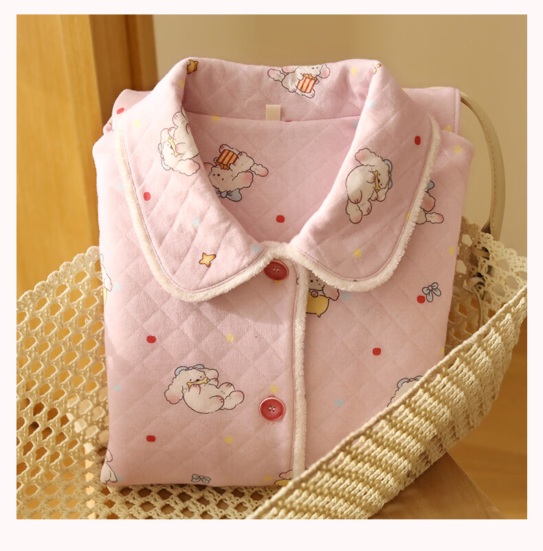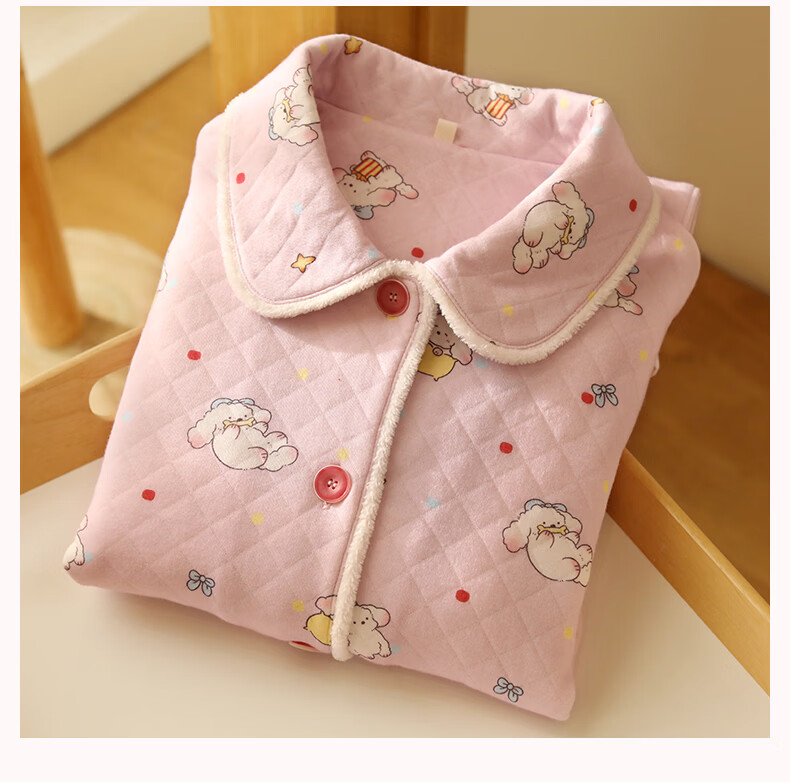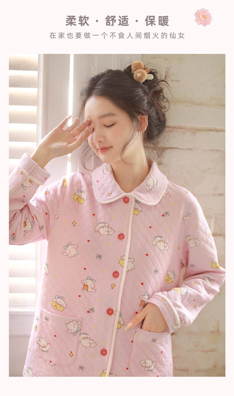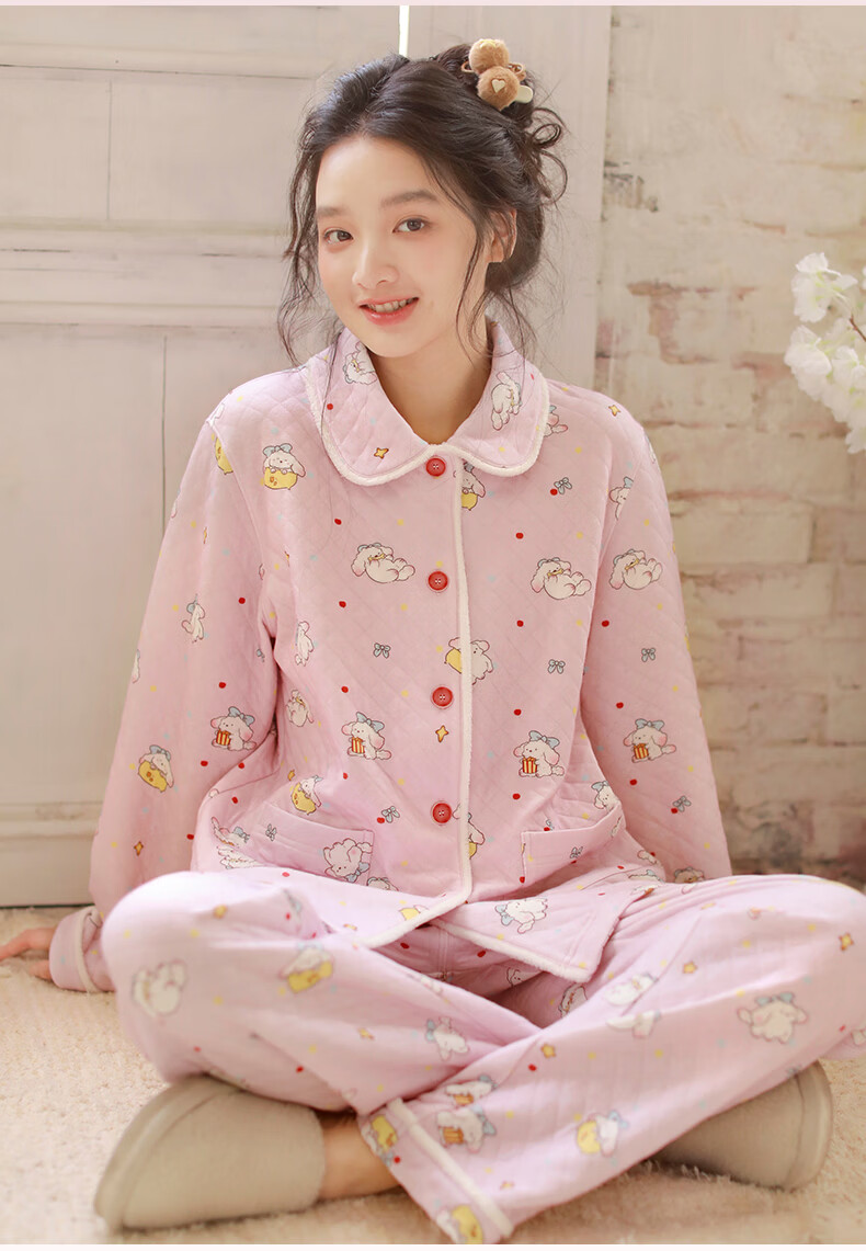 蔓秋 MEJU顽皮兔女士空气层空气棉长袖长裤家居服套装 紫色 S 95斤以内