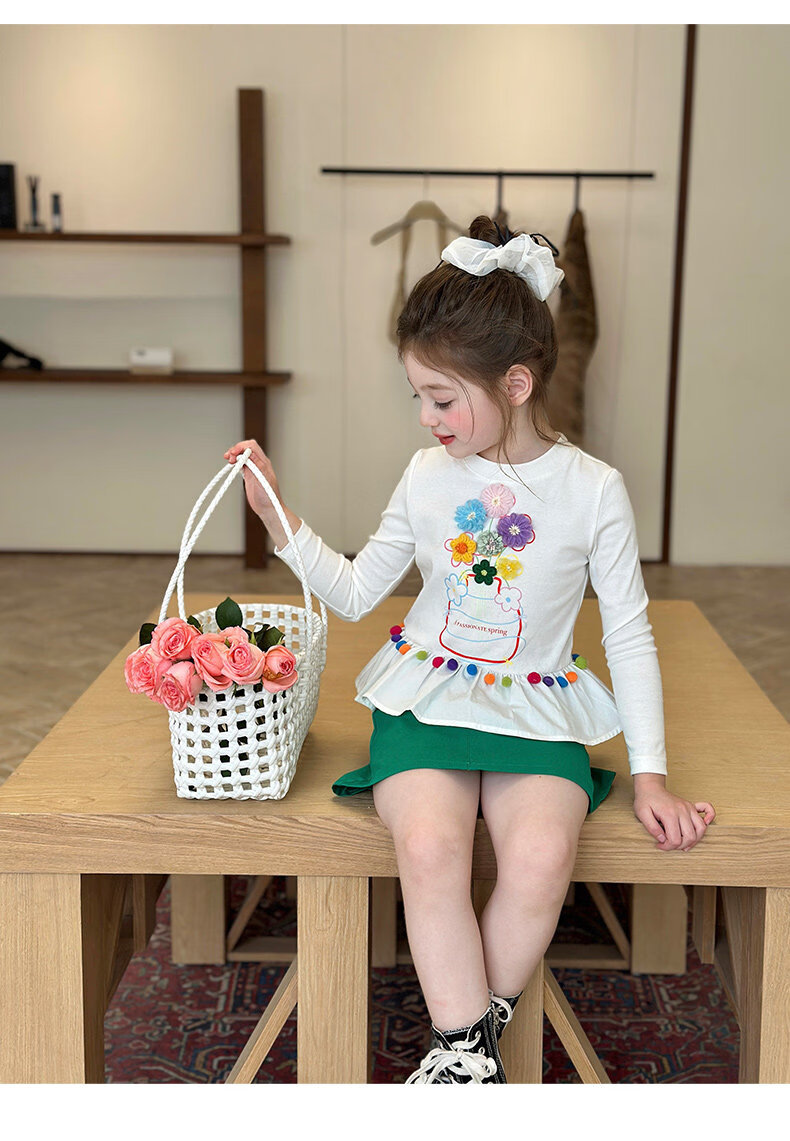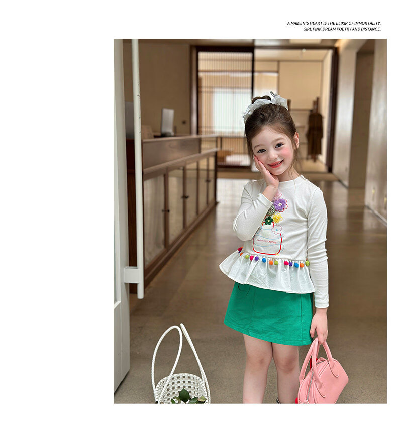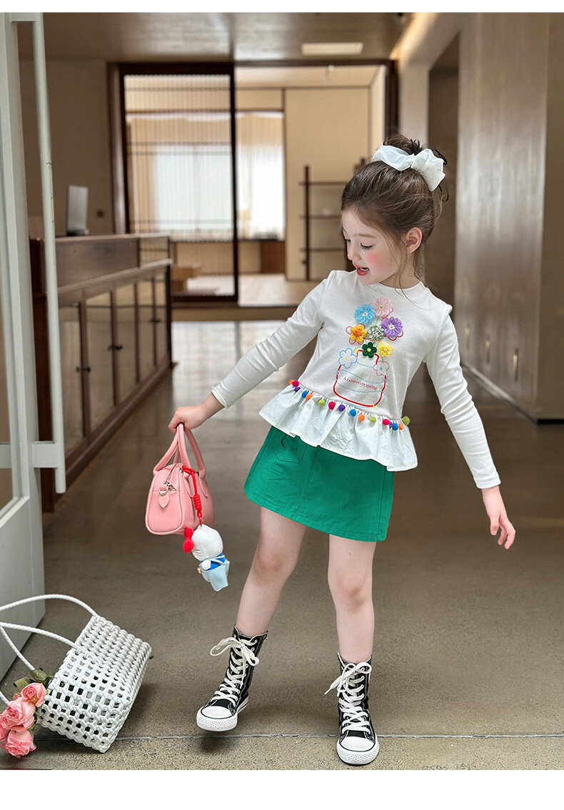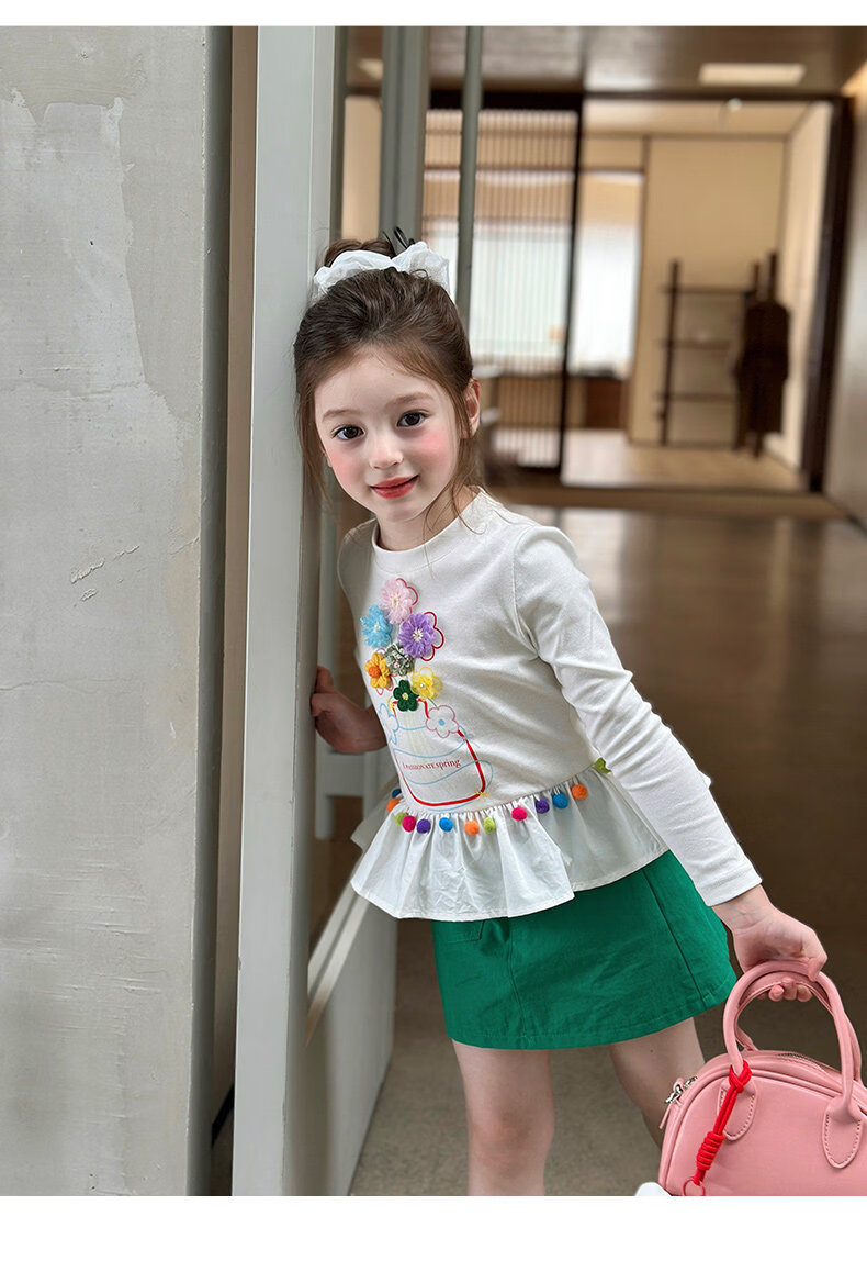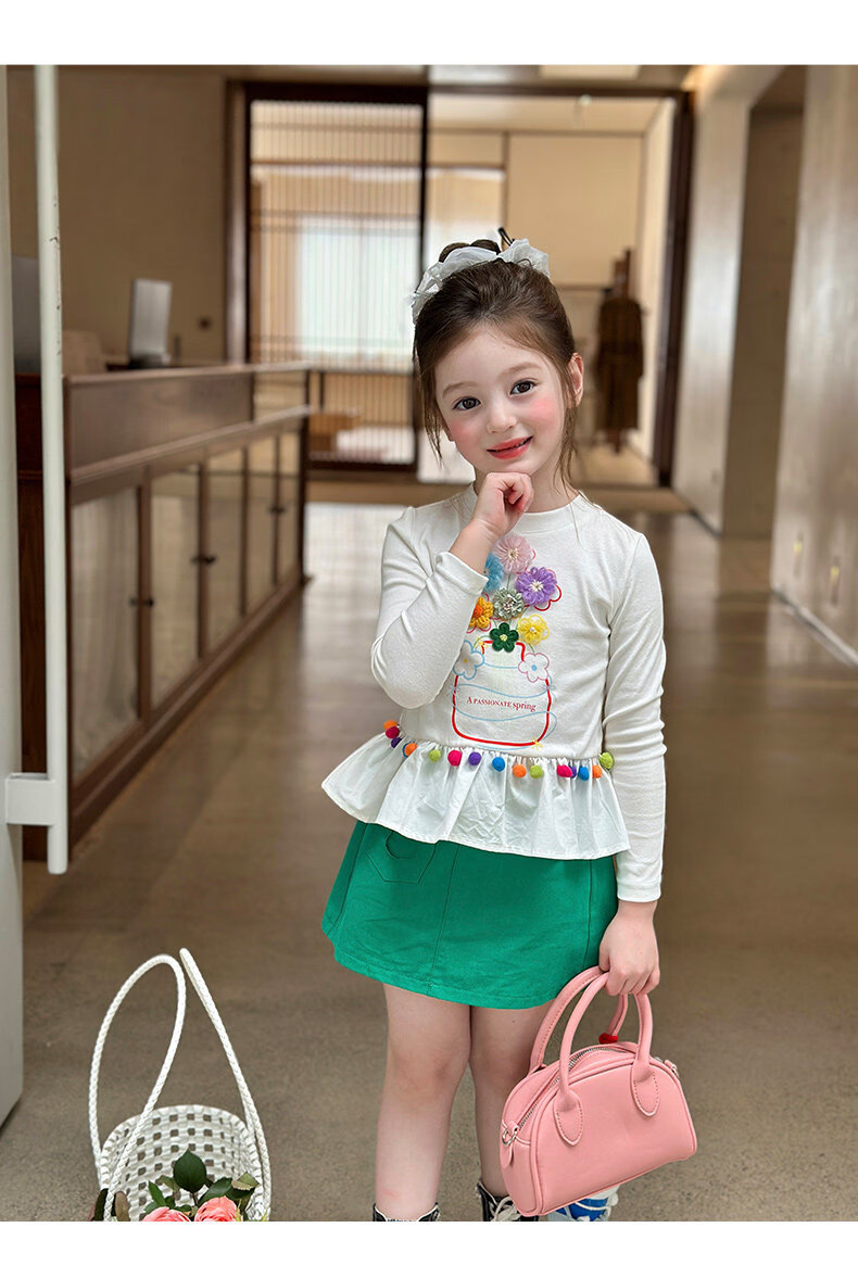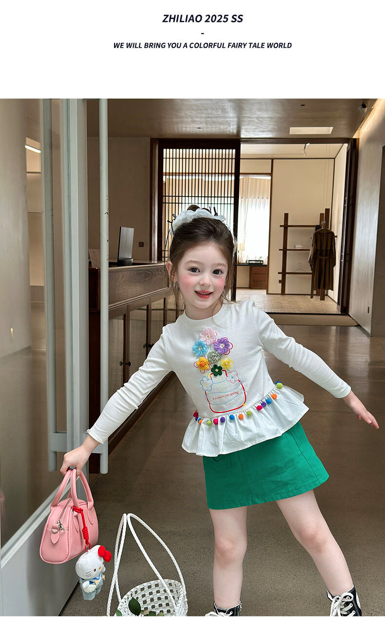 栀了成长记童装女童百搭荷叶边上衣2026春季儿童新款修身长袖T恤 白色 上衣 110 cm