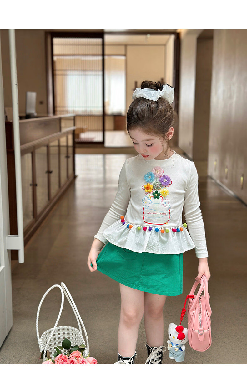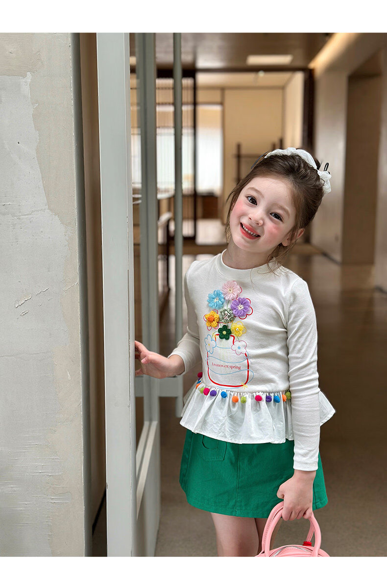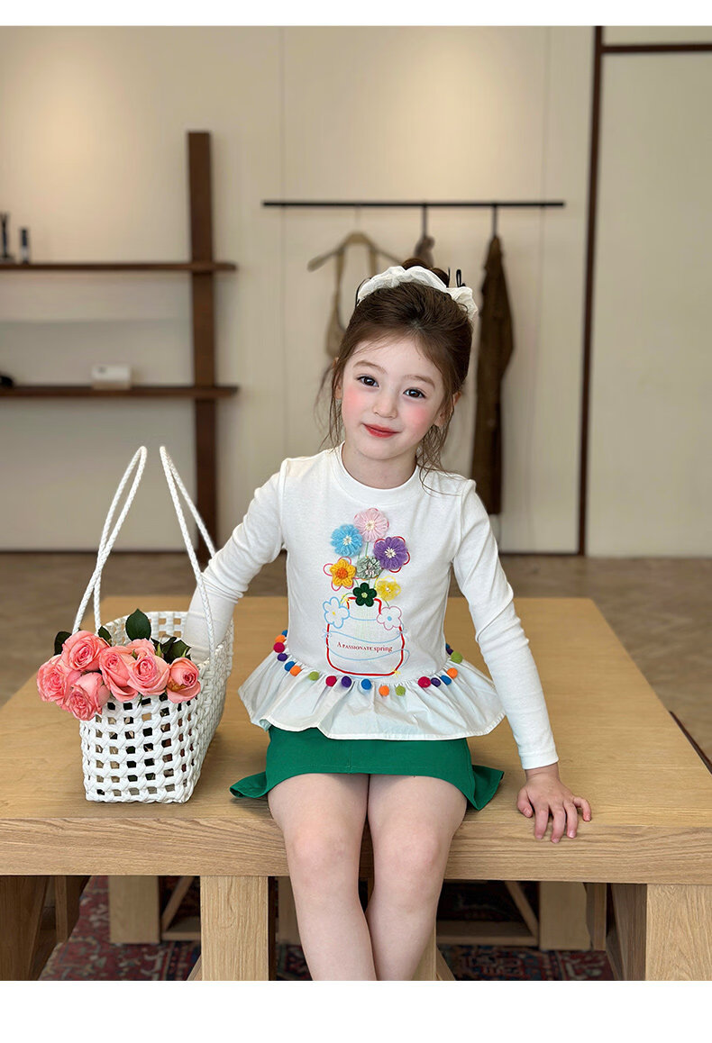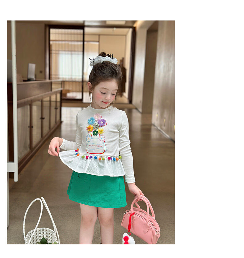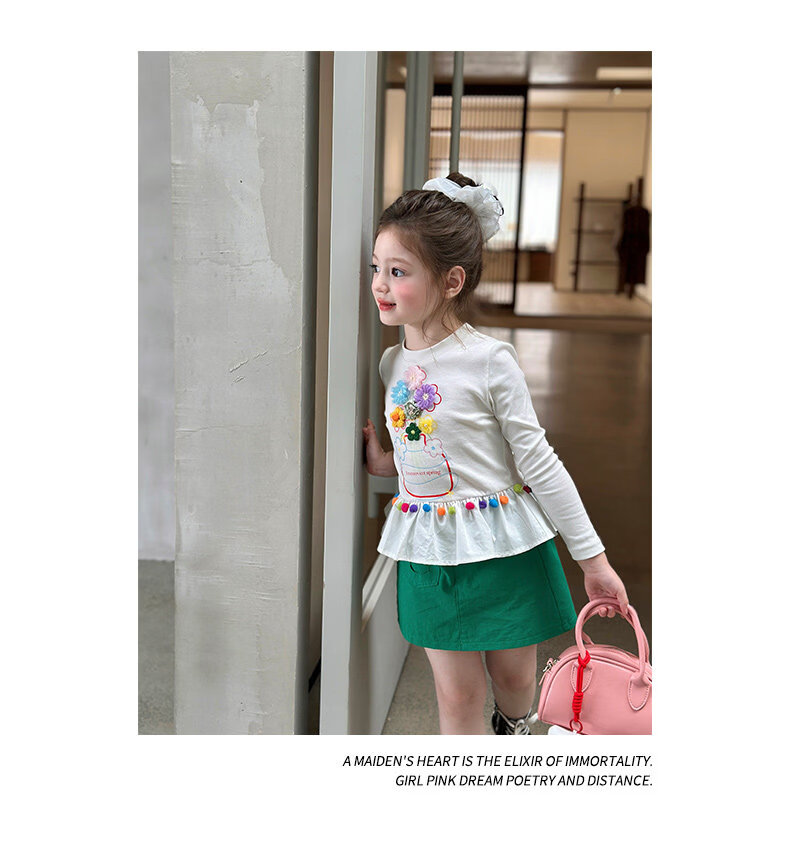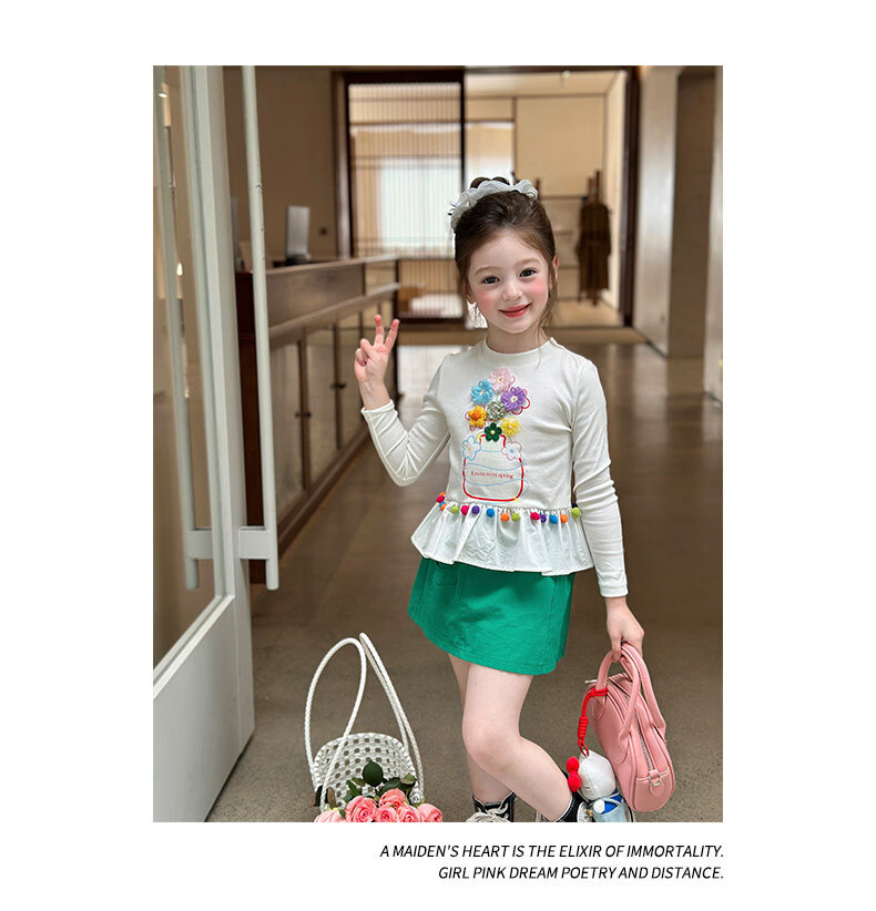 栀了成长记童装女童百搭荷叶边上衣2026春季儿童新款修身长袖T恤 白色 上衣 110 cm