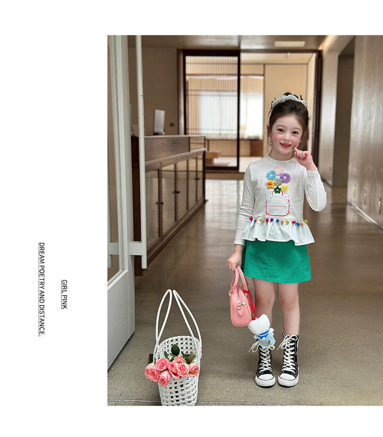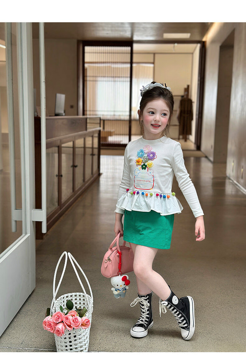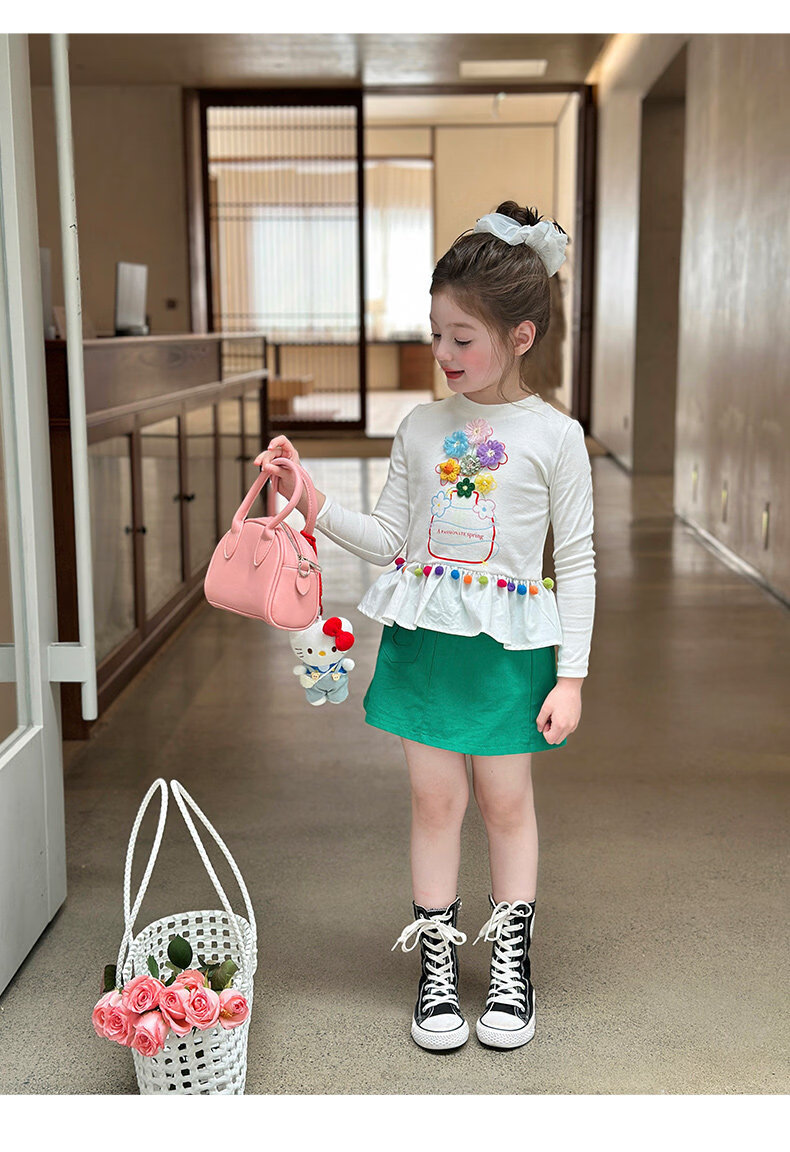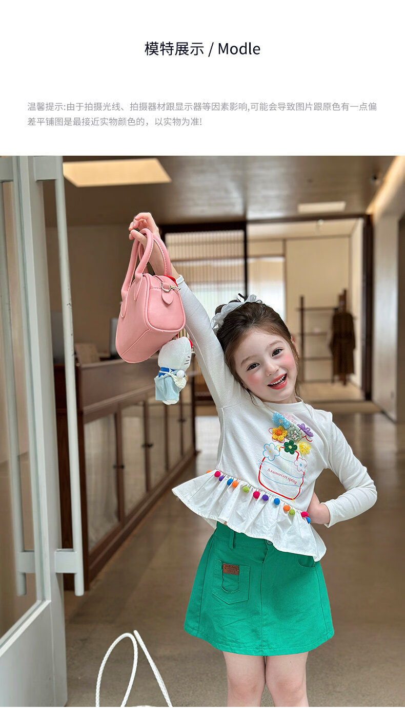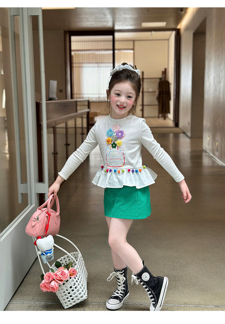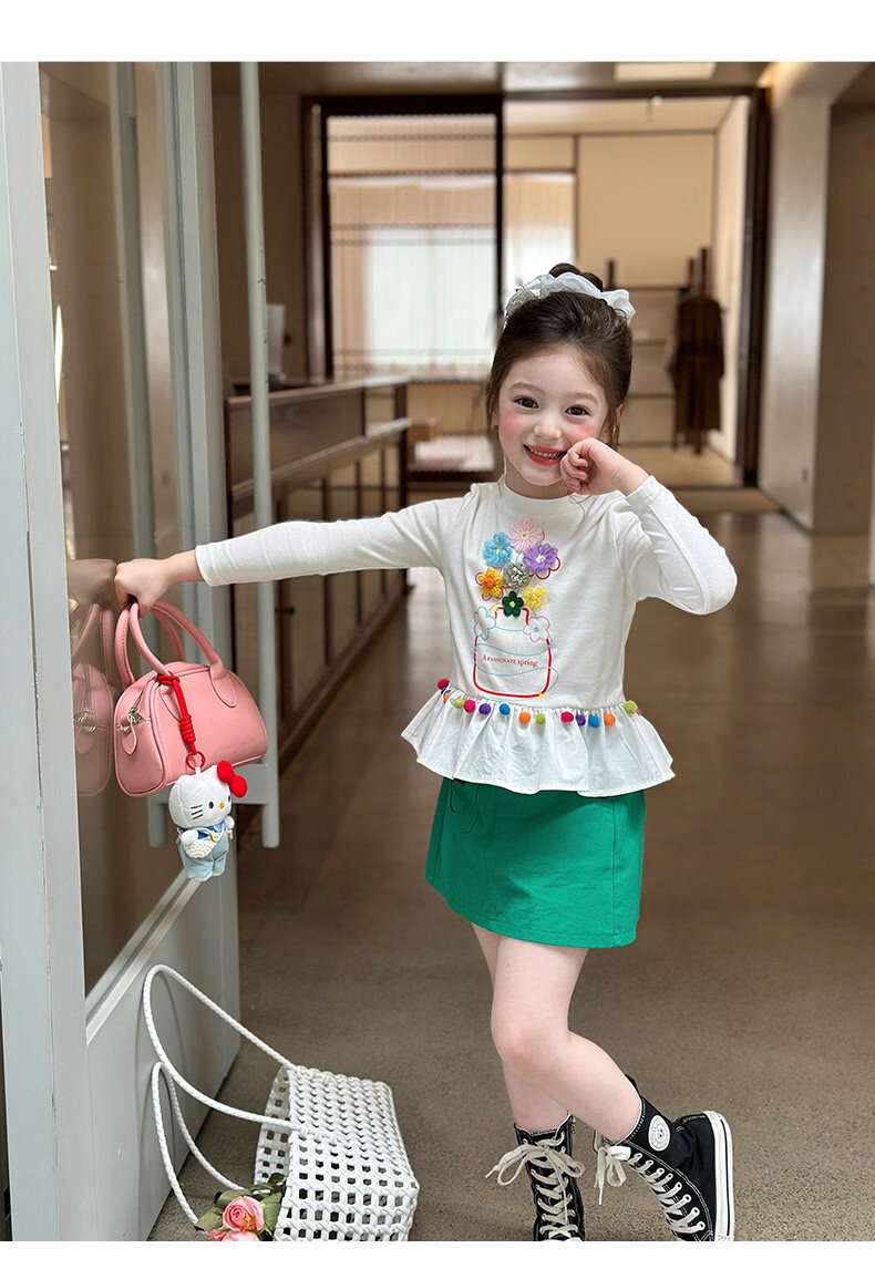 栀了成长记童装女童百搭荷叶边上衣2026春季儿童新款修身长袖T恤 白色 上衣 110 cm