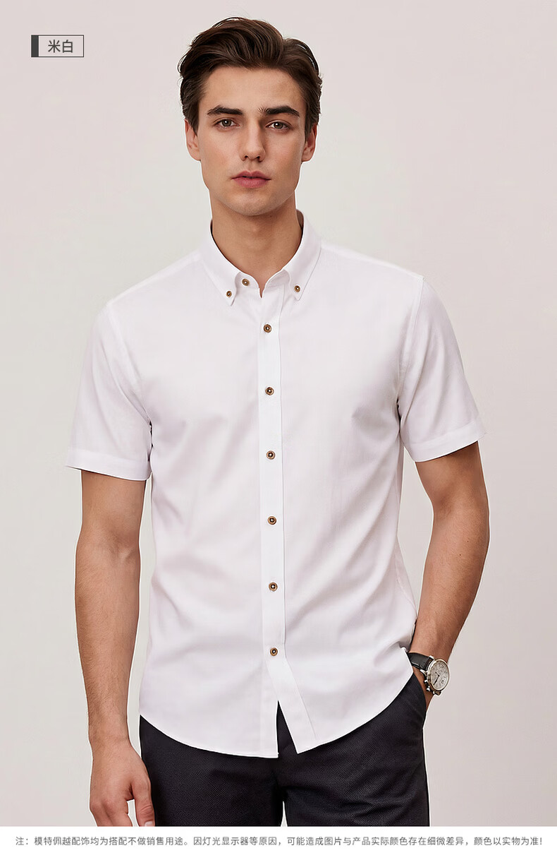 杉杉【亚麻+莫代尔混纺】夏季新款商务休闲短袖衬衫男 米白 M