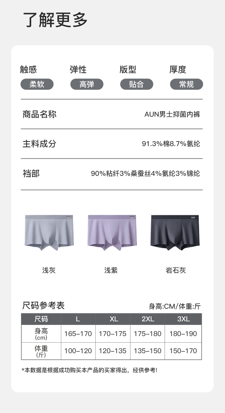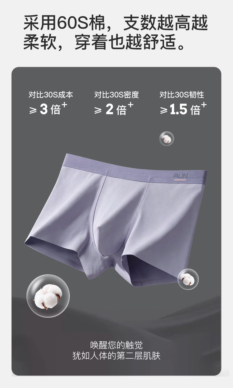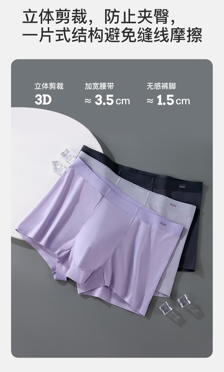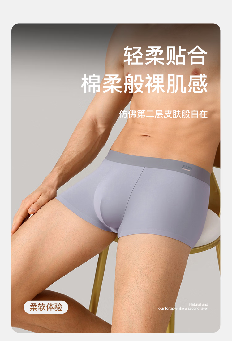 AUN内裤男10A抗菌四角裤夏季透气宽松大码平角裤棉质舒适短裤衩 3条混色装 L