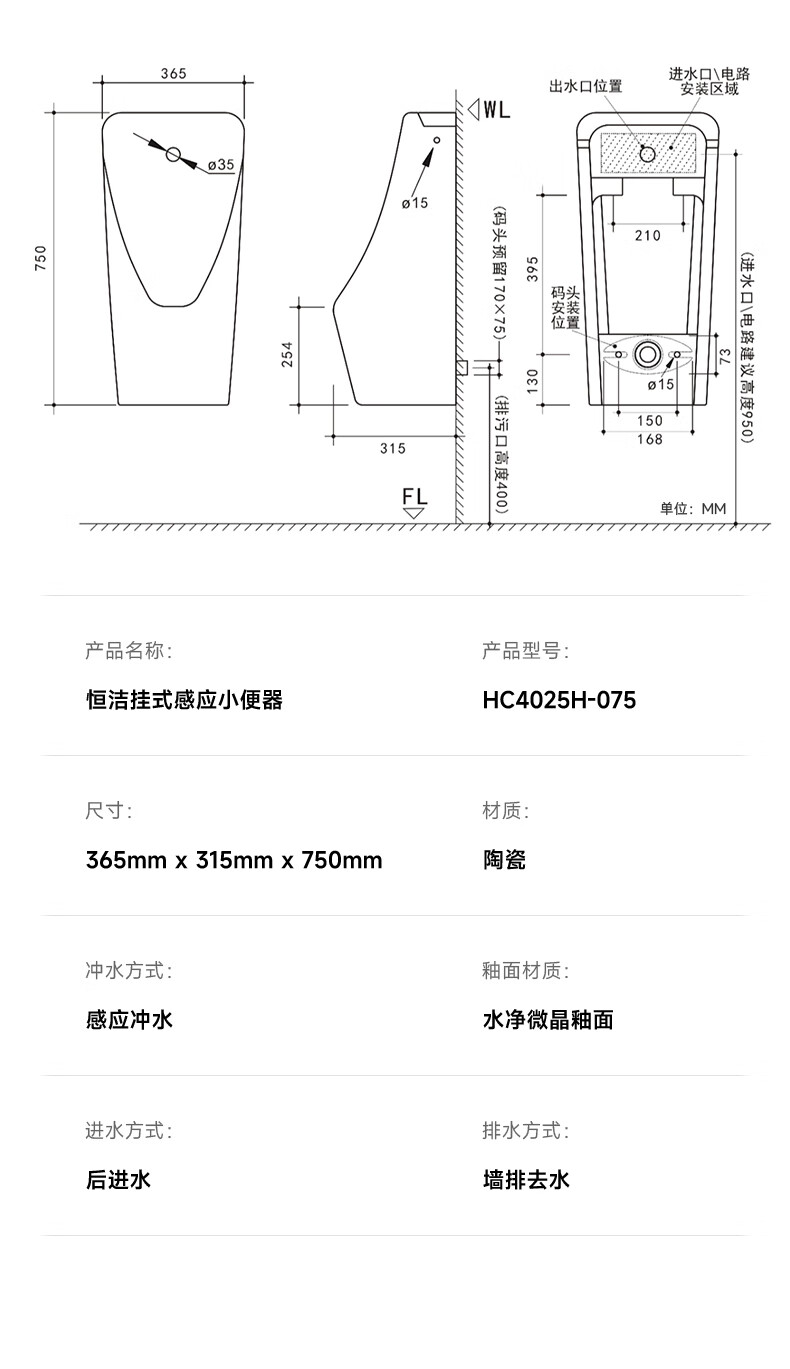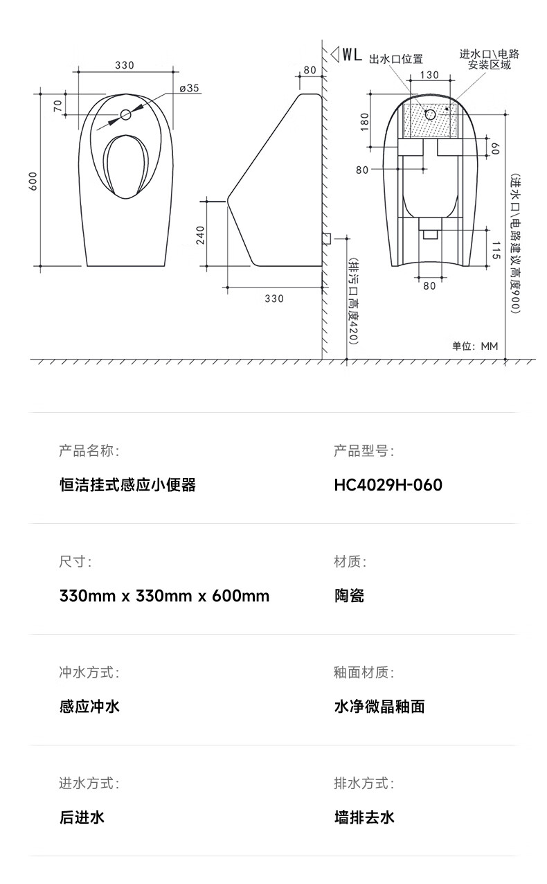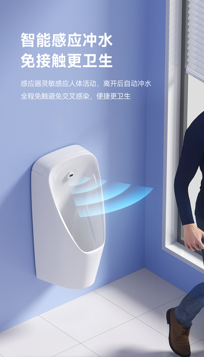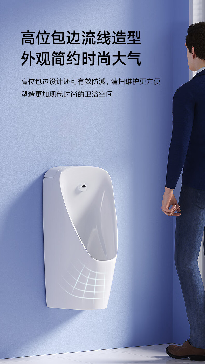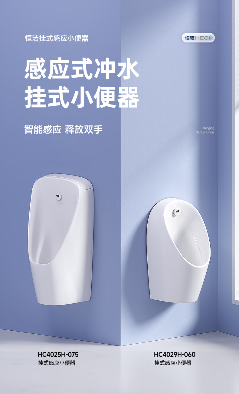 恒洁(HEGII)小便斗挂墙式一体感应明装壁挂式墙排小便器家用男士小便池 HC4029H-060一体感应直流小便斗