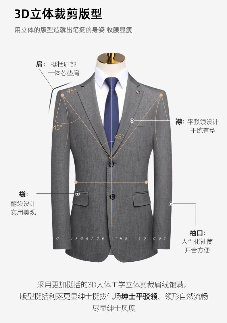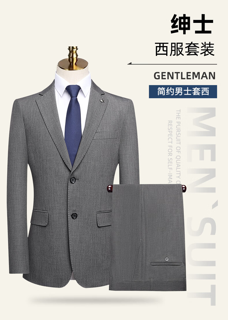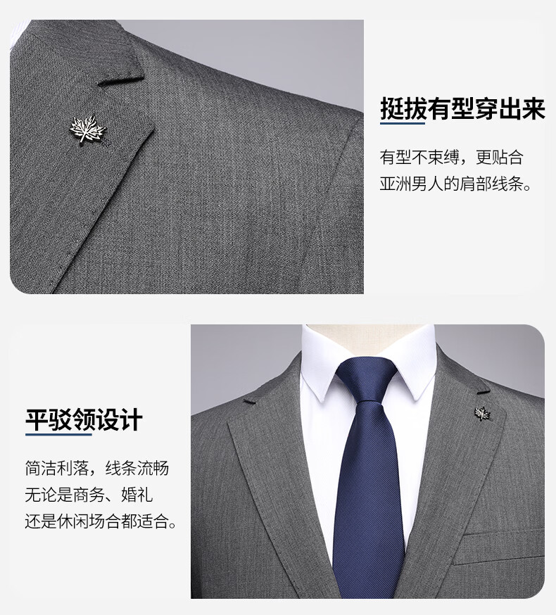 SHANSHAN杉杉男士西服套装2026春季新款商务西装简约立体修身日常通勤衣服 浅灰色 50 /180