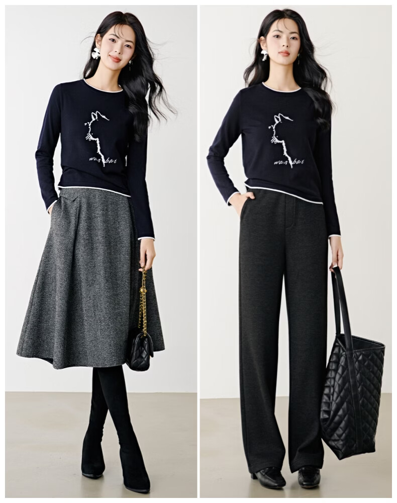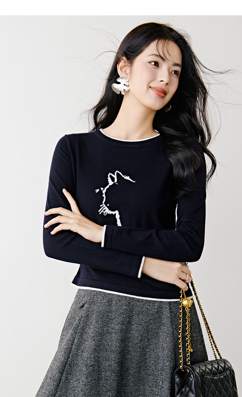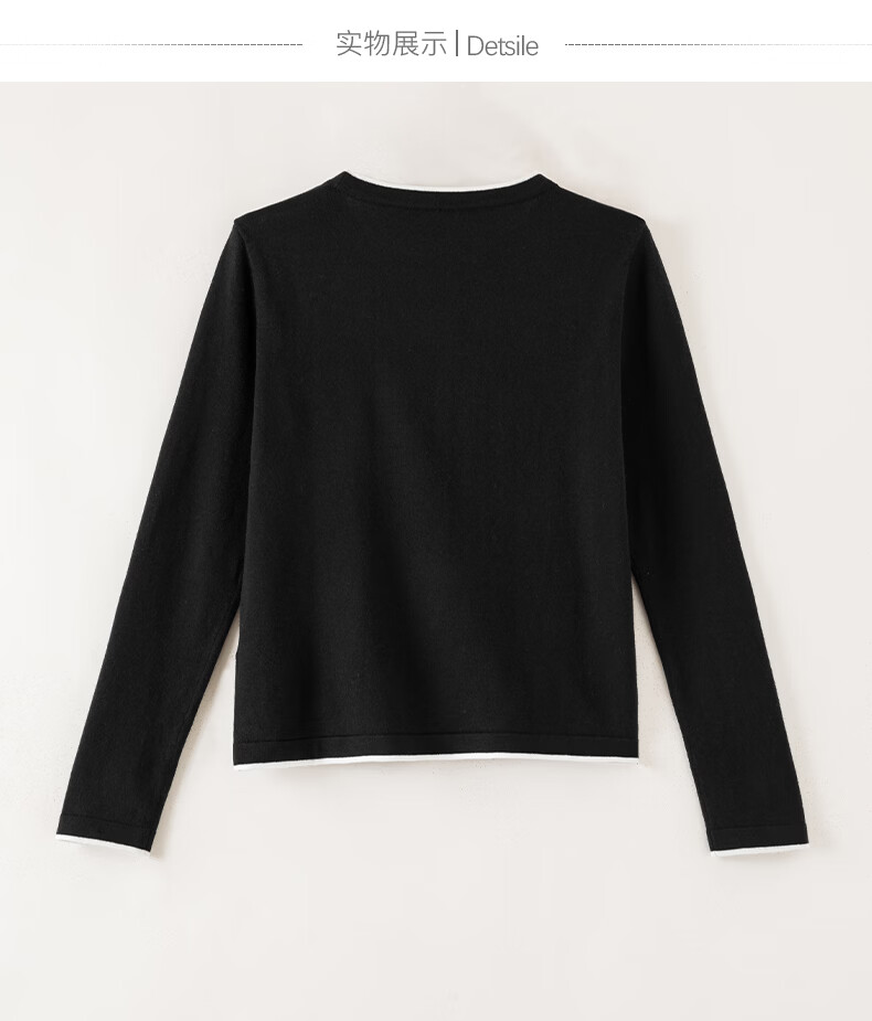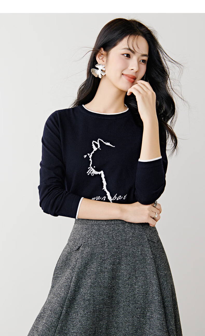 晚白【新品】2026春款时尚撞色圆领毛衣柔软舒适百搭针织衫女 藏青色 L