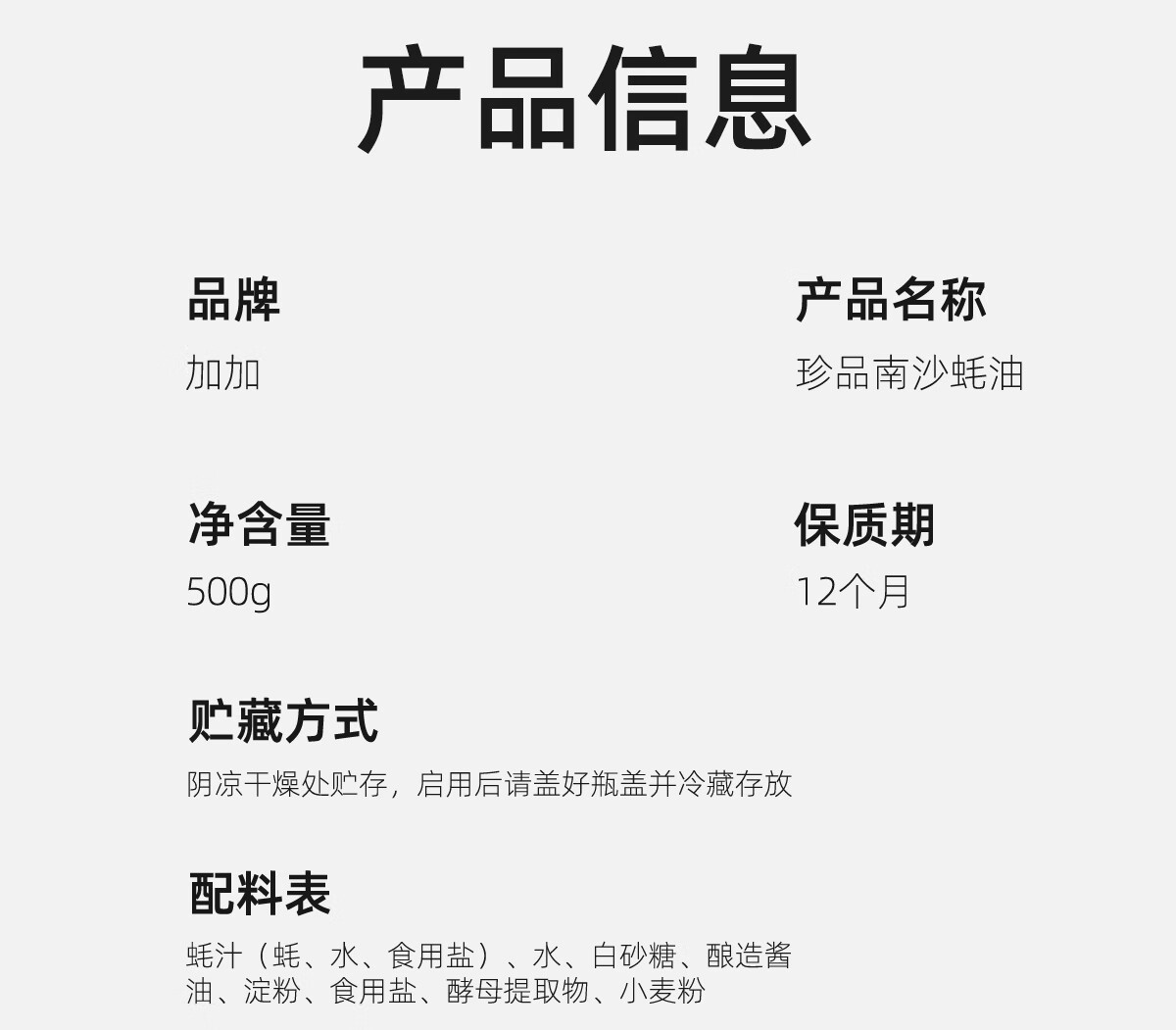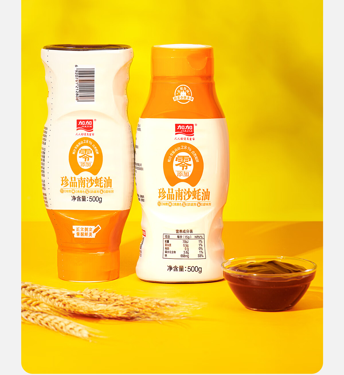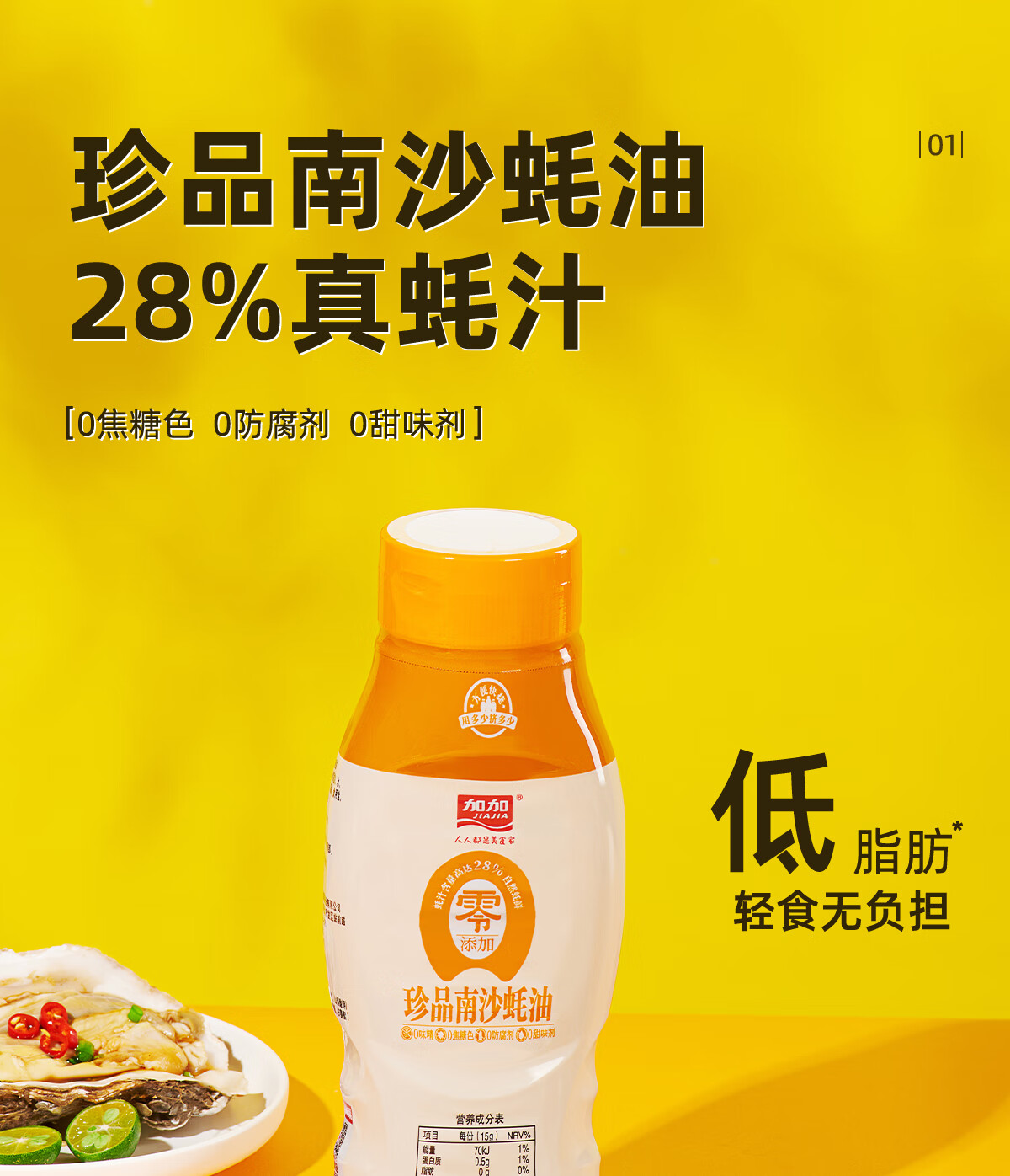 加加 珍品南沙蚝油500g【0添加 28%蚝汁】挤挤装 蘸拌炖捞炒蒸调味料