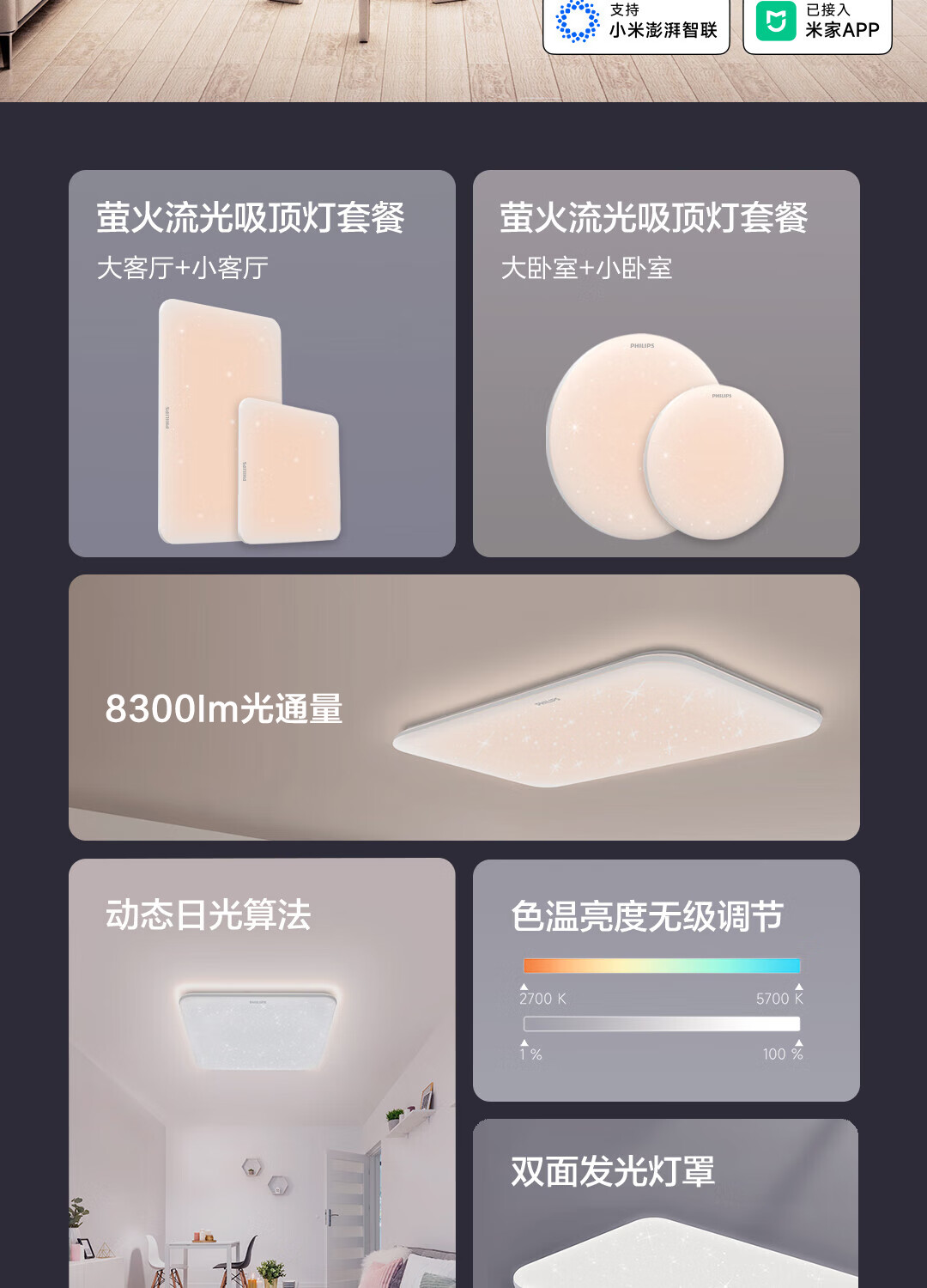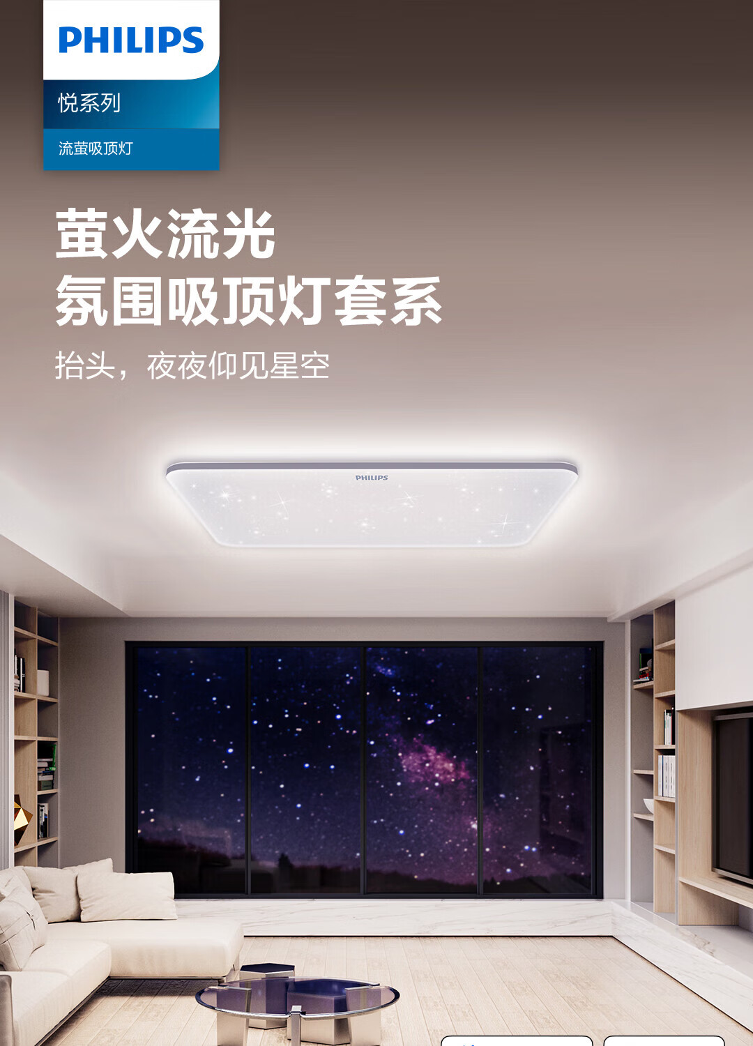飞利浦客厅吸顶灯全光谱护眼智能卧室灯已接入APP流萤【包安装】 48W 18㎡内适用 3300lm 流萤星空款