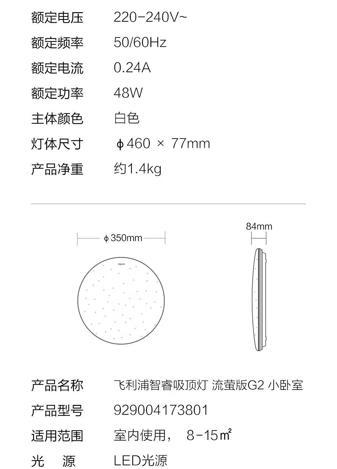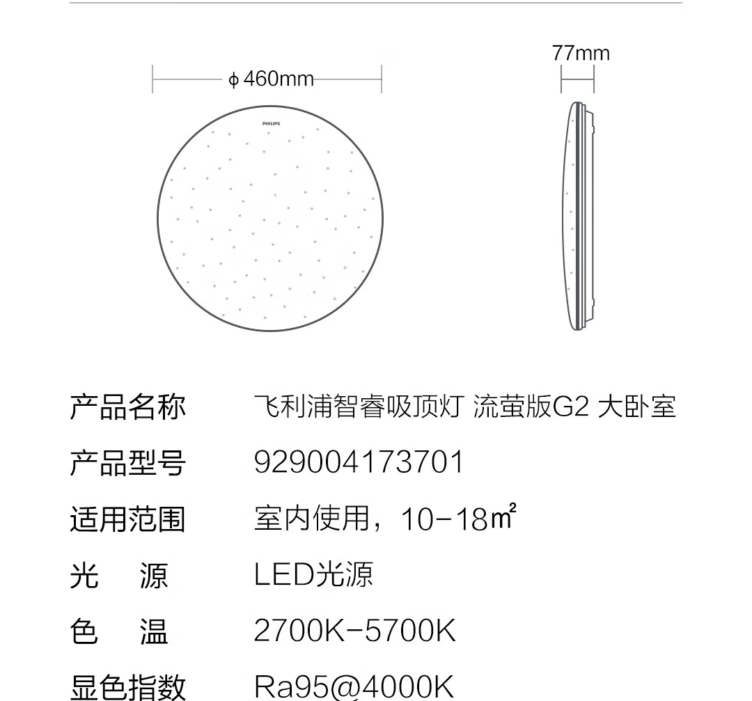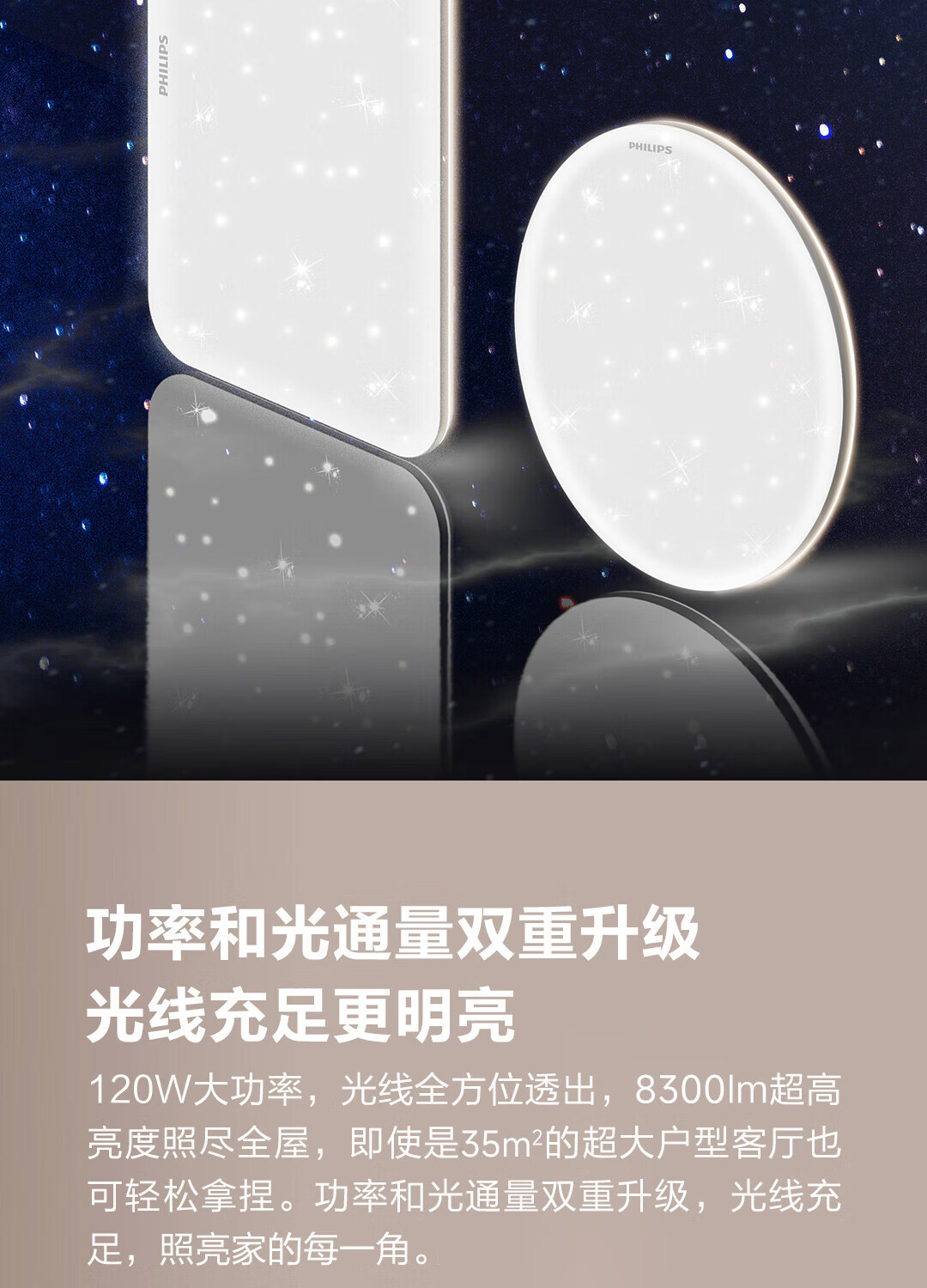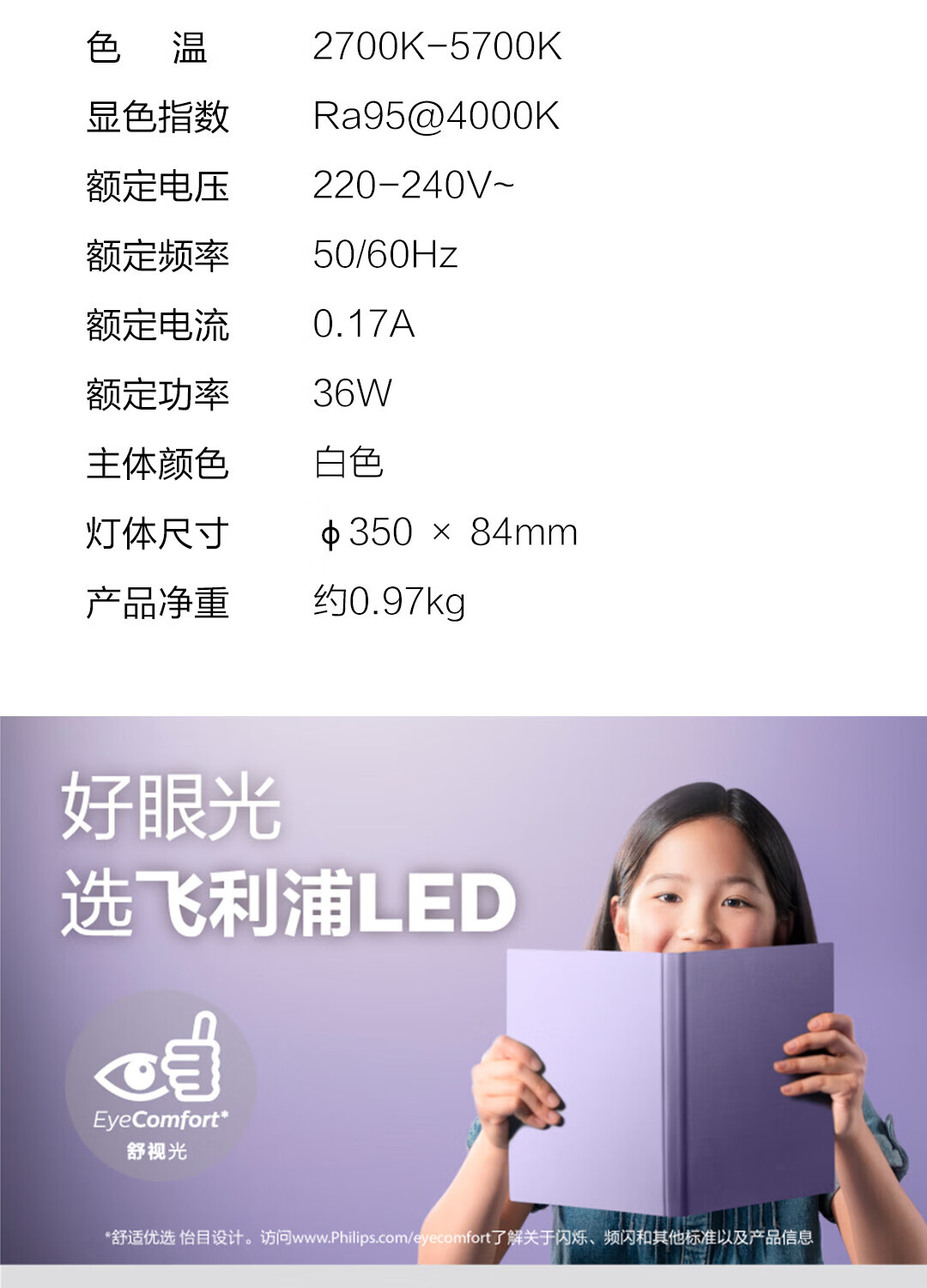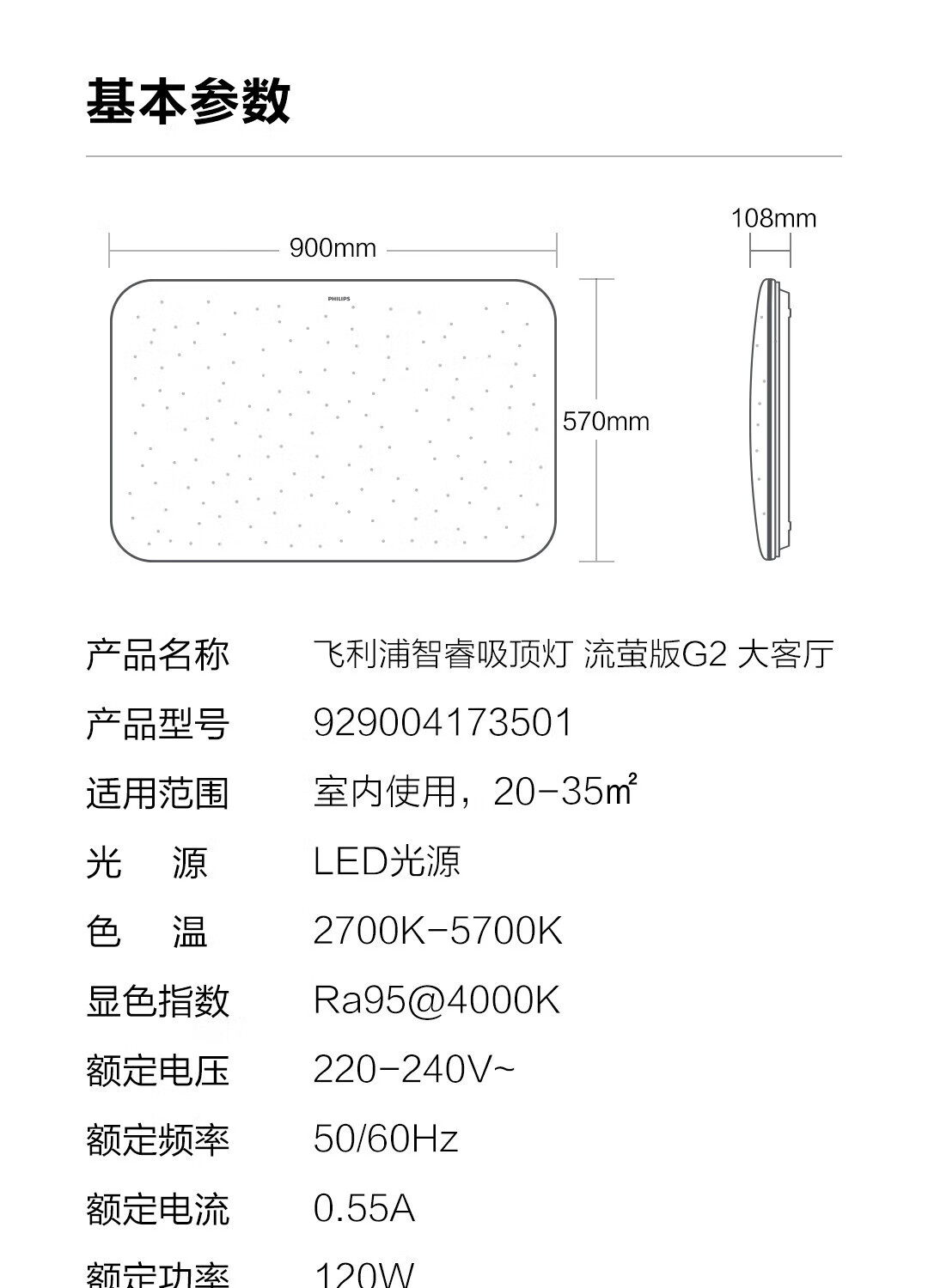 飞利浦LED全光谱护眼客厅吸顶灯卧室儿童房灯饰EyeCare115W 115W 25㎡内适用 8500lm 全光谱护眼