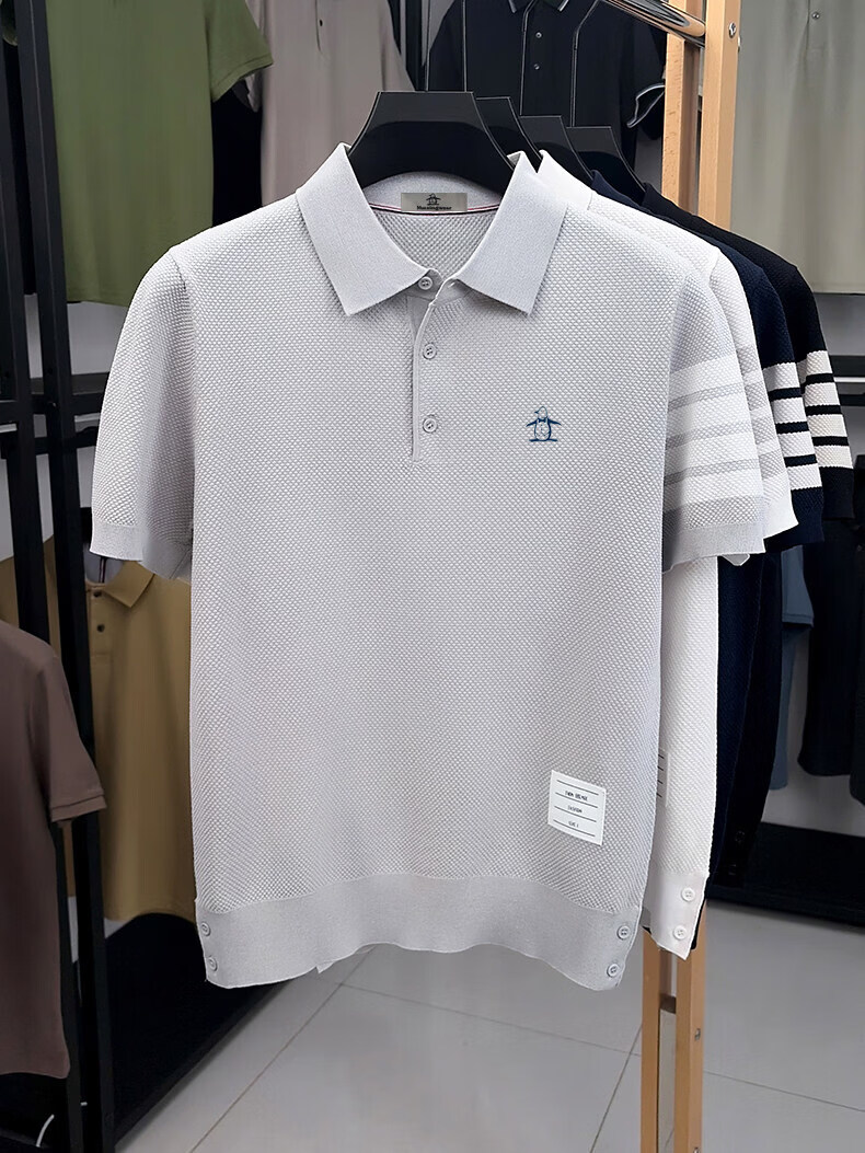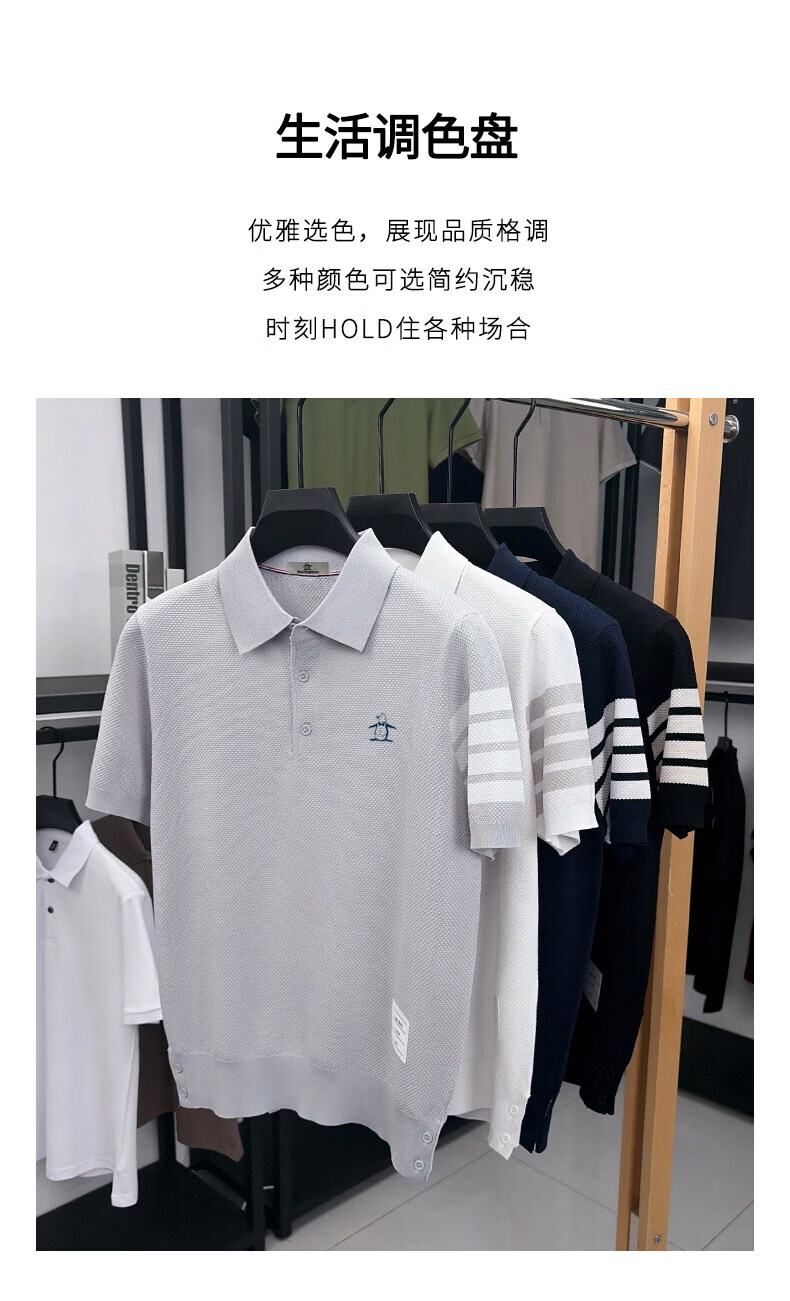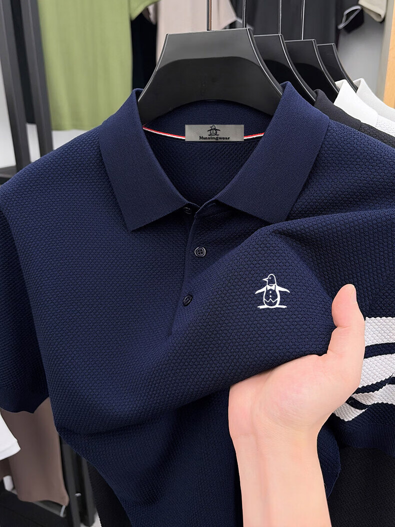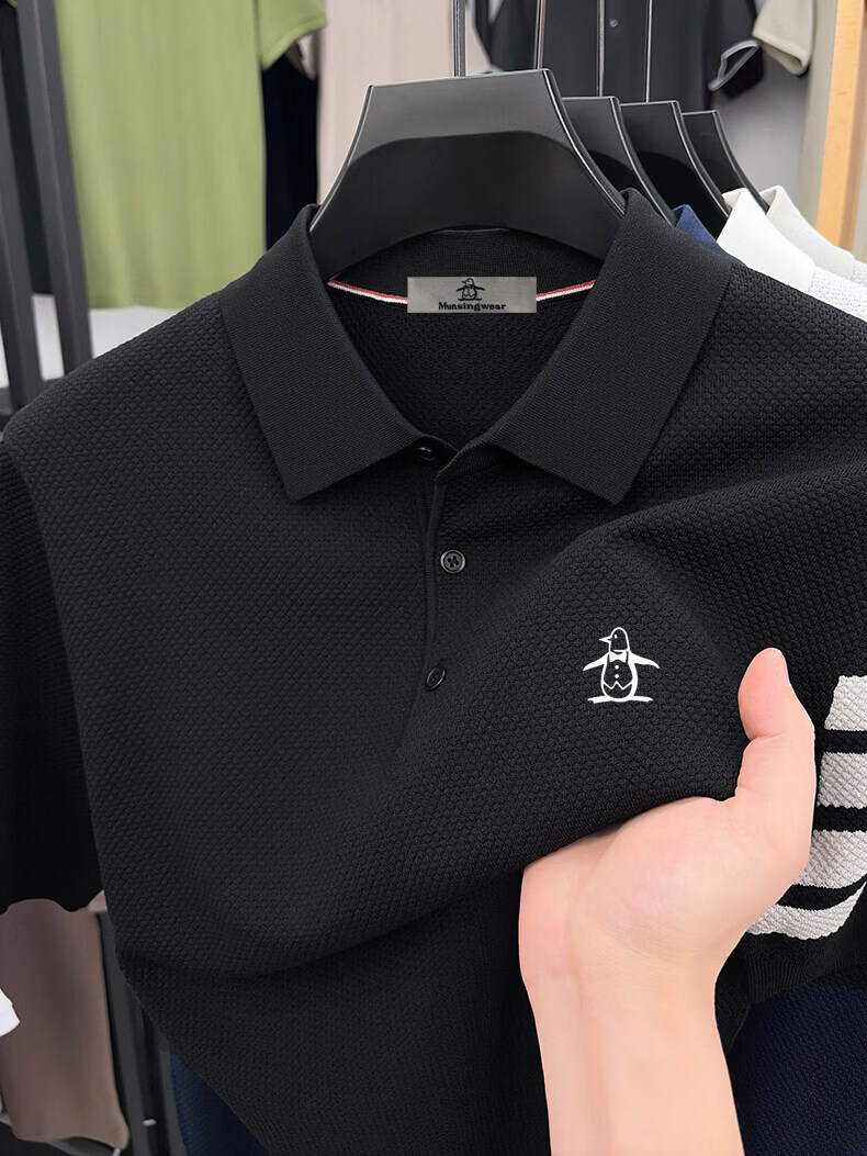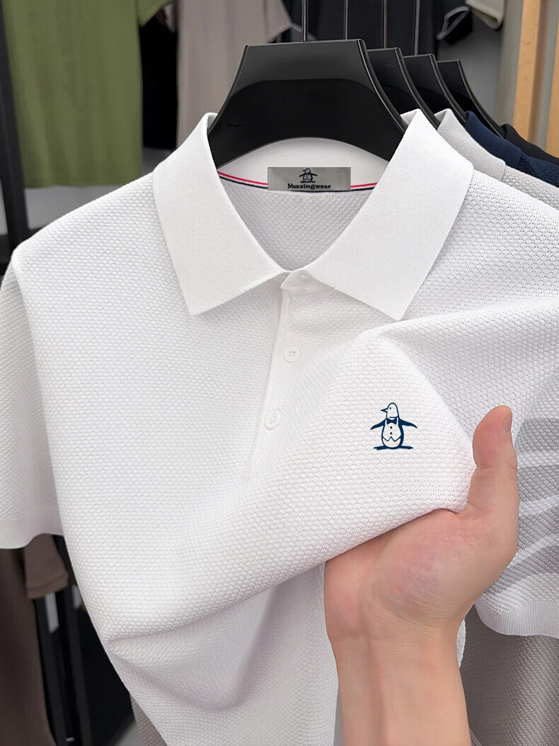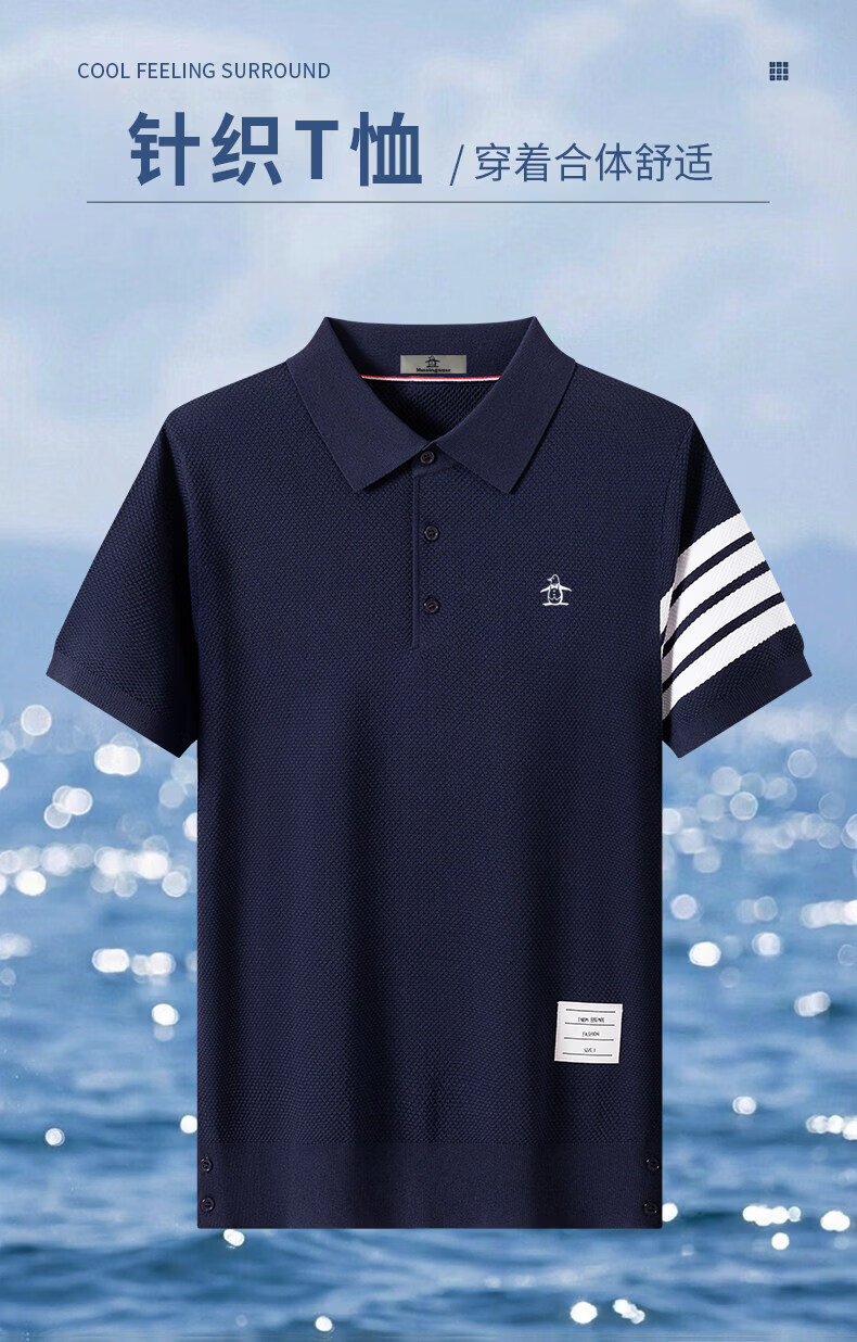 万星威(Munsingwear)NSINGWEAR/万星威高端男士短袖T恤中年桑蚕丝针织休闲POLO衫 星空灰 M 【建议90-110斤】