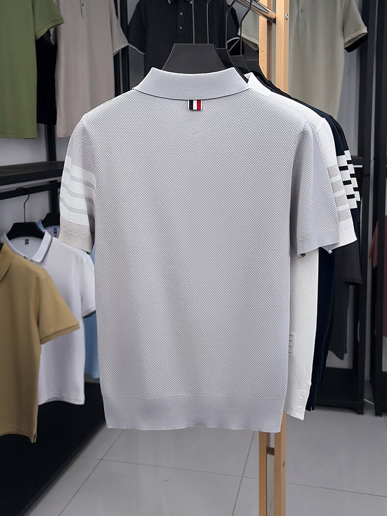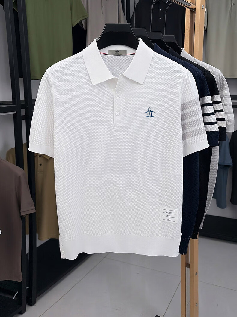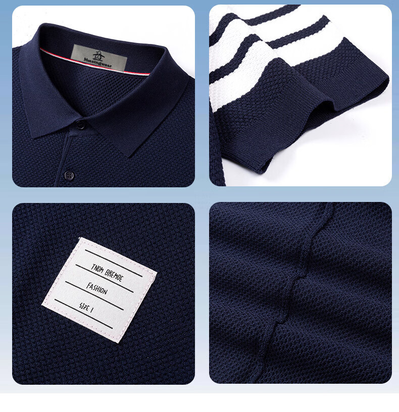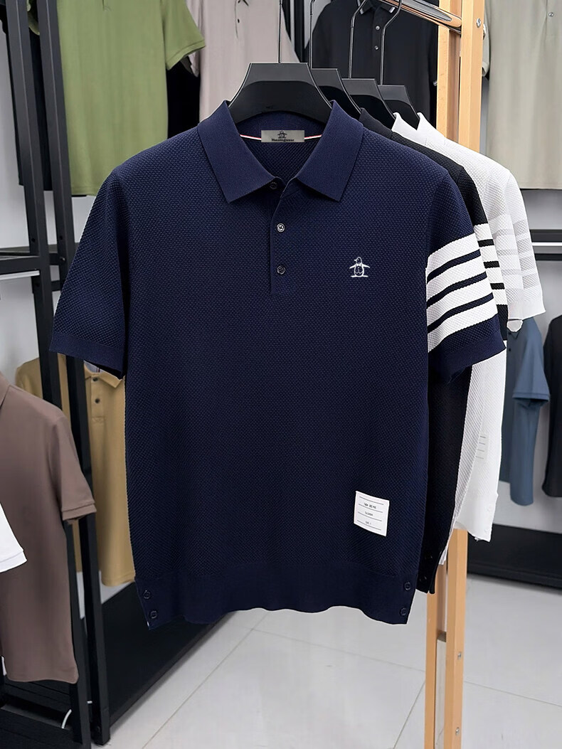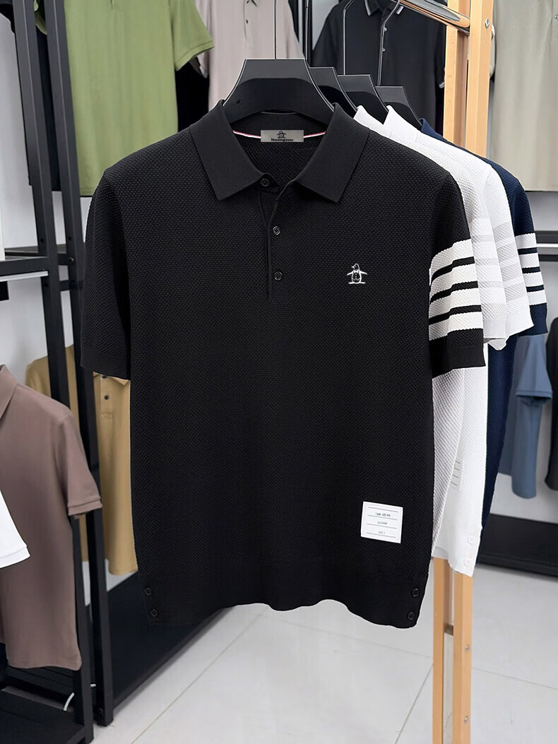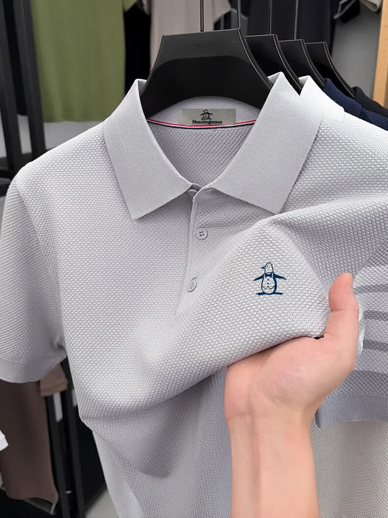 万星威(Munsingwear)NSINGWEAR/万星威高端男士短袖T恤中年桑蚕丝针织休闲POLO衫 星空灰 M 【建议90-110斤】