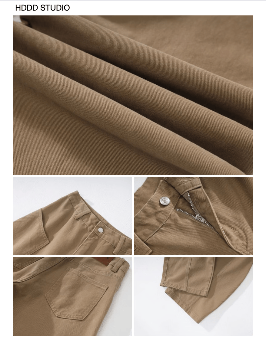 HDDD STUDIO复古卡其宽松阔腿裤镰刀裤百搭高街牛仔裤 卡其加长 常规 XL