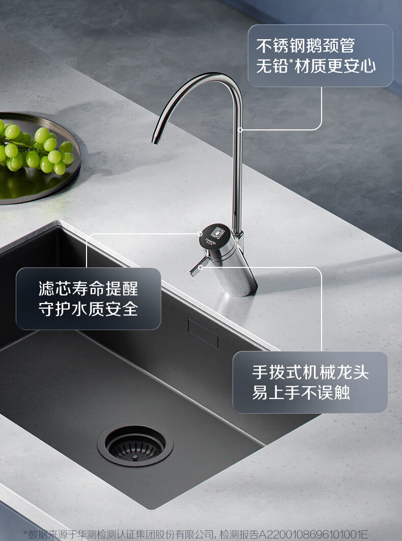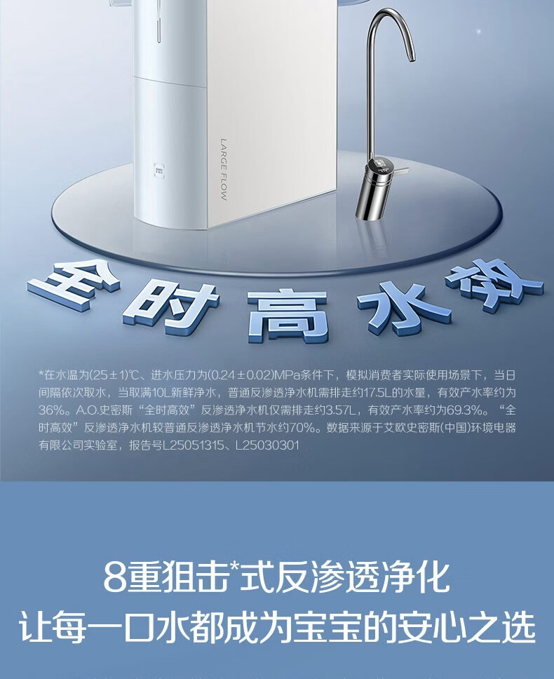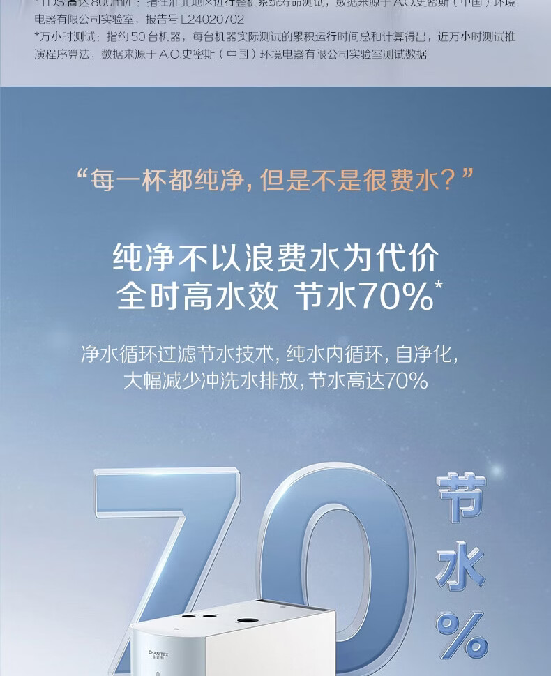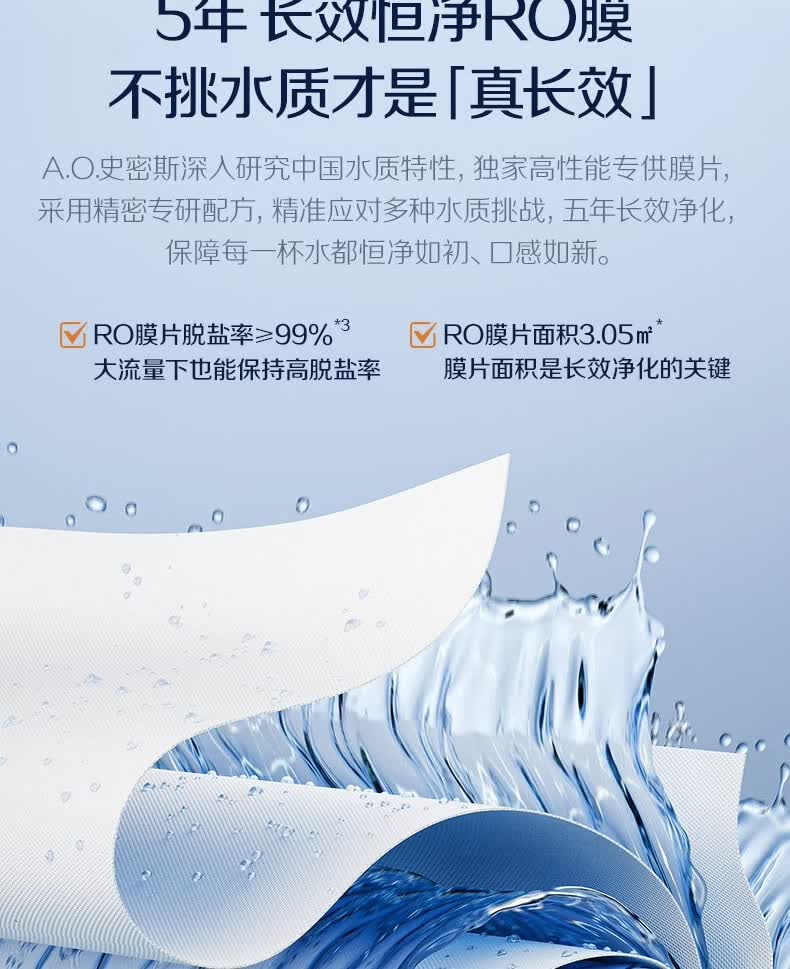 史密斯(A.O.SMITH)【热销TOP1】佳尼特净水器 蓝鲸2.0 家用厨下直饮净水机净饮机反渗透 小体积5年长效RO膜CR2000BM1 2.64升/分钟澎湃大流量 恒净0陈水 全时高水效