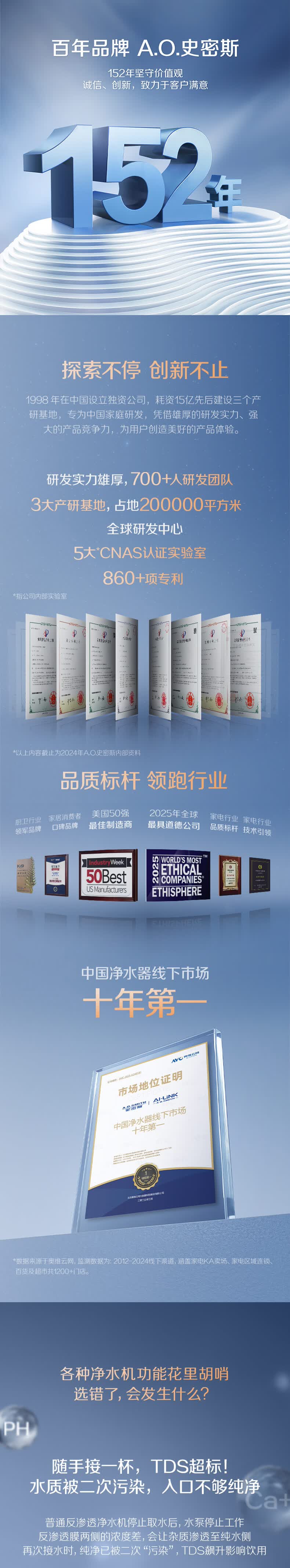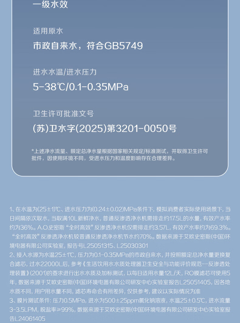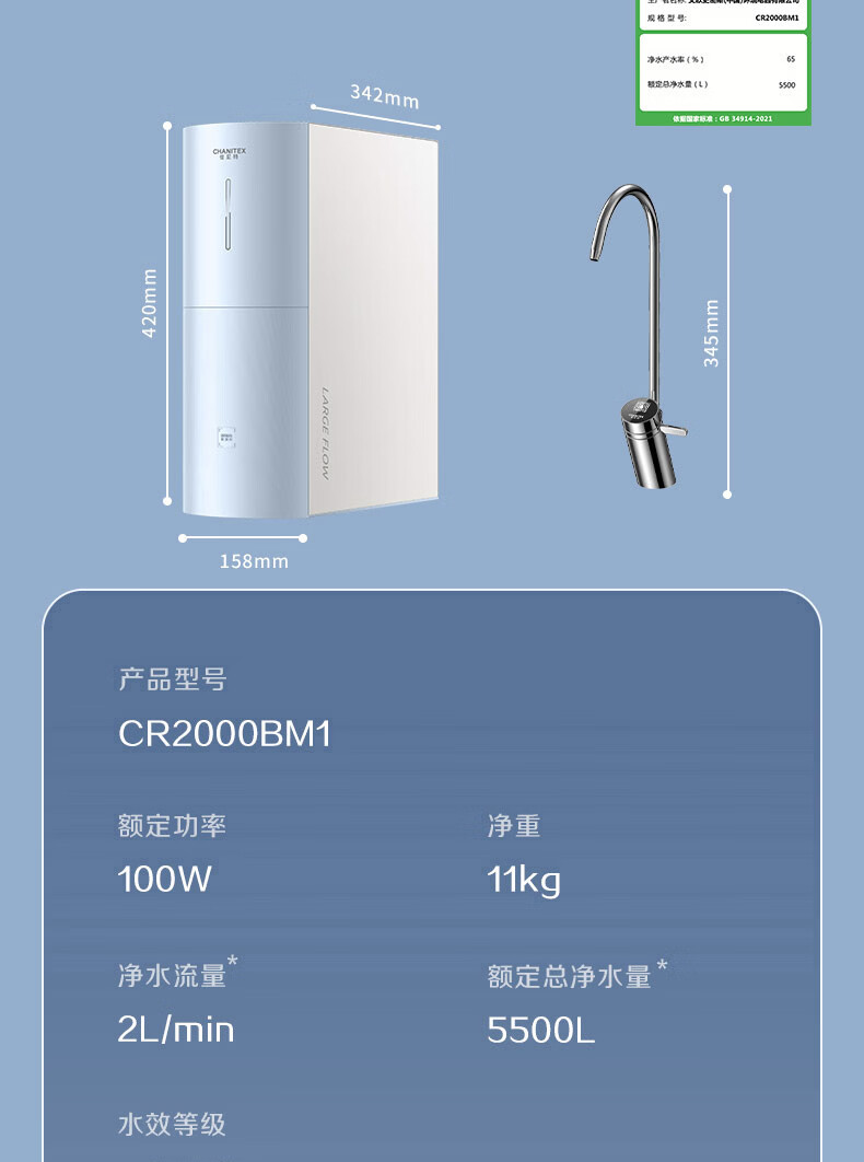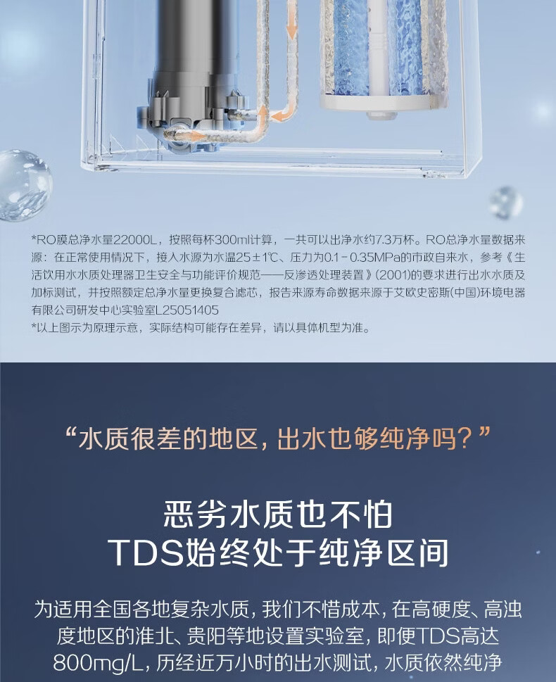 史密斯(A.O.SMITH)【热销TOP1】佳尼特净水器 蓝鲸2.0 家用厨下直饮净水机净饮机反渗透 小体积5年长效RO膜CR2000BM1 2.64升/分钟澎湃大流量 恒净0陈水 全时高水效