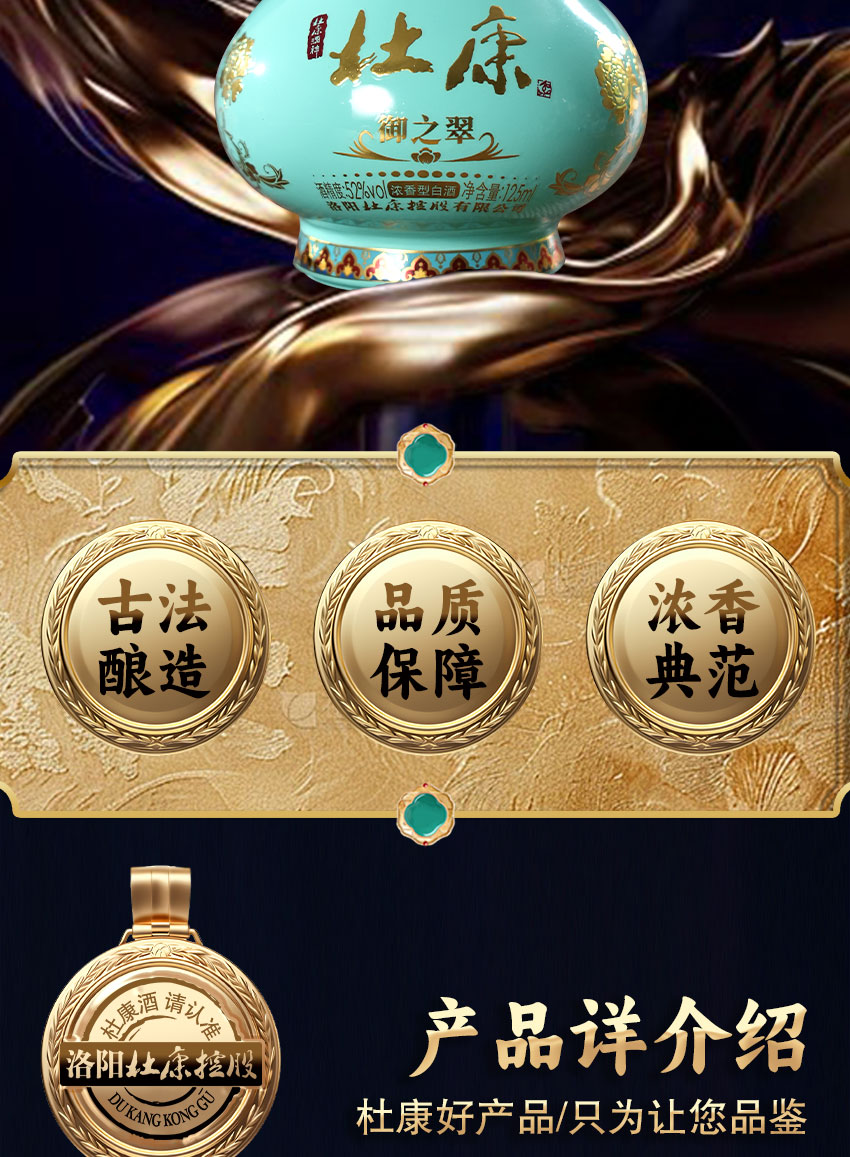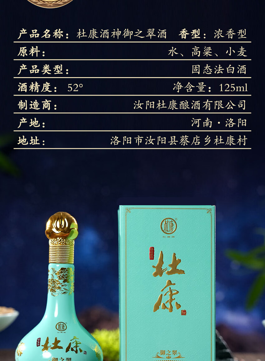 杜康 御之翠 52度 浓香型优级白酒 125ml单瓶装 纪念版收藏礼盒小酒 52度 125mL 1瓶 纪念版小酒