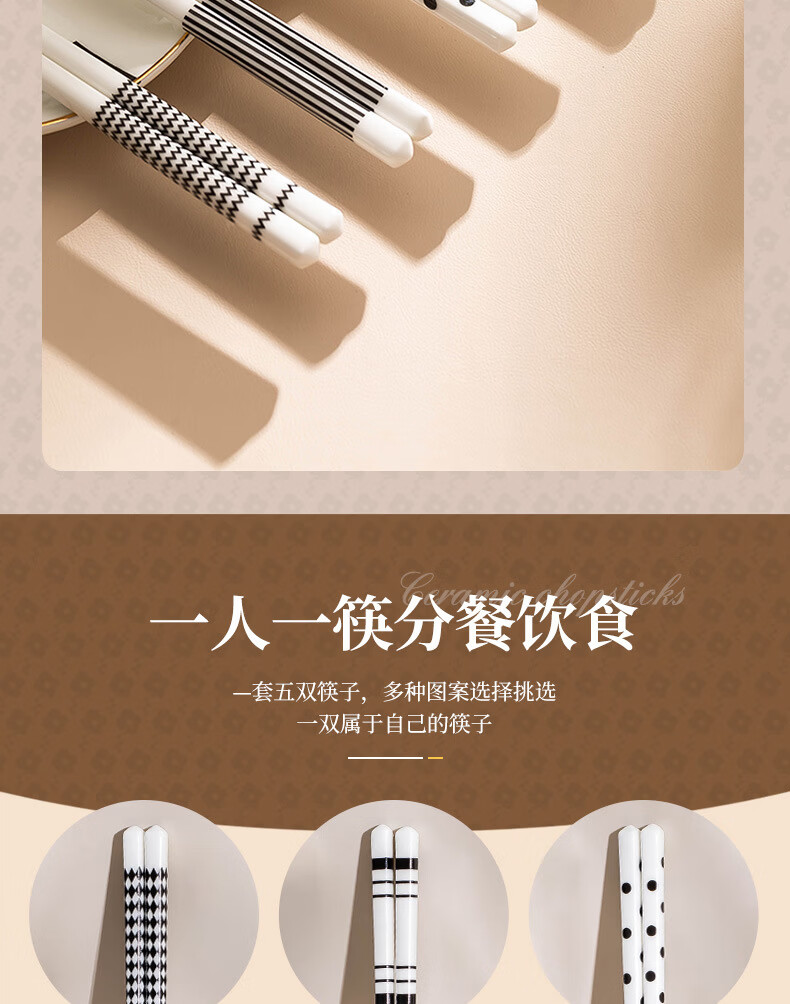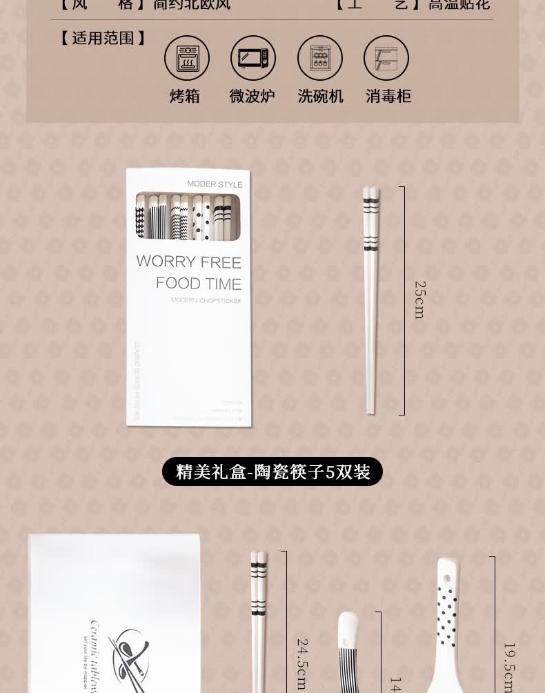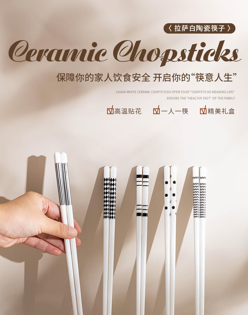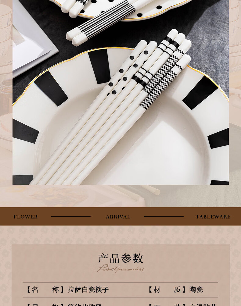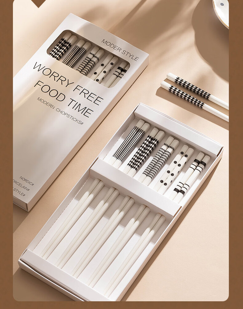 星舵家用简约黑白ins风陶瓷筷子家庭装组合高感送礼2022新款礼盒 拉萨白瓷筷-10双装(不带礼盒)