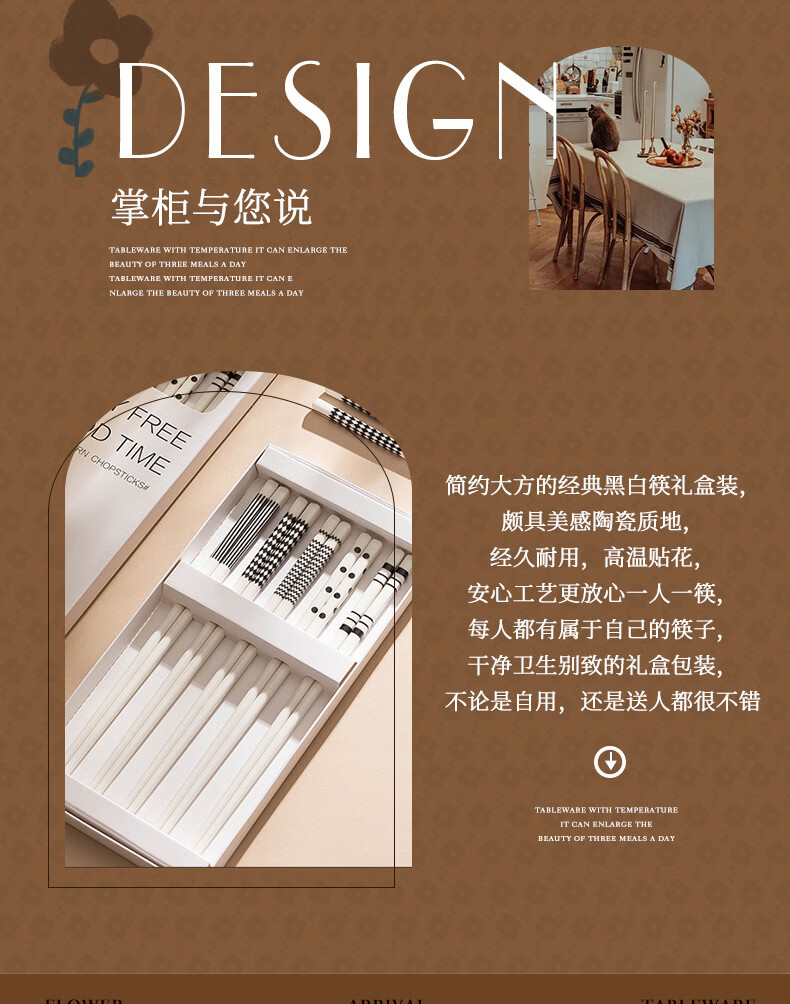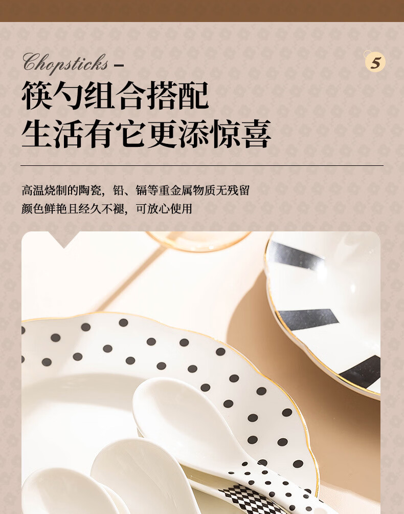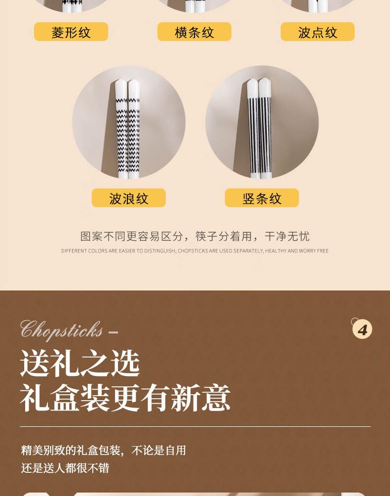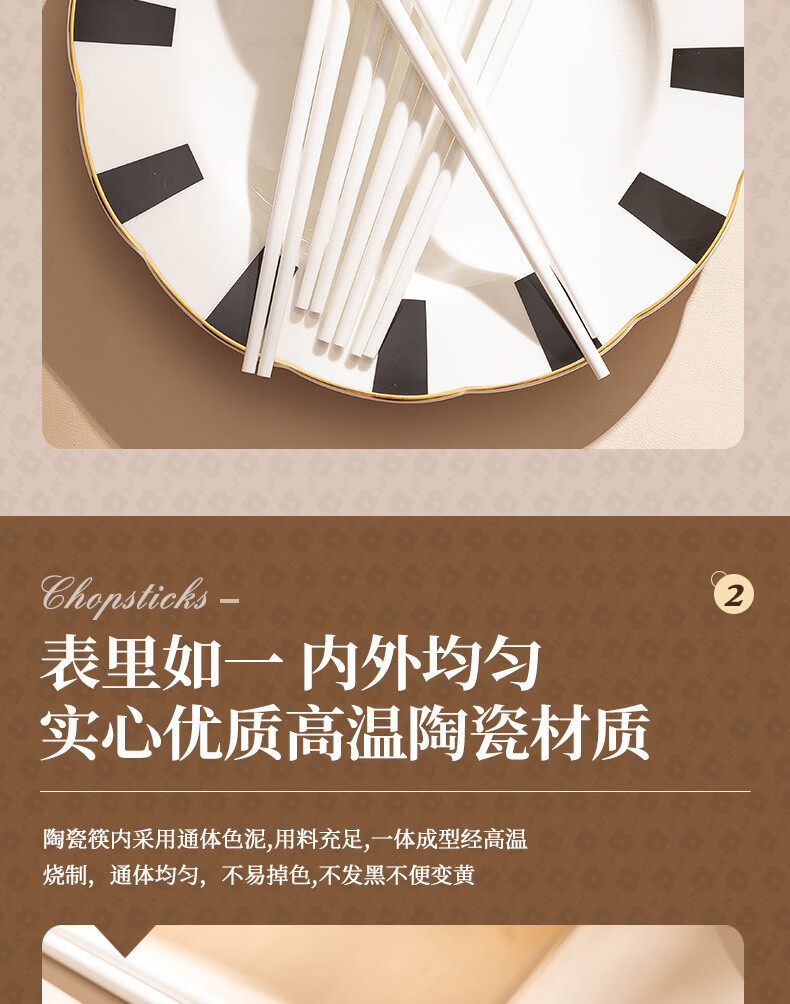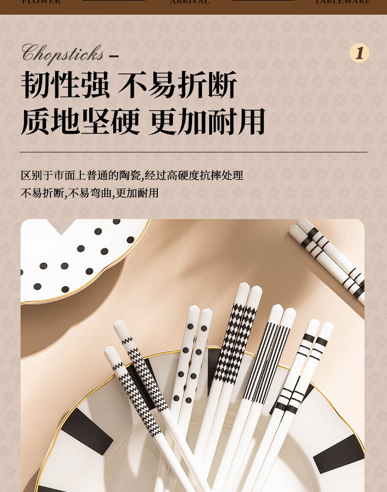 星舵家用简约黑白ins风陶瓷筷子家庭装组合高感送礼2022新款礼盒 拉萨白瓷筷-10双装(不带礼盒)