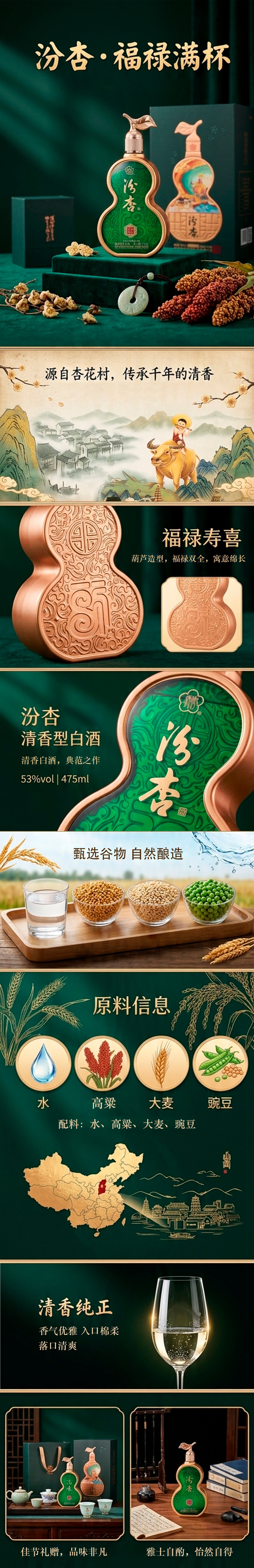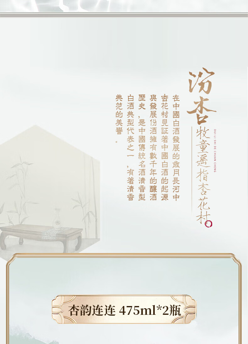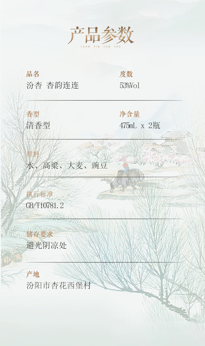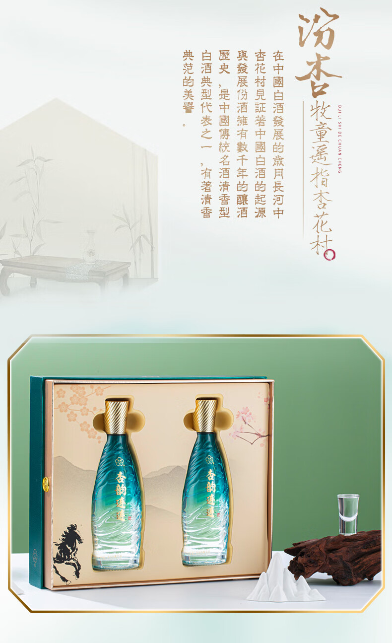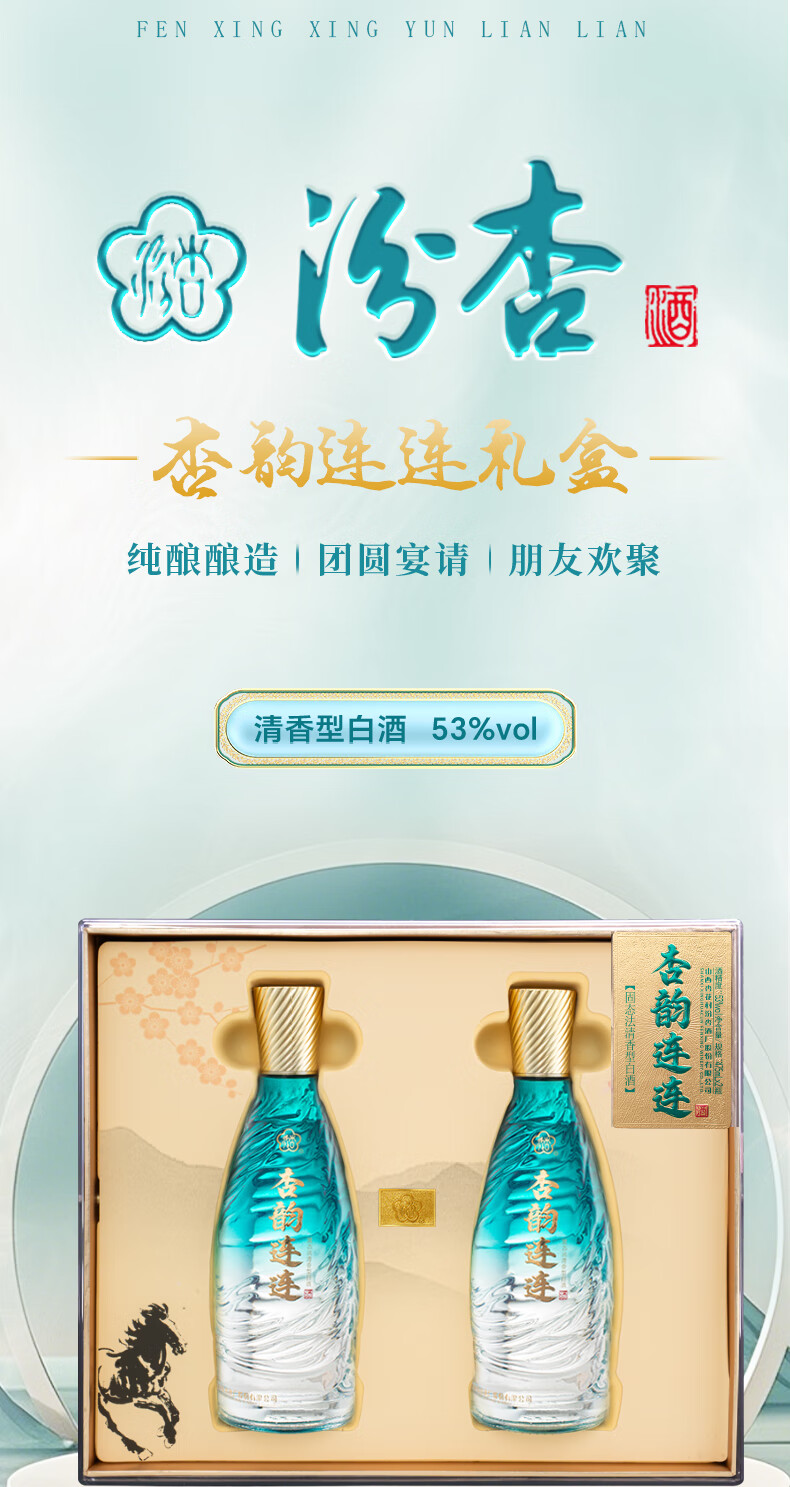 汾杏山西杏花村 清香型白酒礼盒53度 商务送礼 年货礼盒 53度 475mL 2瓶 汾杏 福禄满杯