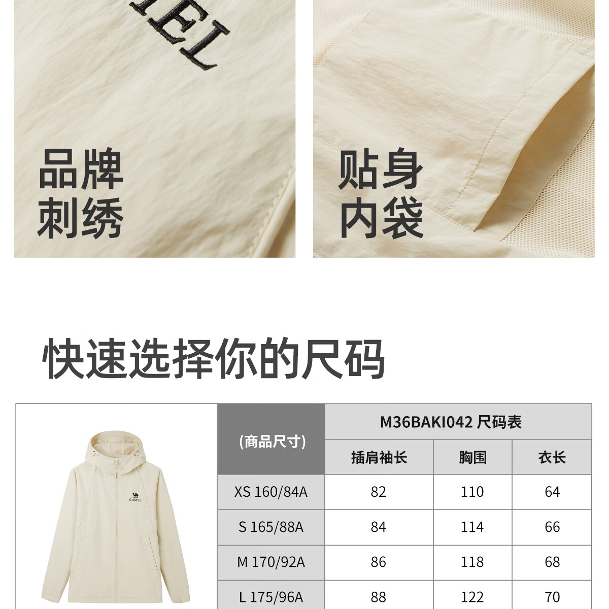骆驼女装连帽夹克春新款户外情侣外套机能防风防水登山服M36BAKI042