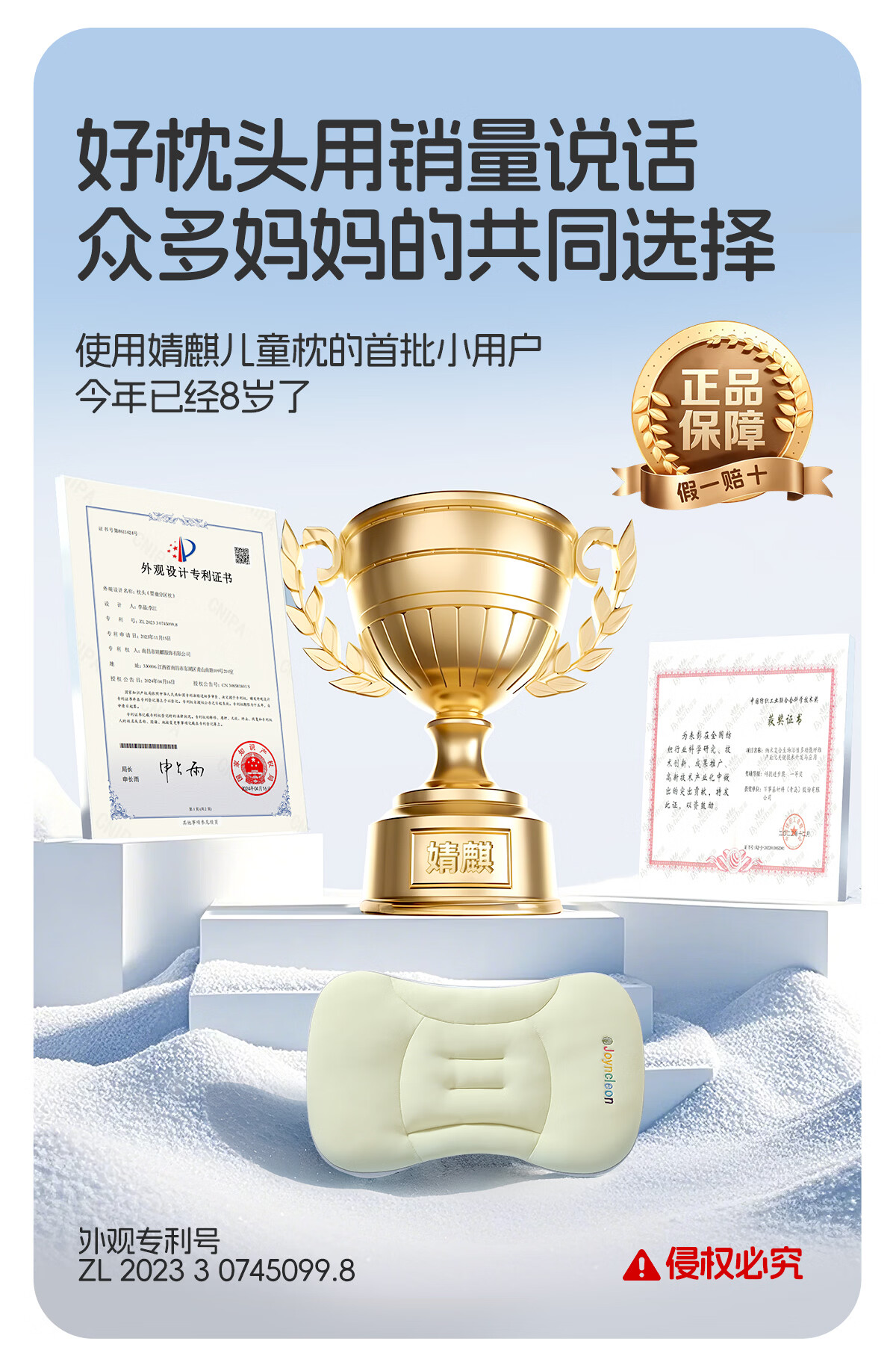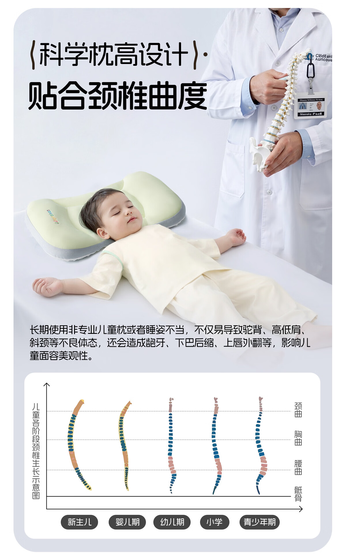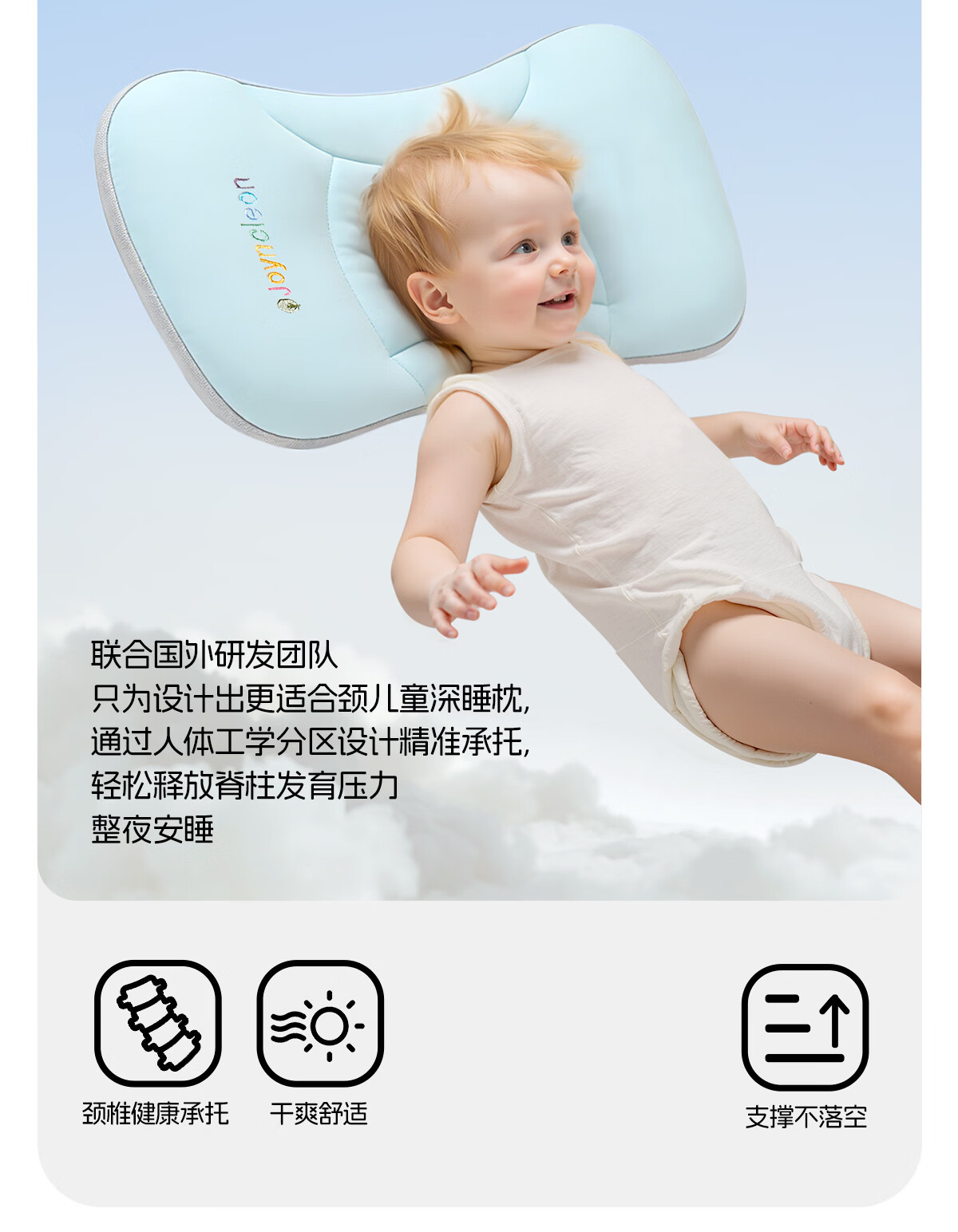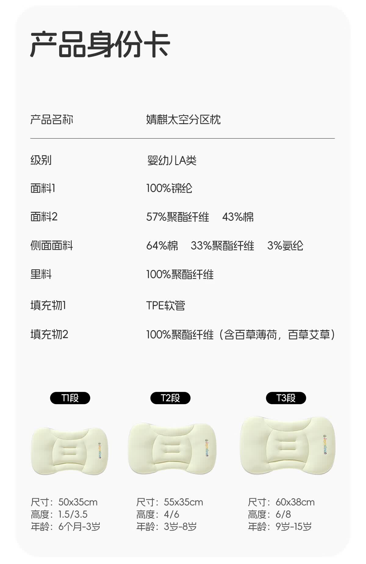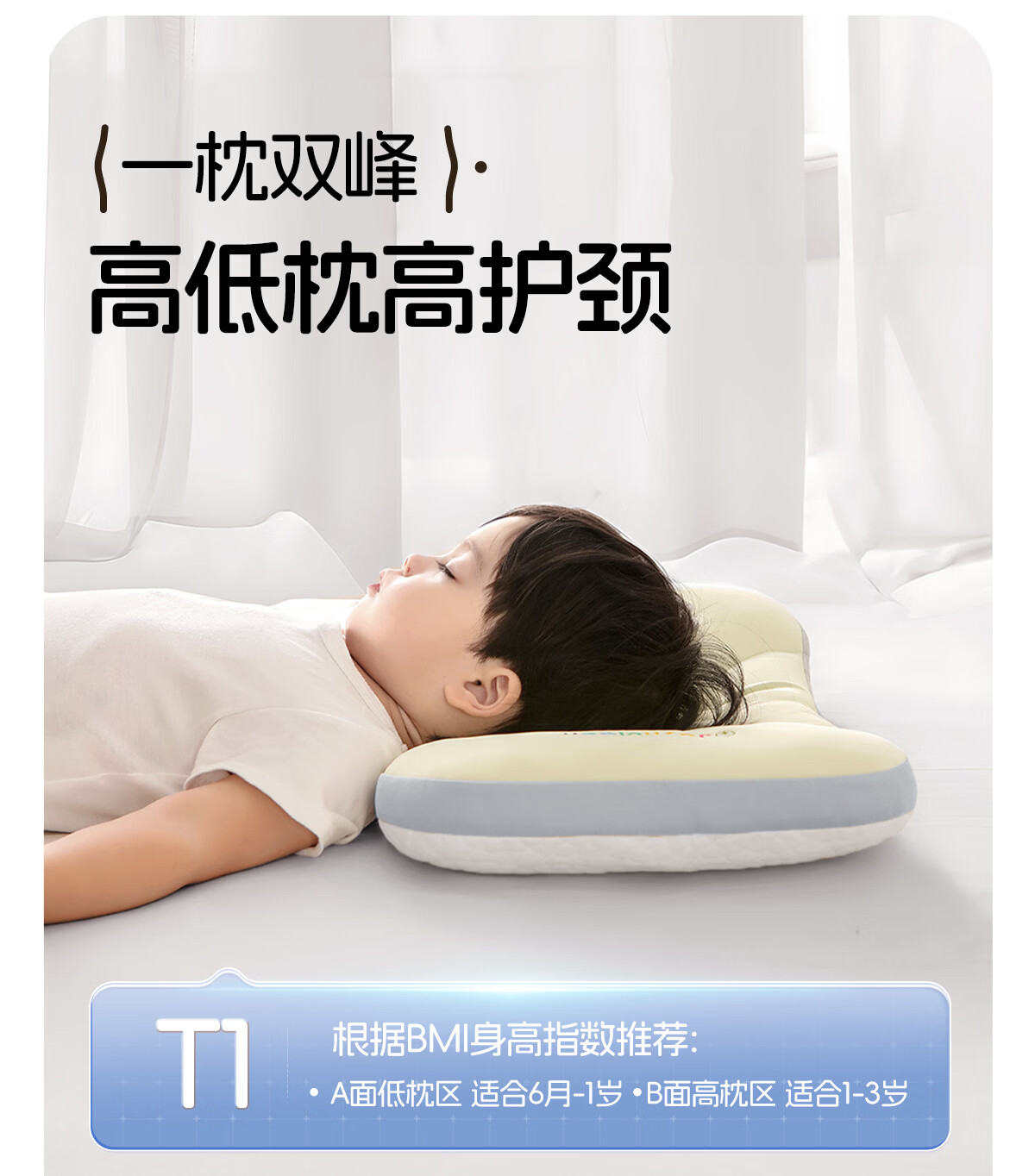 婧麒(JOYNCLEON)婴儿枕头分区宝宝枕护颈神器6个月以上儿童枕头1-3岁 粉jzt198355