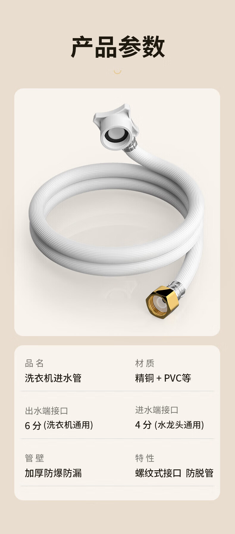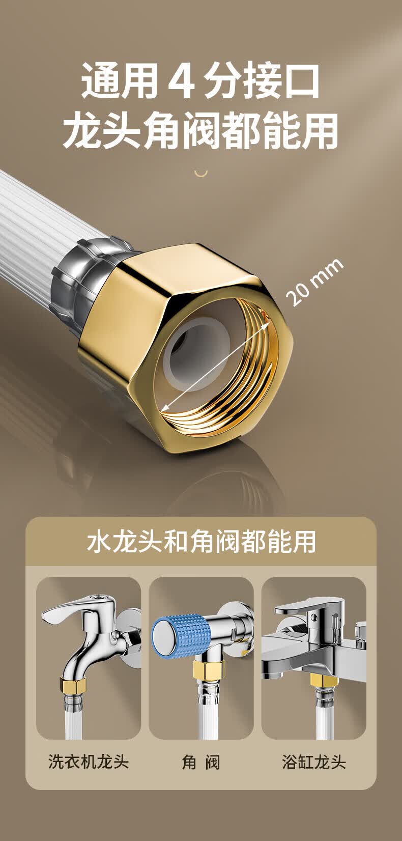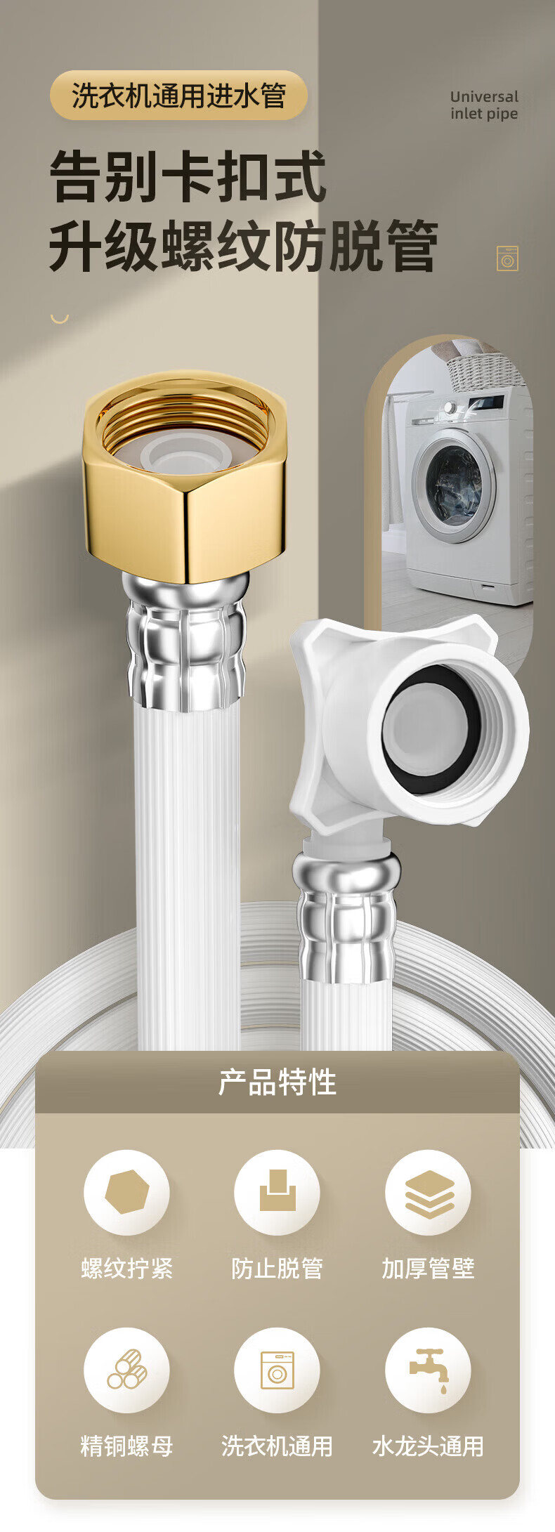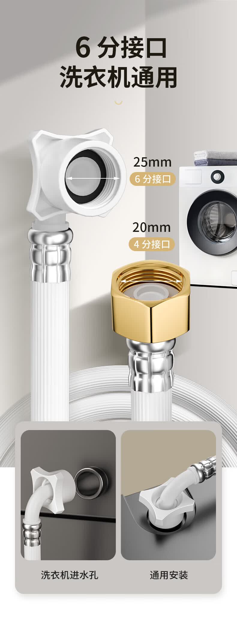 一靓适用海尔全自动洗衣机进水管原装通用加延长接水管加厚上水软管 【洗衣机专用】防爆4分螺纹铜接口 3米长