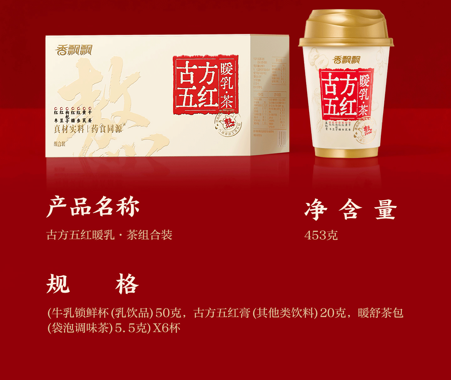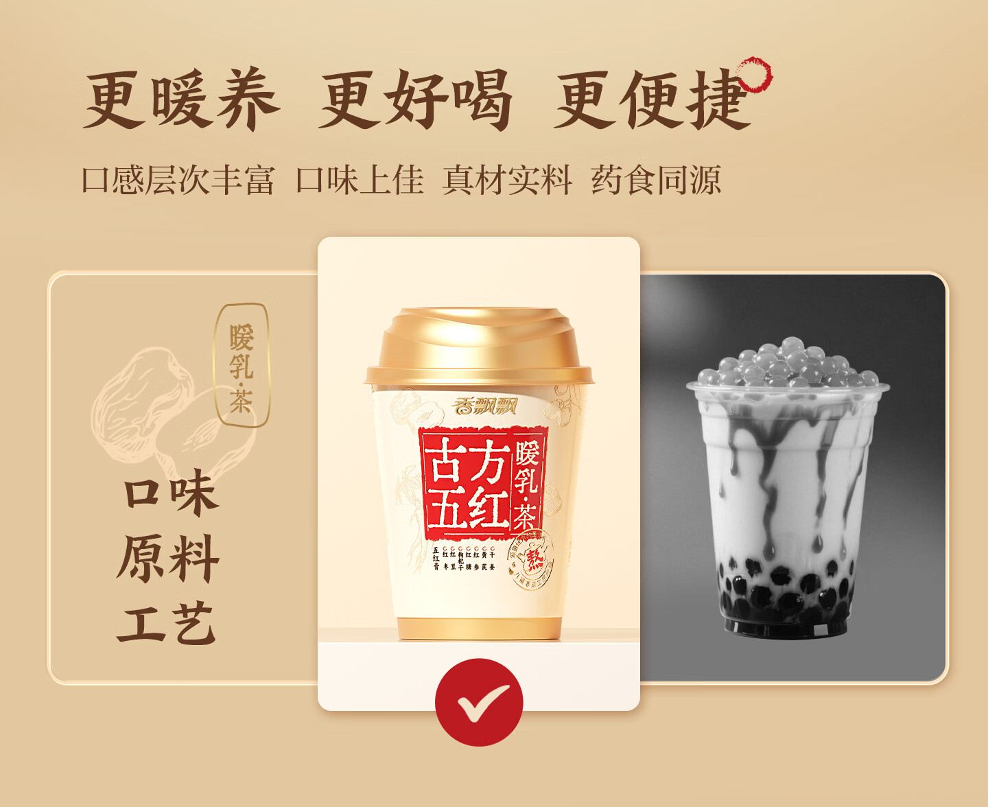 香飘飘 姨妈奶茶 古方五红暖乳茶6杯装 药食同源非遗熬住工序五红453g