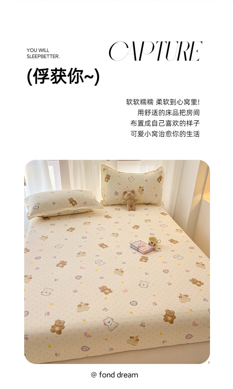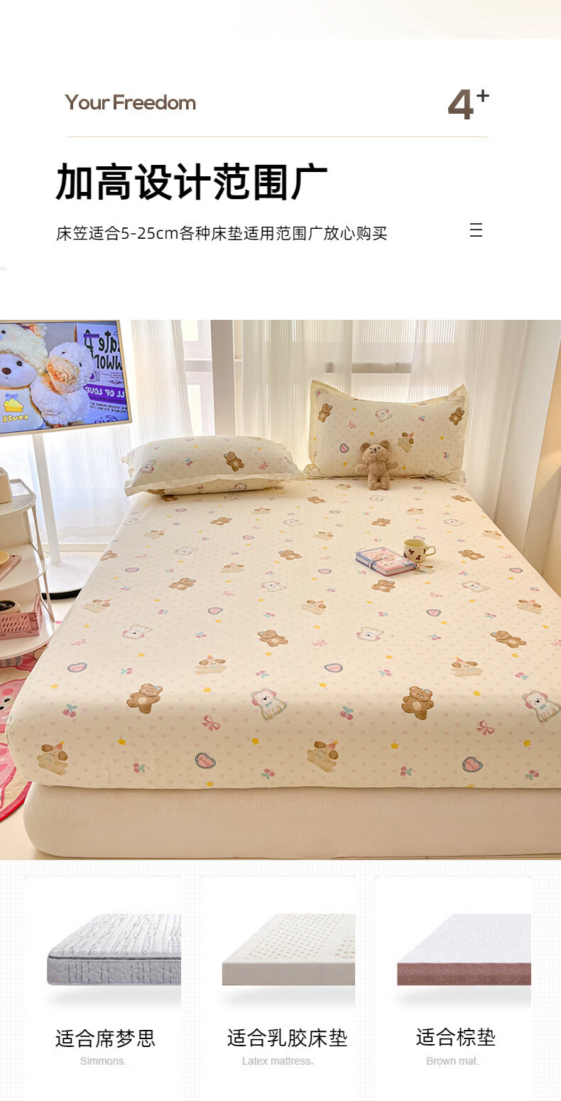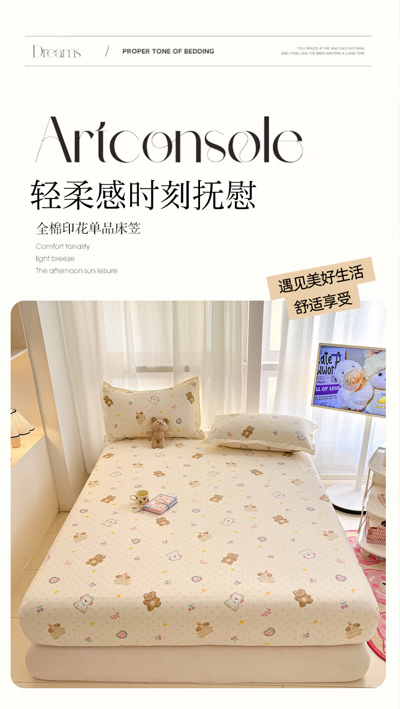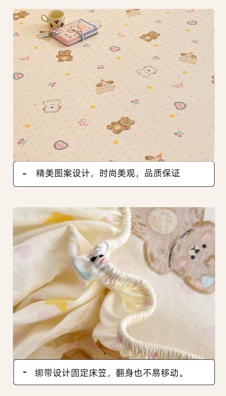 南极人(Nanjiren)纯棉床笠罩0.9x1x1.2x1.35x1.5x1.8x2x2.2米可定制全棉床垫保护套 芋泥小狗 【100%全棉 柔软亲肤】 单床笠-90*200cm