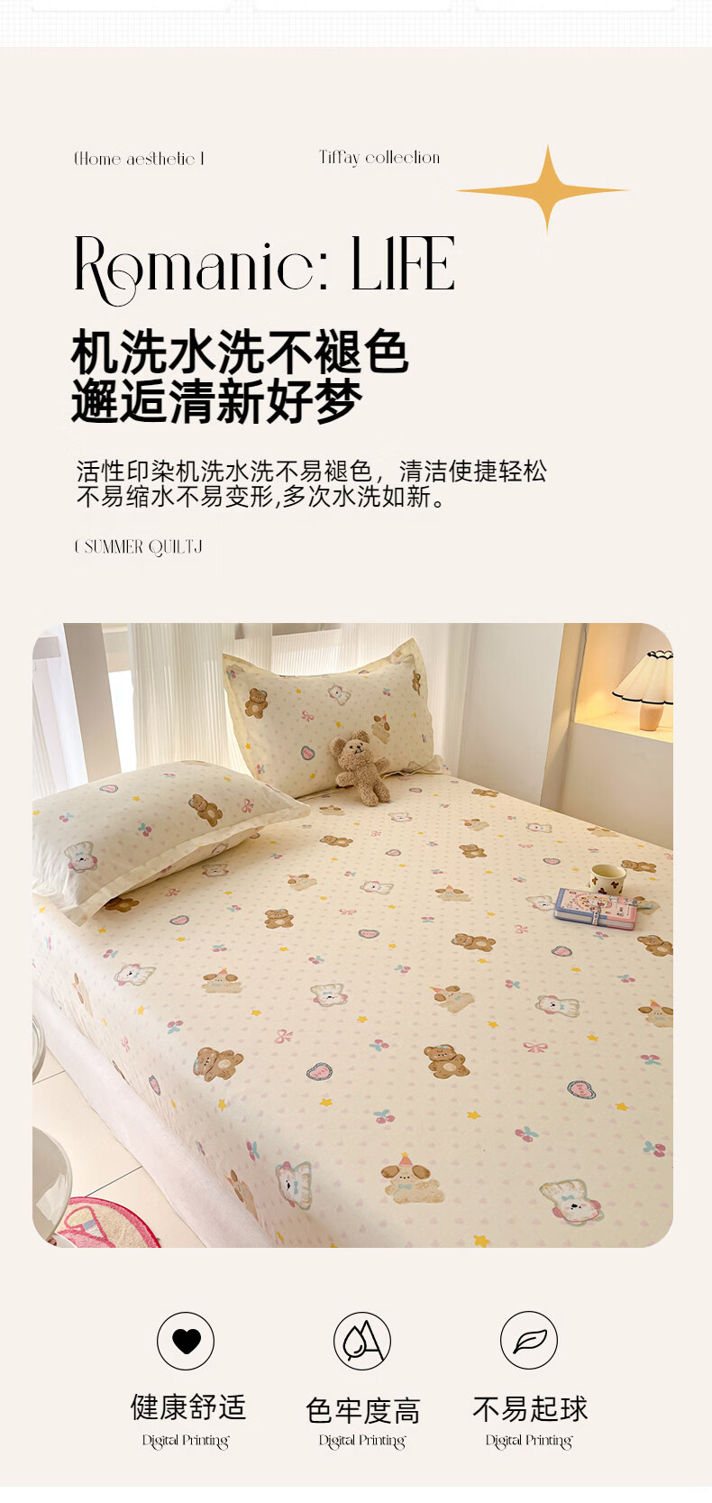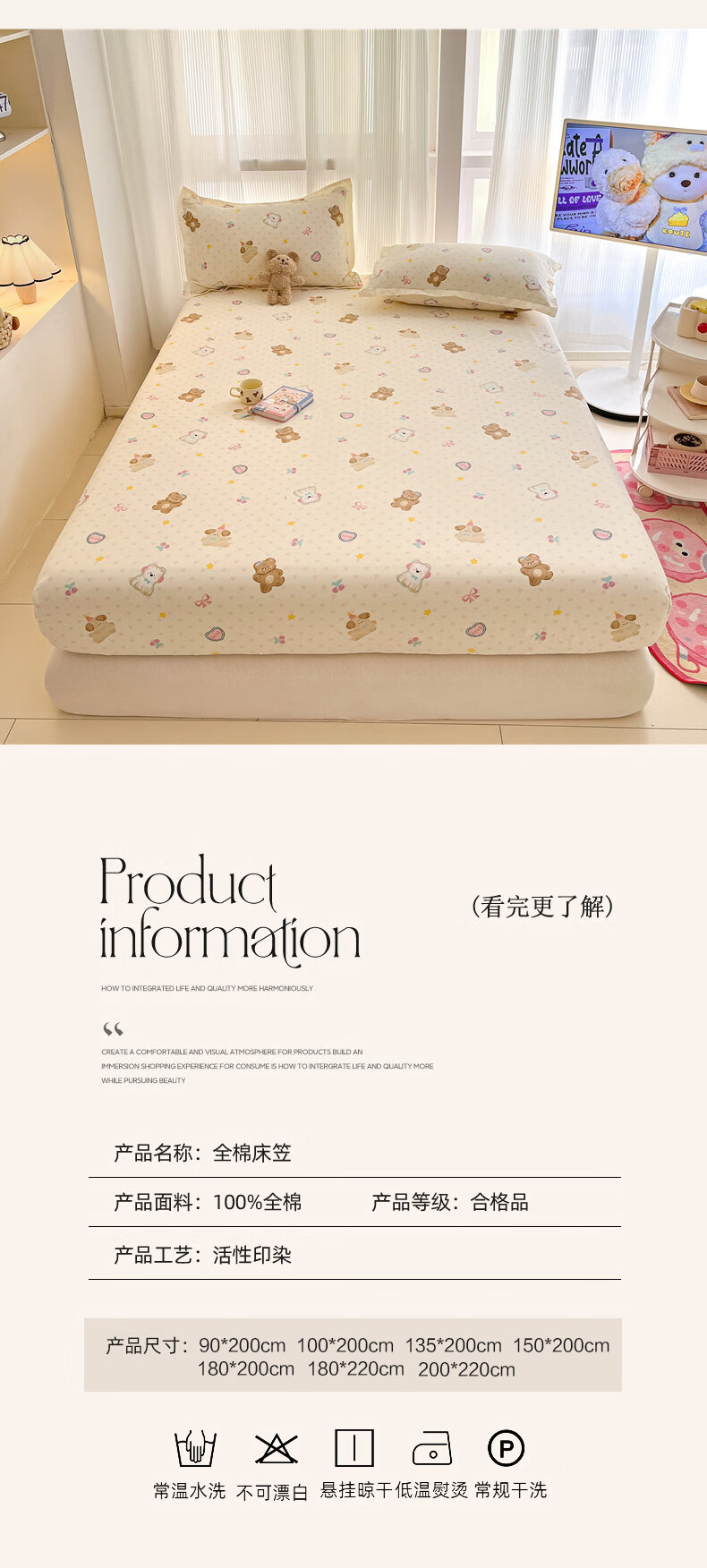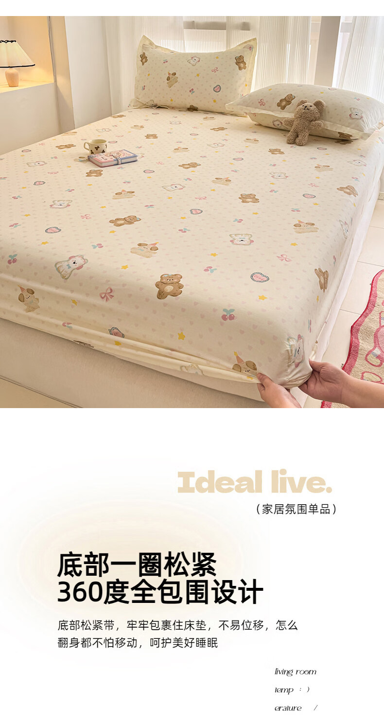 南极人(Nanjiren)纯棉床笠罩0.9x1x1.2x1.35x1.5x1.8x2x2.2米可定制全棉床垫保护套 芋泥小狗 【100%全棉 柔软亲肤】 单床笠-90*200cm