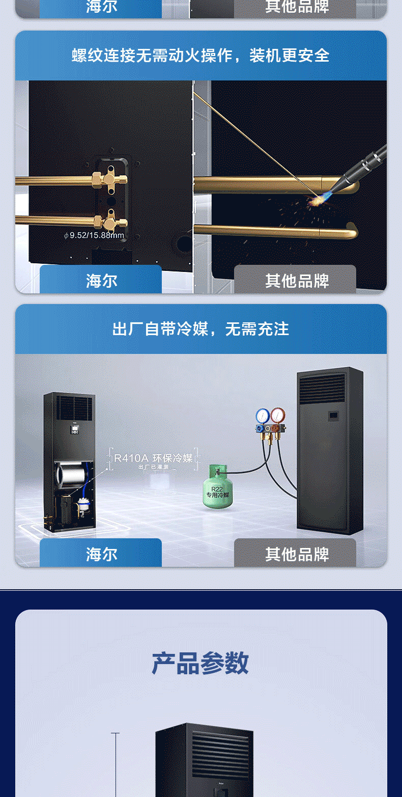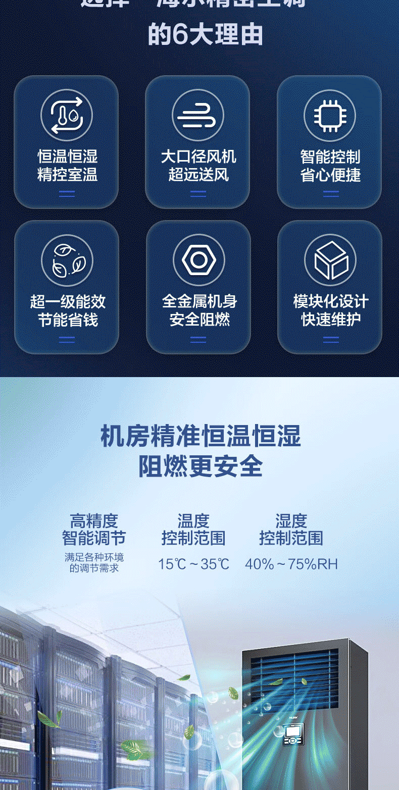 海尔精密空调通讯基站3匹/5匹/10匹机房专用恒温恒湿工业空调档案室实验室配电室380v 3匹 精密空调恒温 一级能效