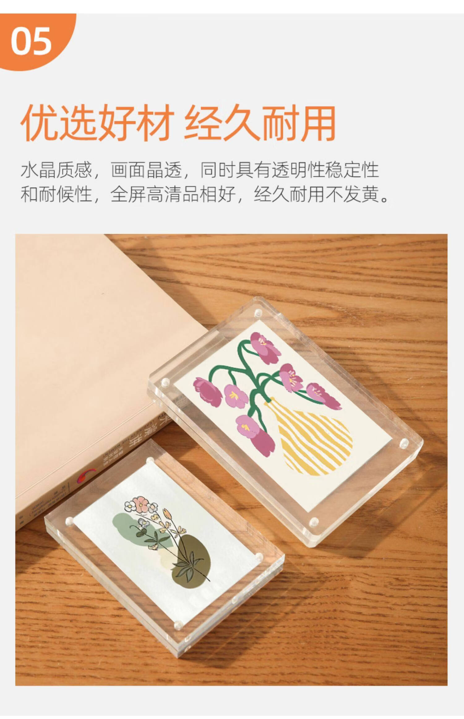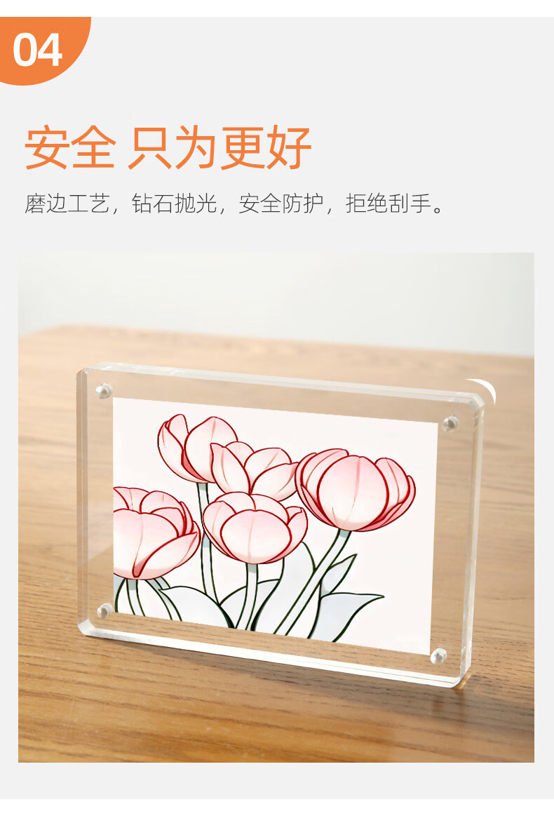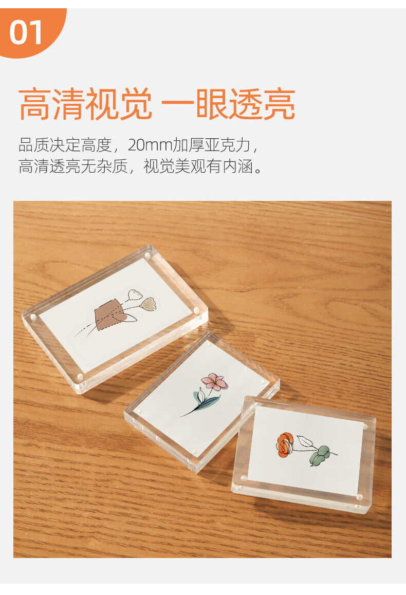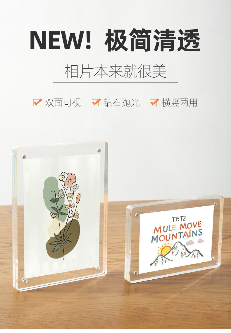 诗元亚克力双面透明相框摆台磁吸拍立得水晶照片5 6 7寸8六创意小摆件 双面透明厚度10mm+10mm【直角】 8寸【内径14.8*21cm】-横竖通用
