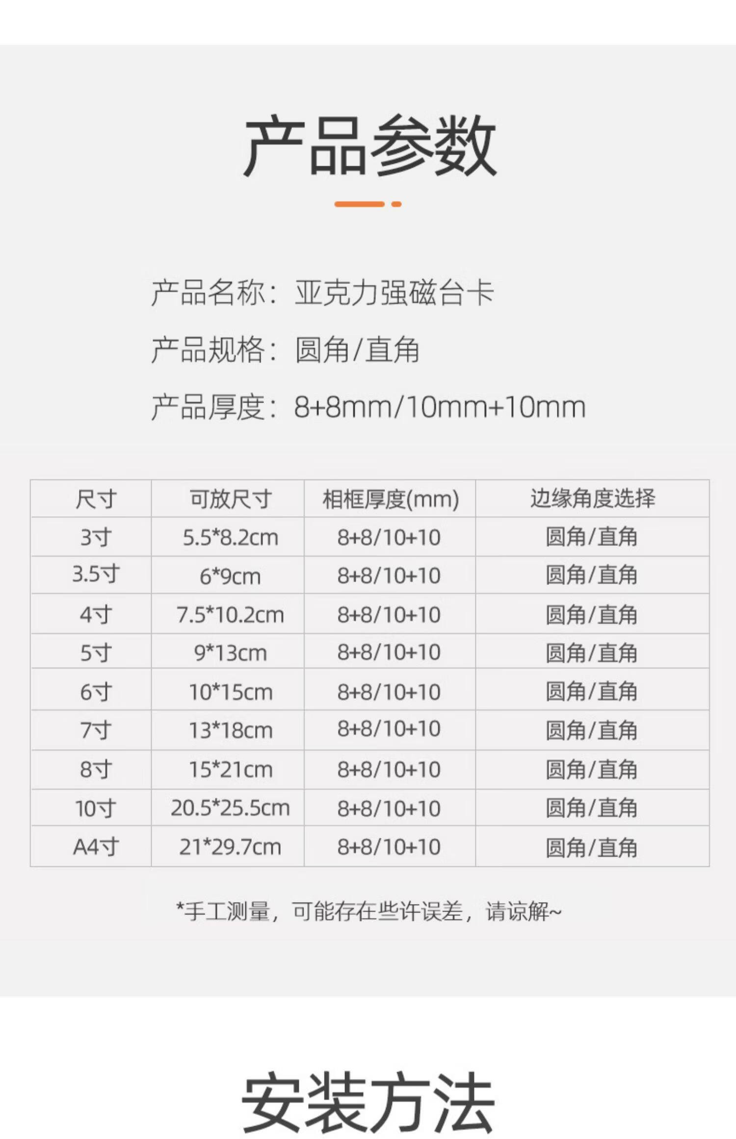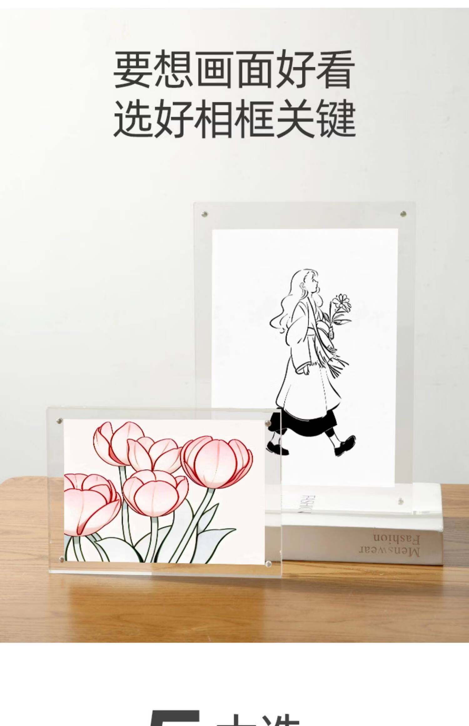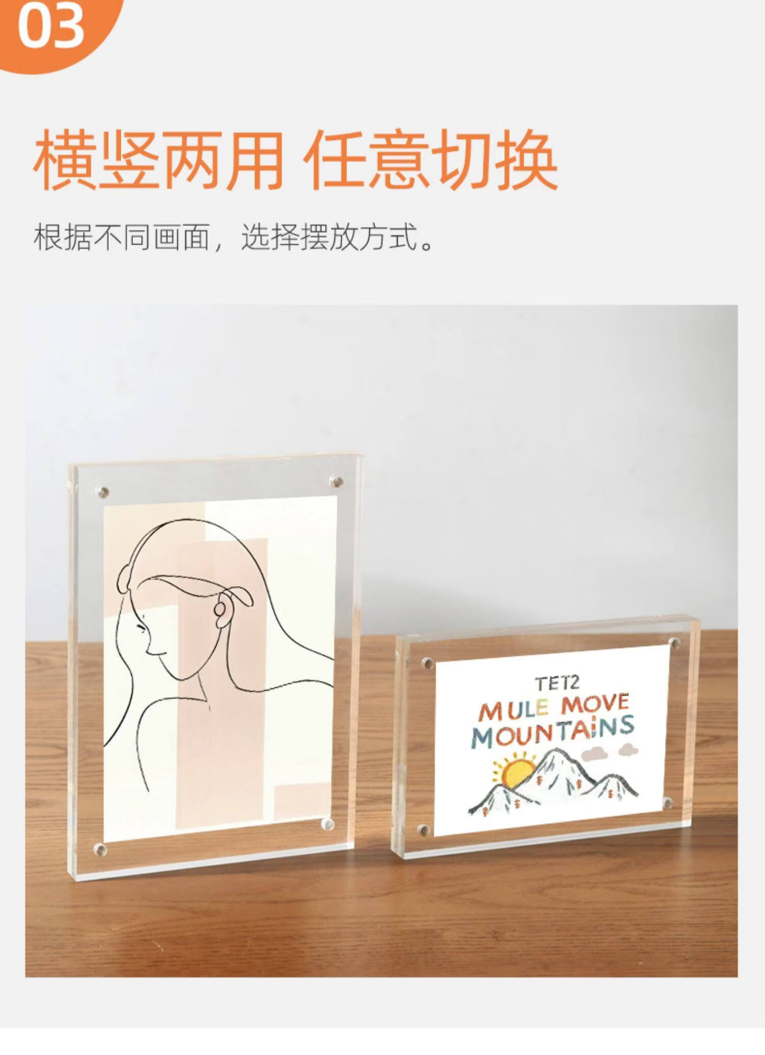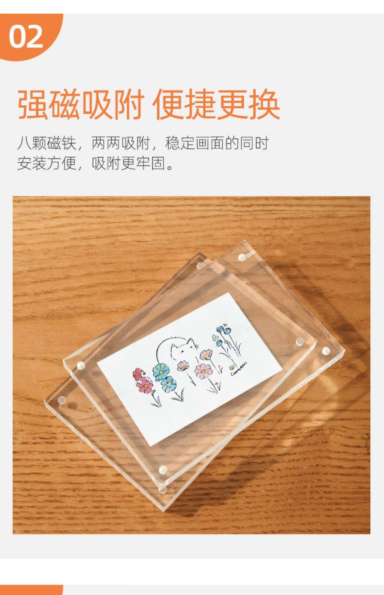 诗元亚克力双面透明相框摆台磁吸拍立得水晶照片5 6 7寸8六创意小摆件 双面透明厚度10mm+10mm【直角】 8寸【内径14.8*21cm】-横竖通用