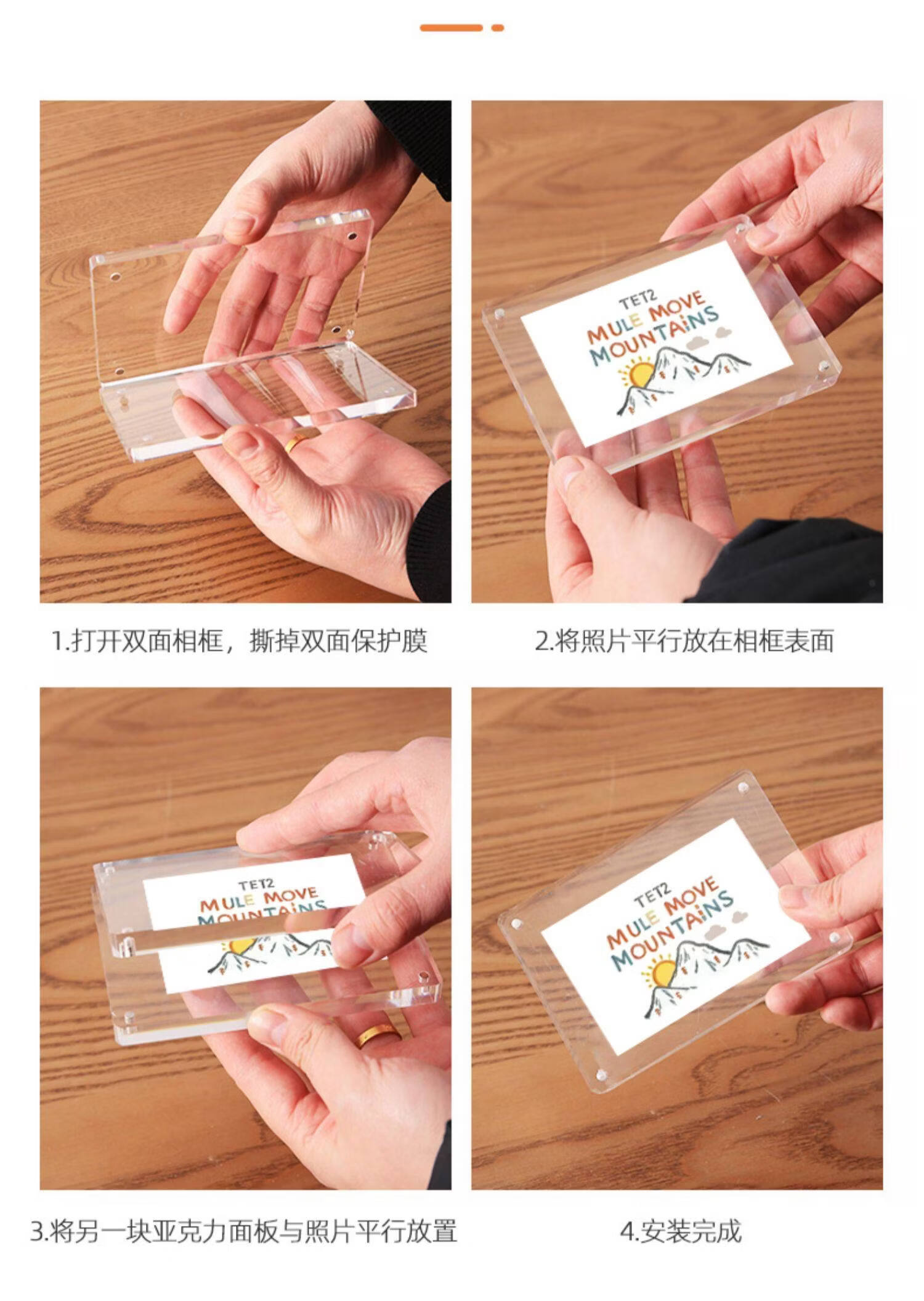 诗元网红U型透明相框摆台6寸7亚克力框架打印照片加画框8实木摆件礼物 澳洲榉木-横版 5寸【满屏放8.9*12.7cm】【一抽一拉 简单更换】