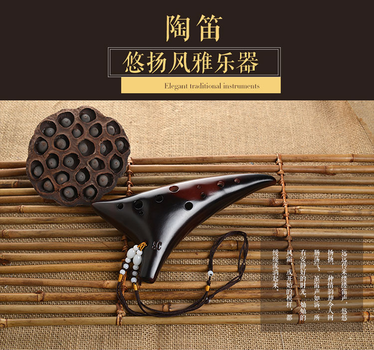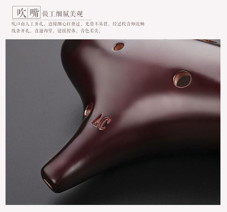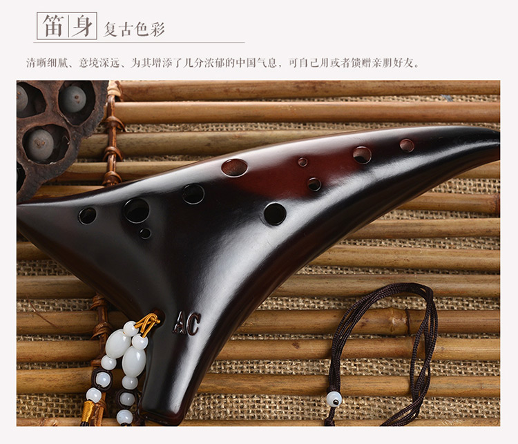 相思鸟 12孔陶笛 中音C调 十二孔ac熏烧瓷笛初学笛子教材 XS1030咖啡色