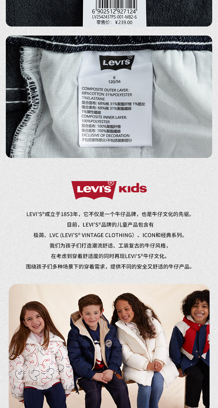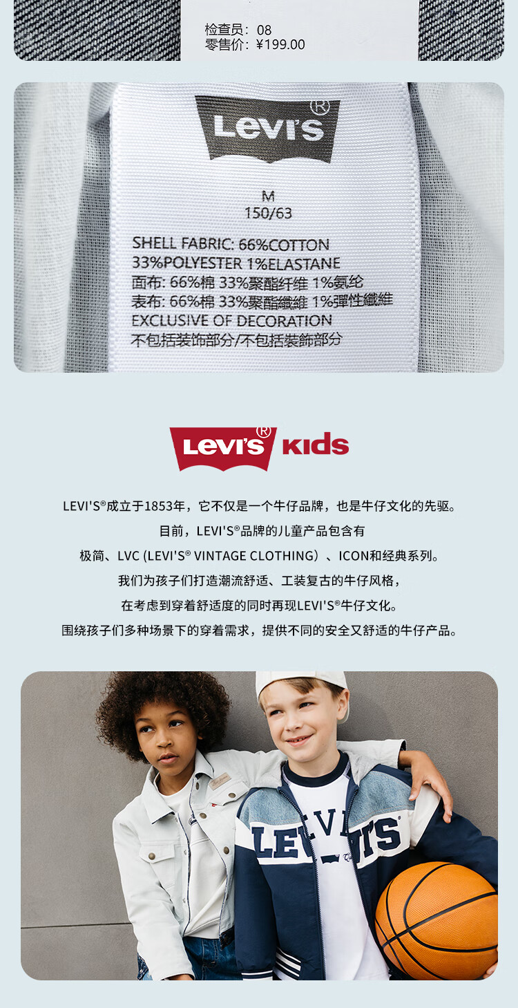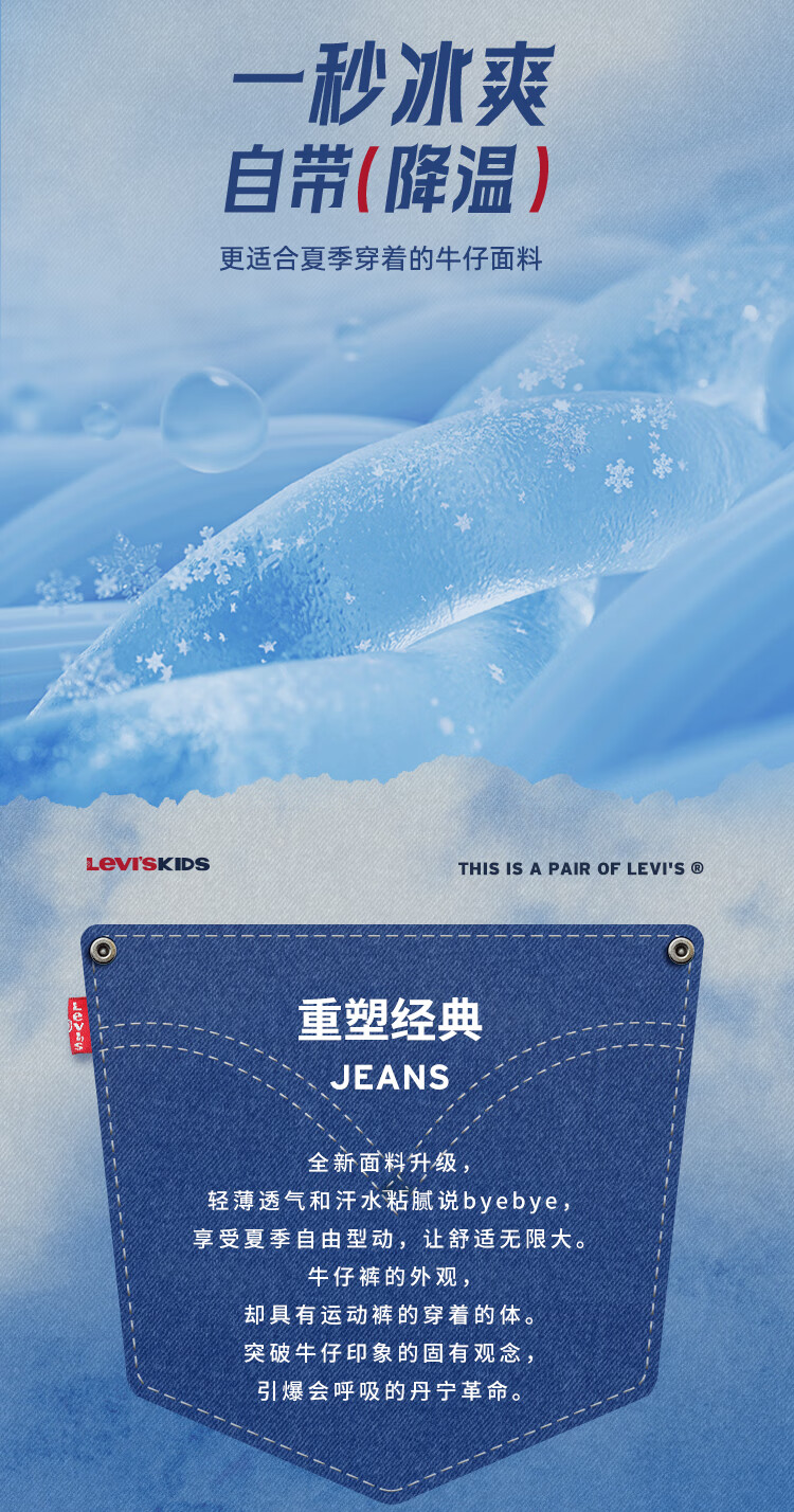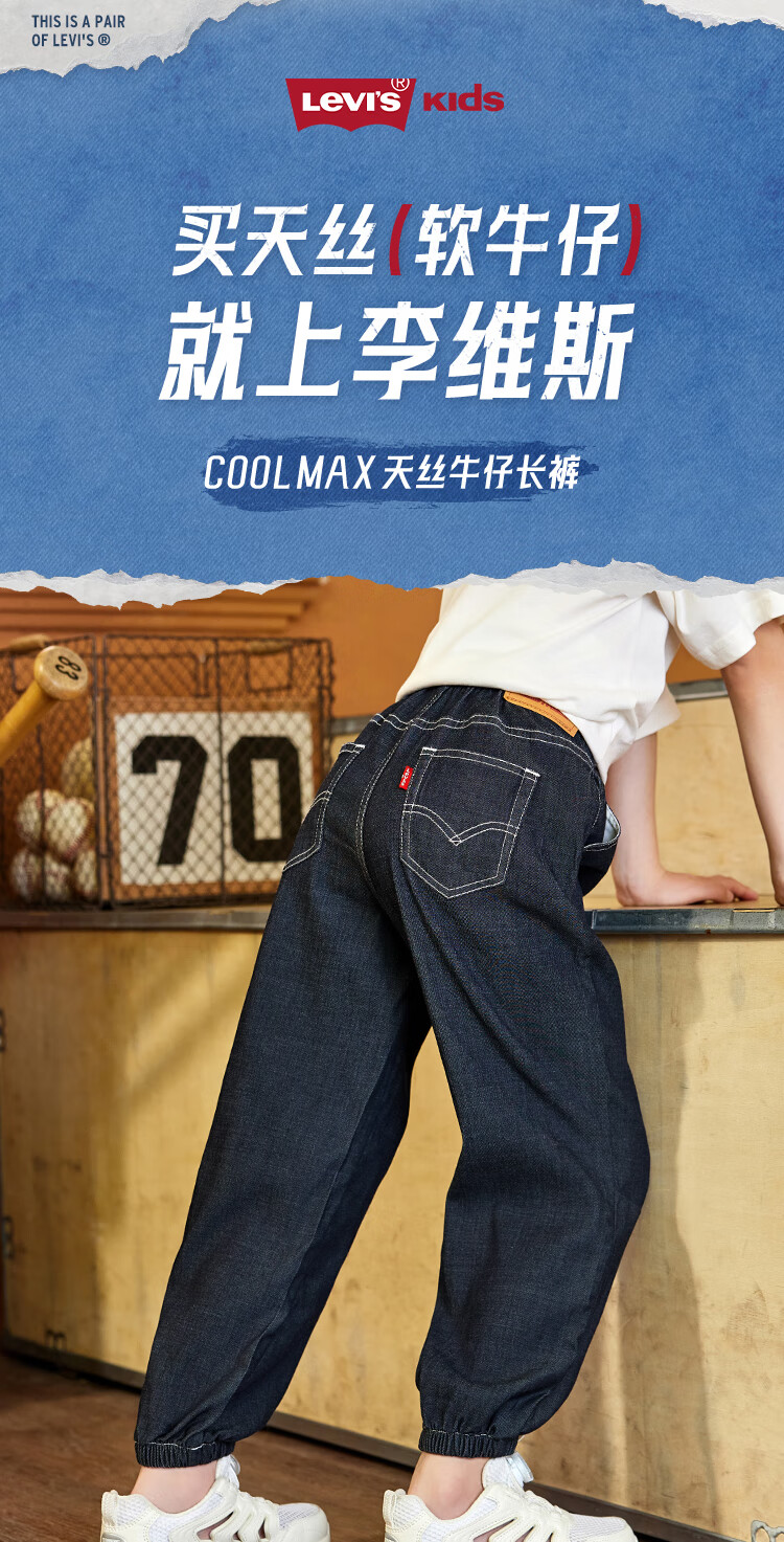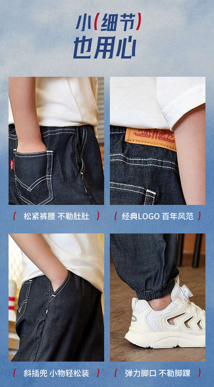 Levi's李维斯【天丝儿童牛仔裤】男童裤子透气夏季防蚊裤长裤儿童 星空蓝 【夏季透气 天丝面料】 140 /60 【建议身高128-140cm】